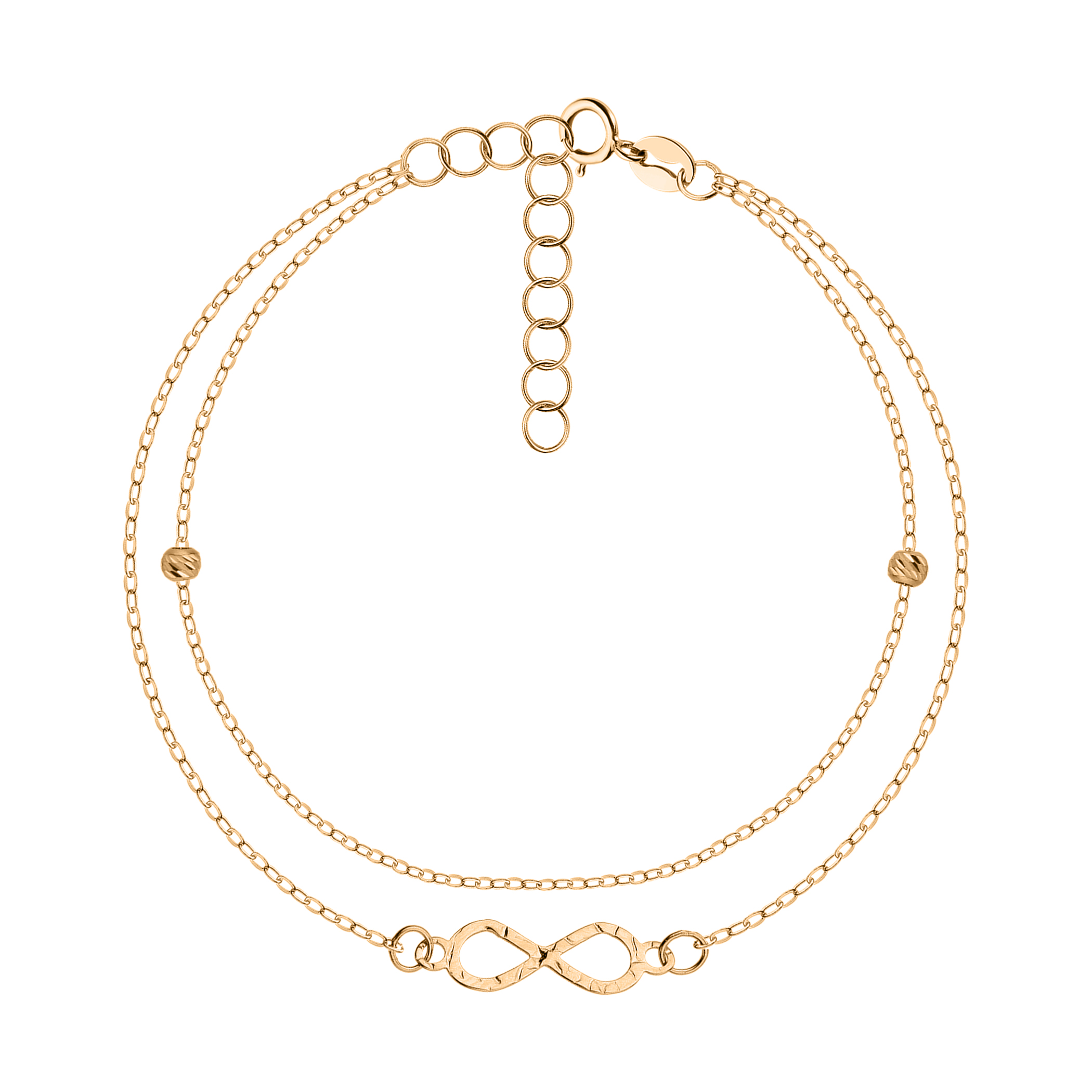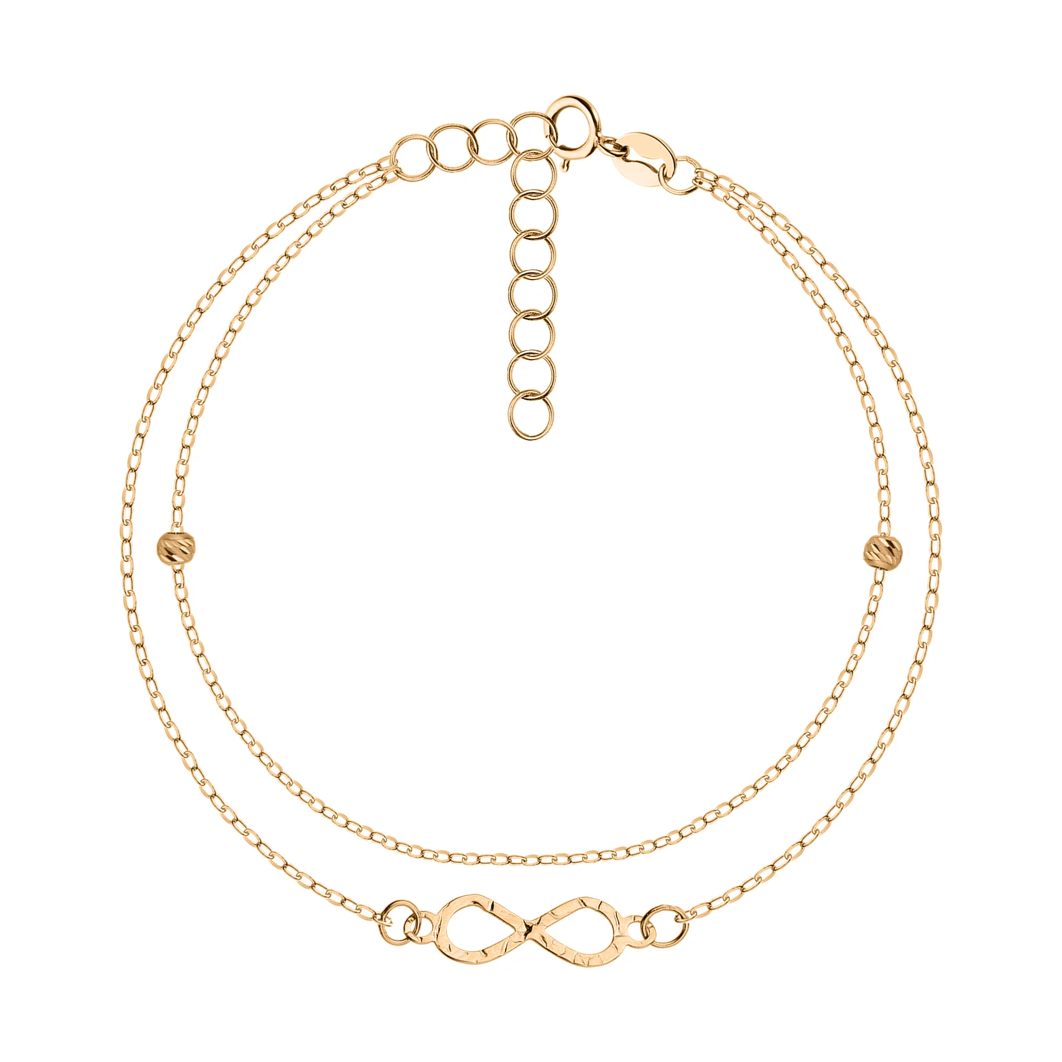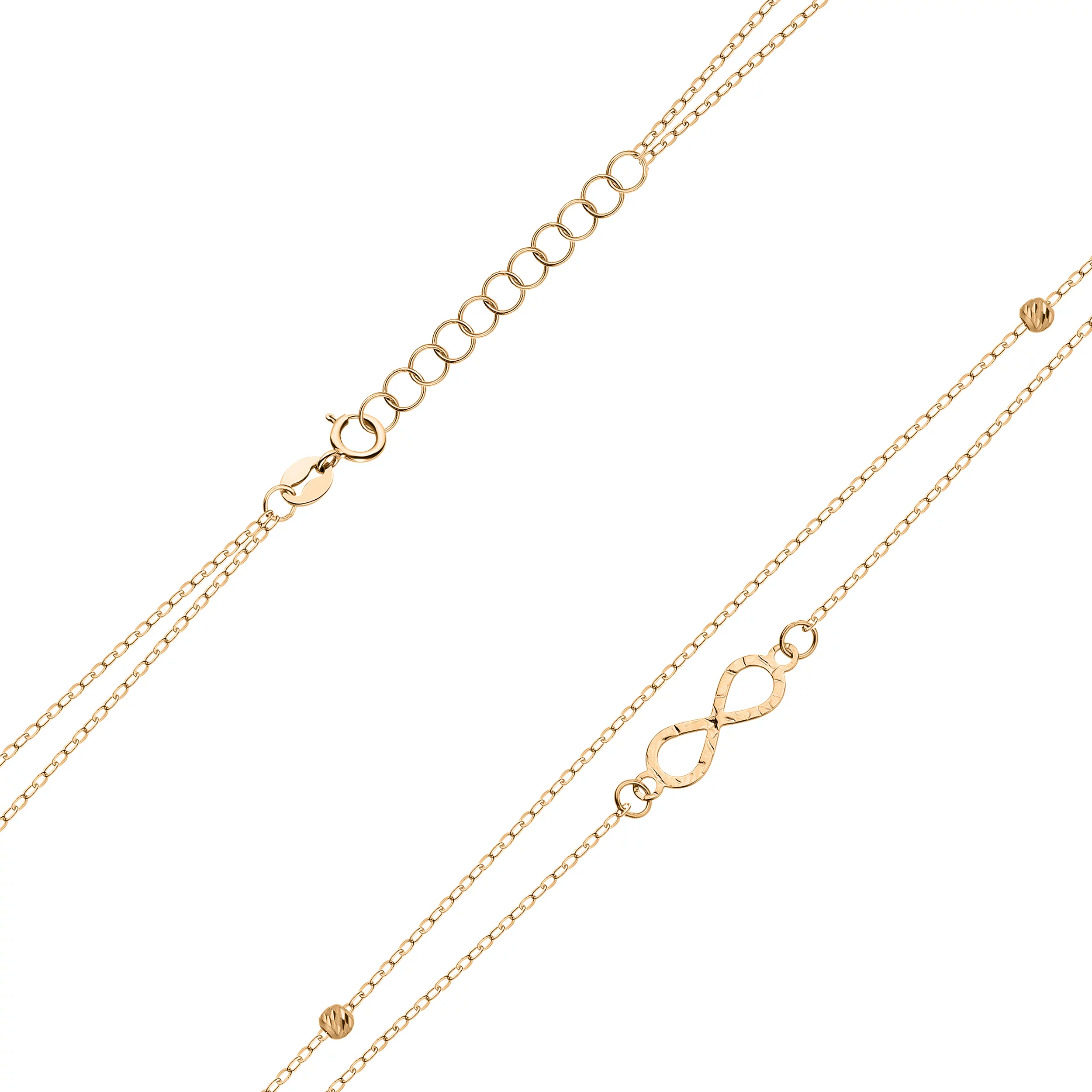 Тройной браслет из комбинированного золота "Шарики" плетение якорь - 1824925