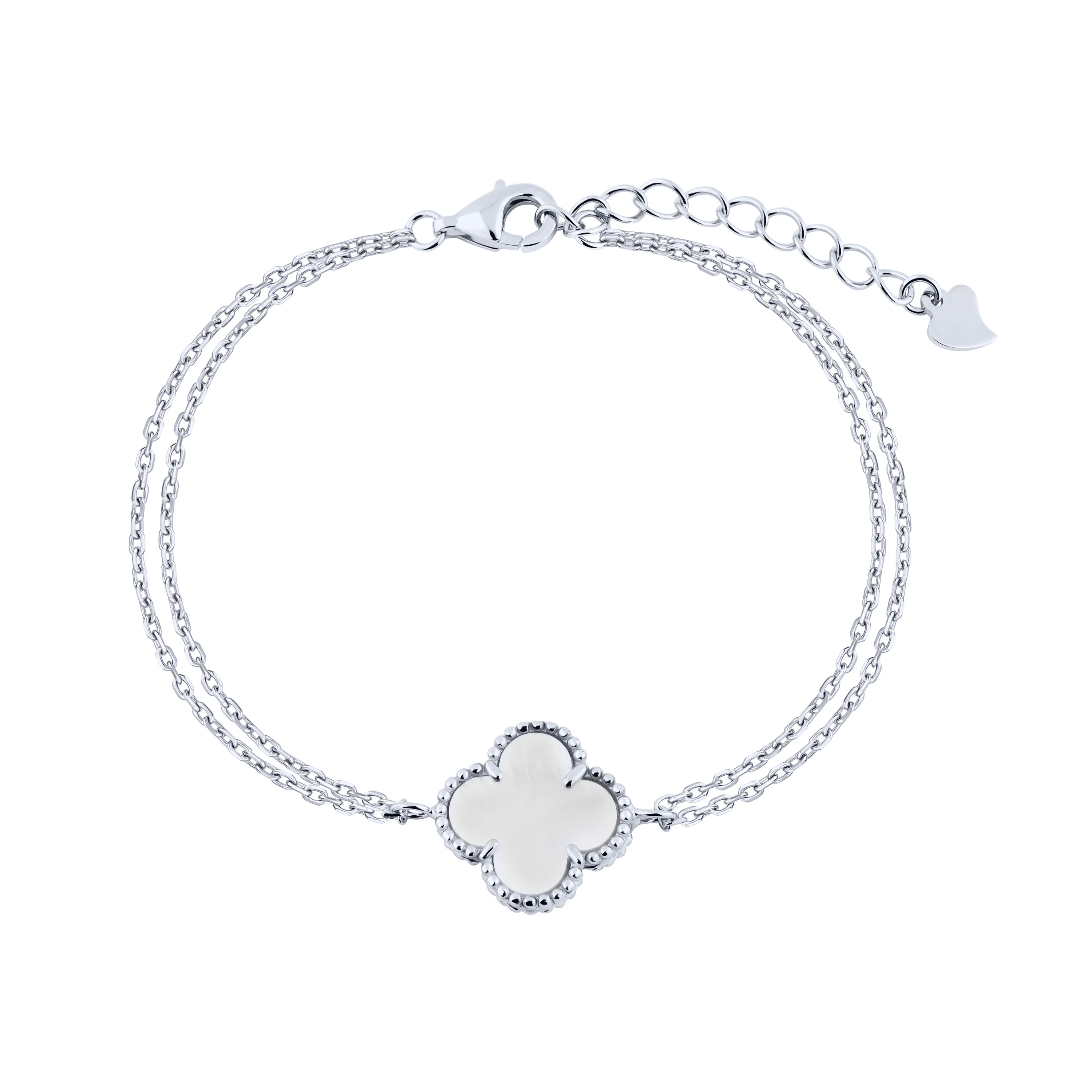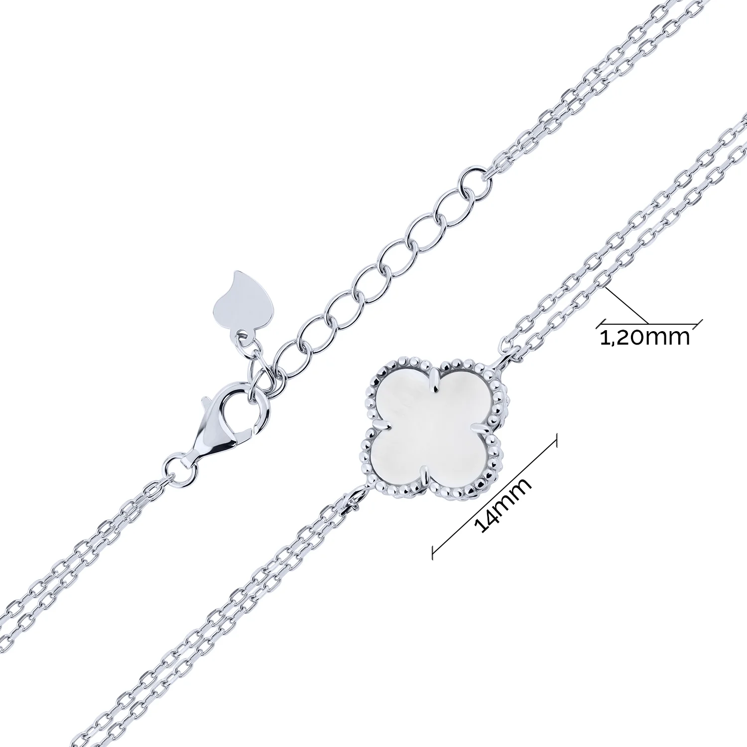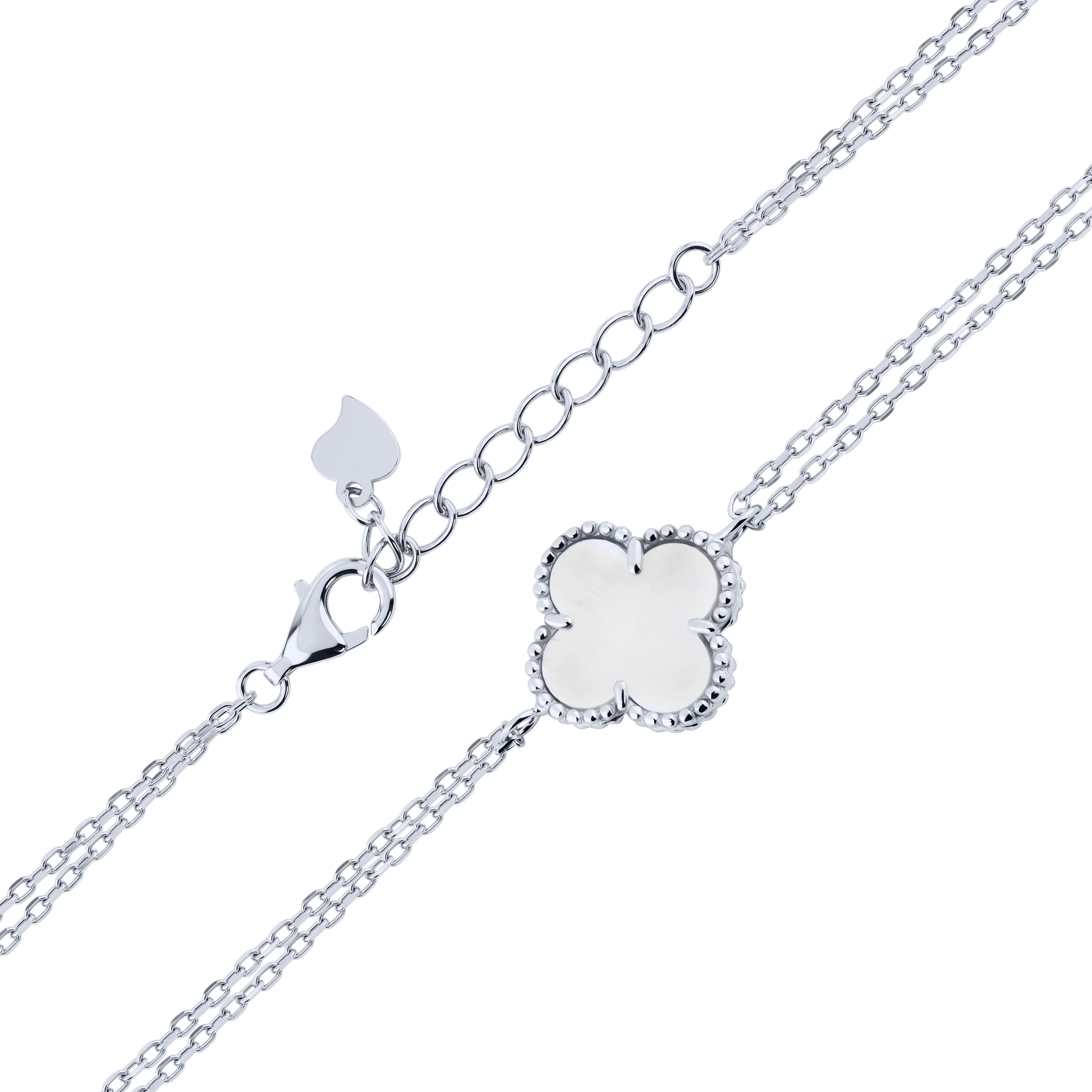 Двойной браслет "Клевер" из серебра с перламутром плетение якорь - 2222009