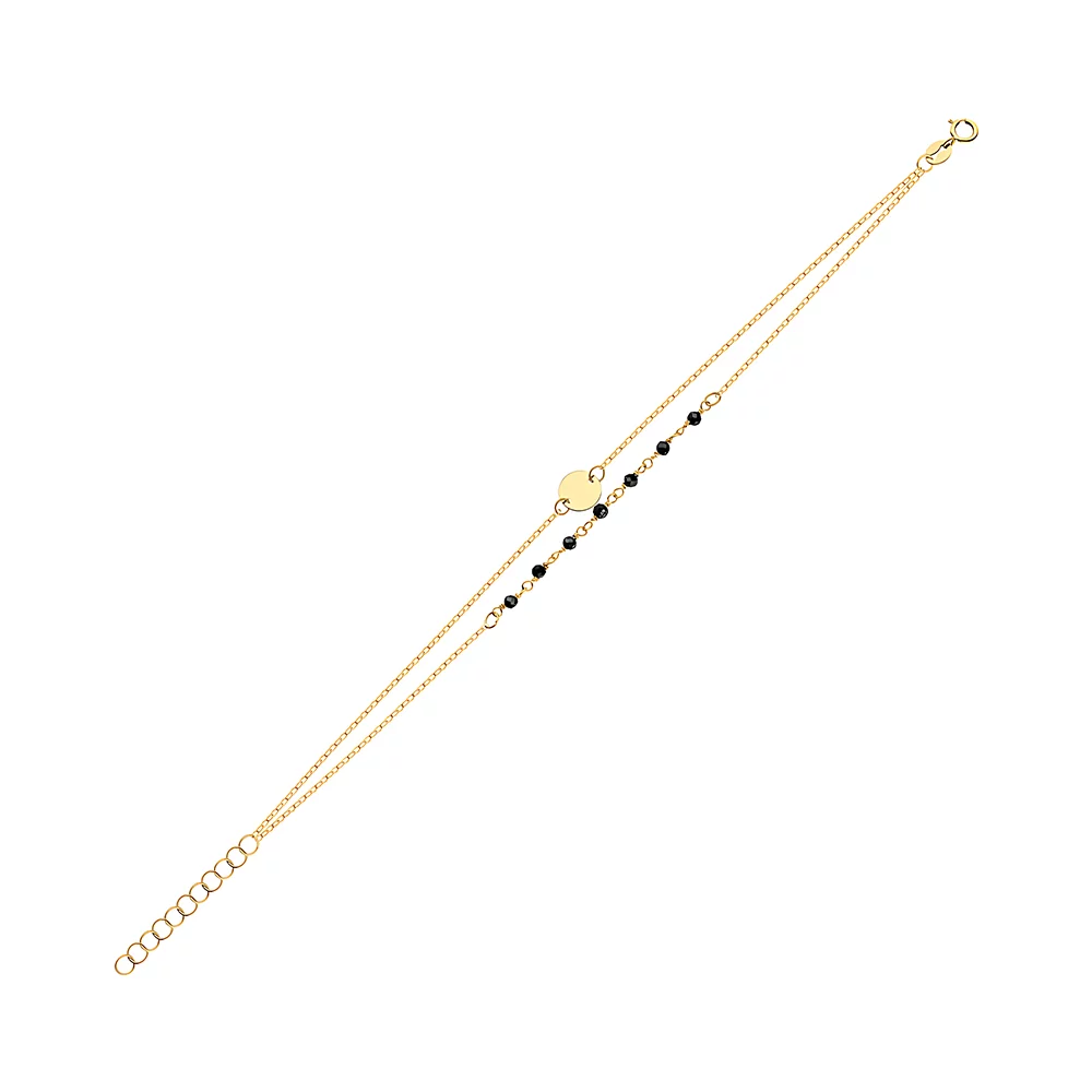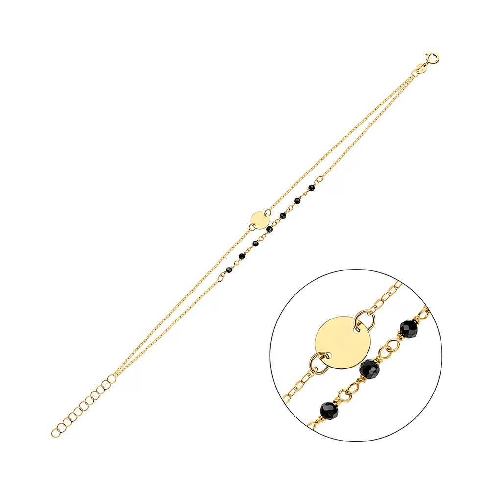 Двойной браслет "Монета" из желтого золота с ониксом плетение якорь - 1531757