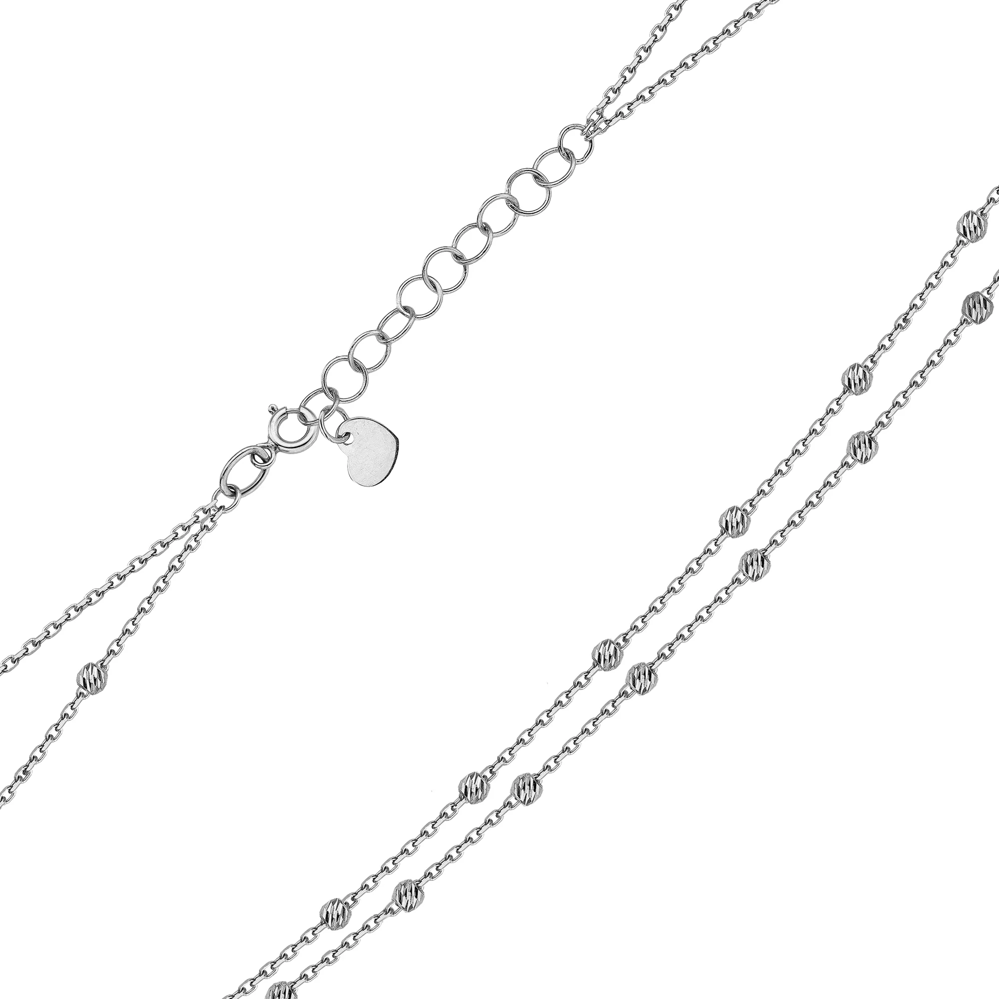 Двойной браслет в белом золоте "Шарики" якорное плетение - 2057573