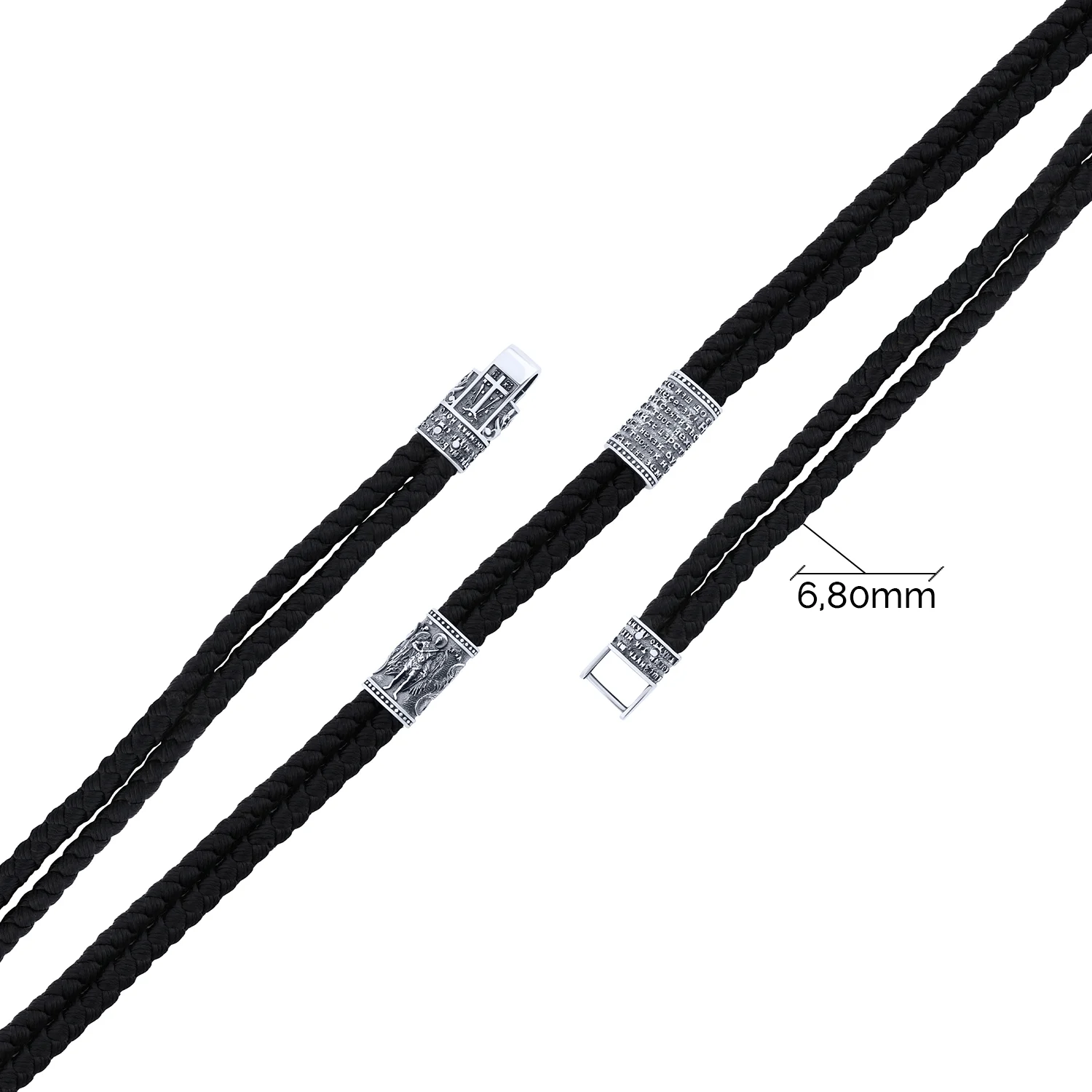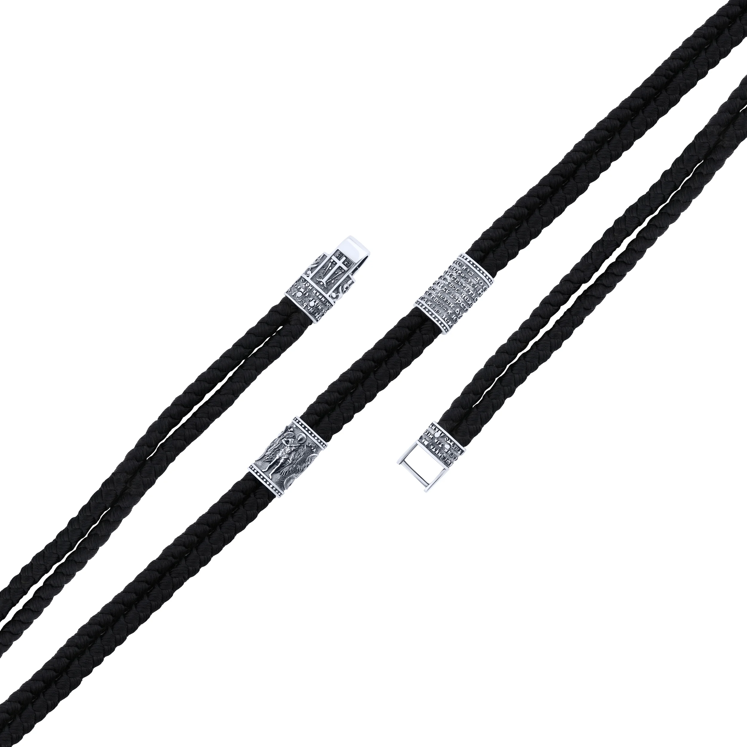 Двойной шелковый браслет с серебряными вставками и чернением - 2149181