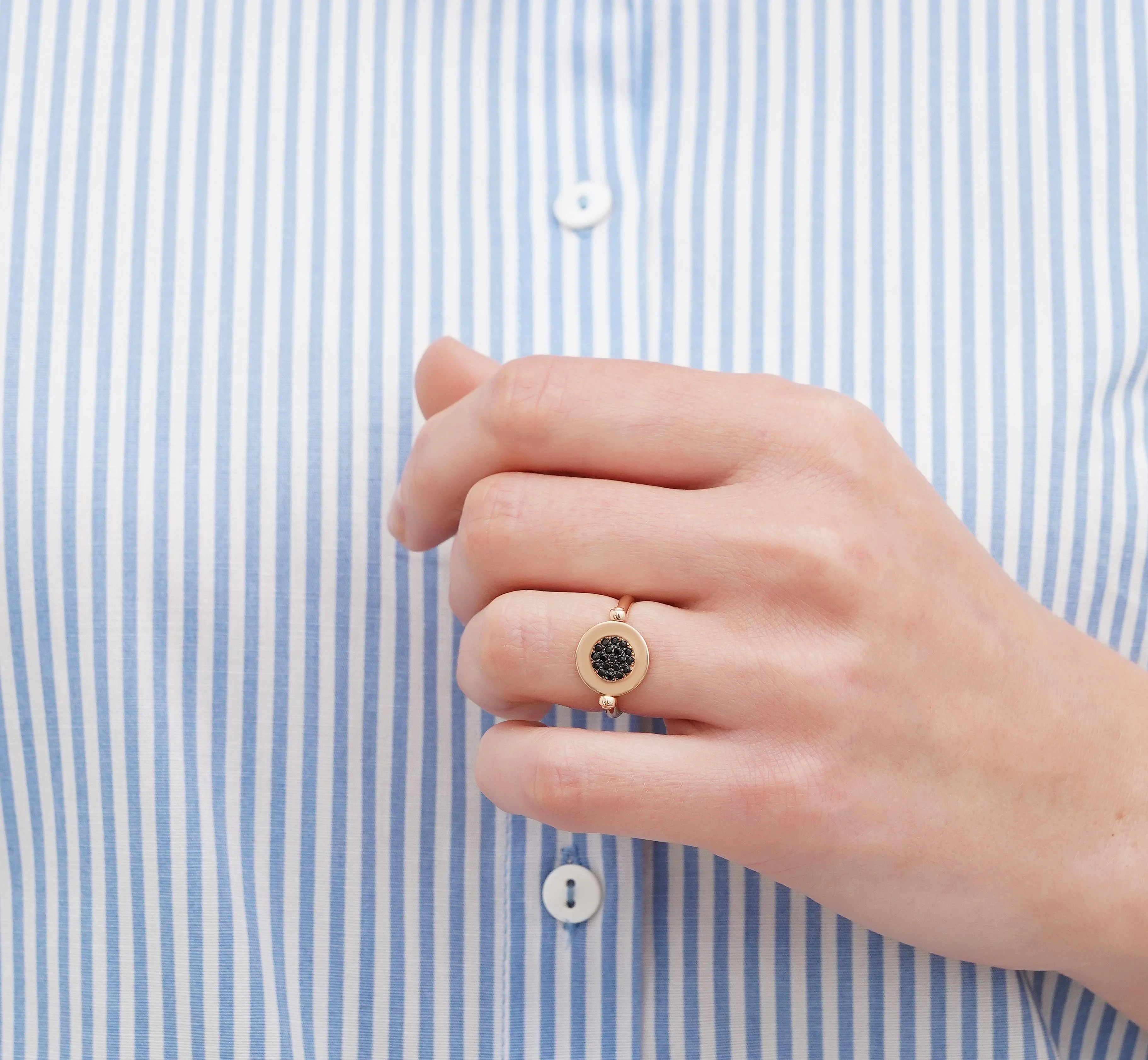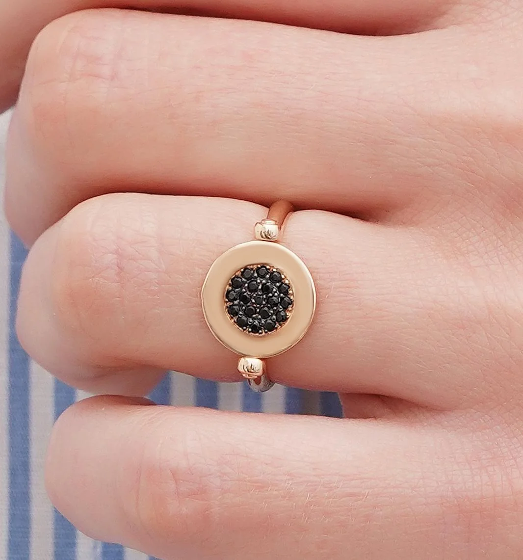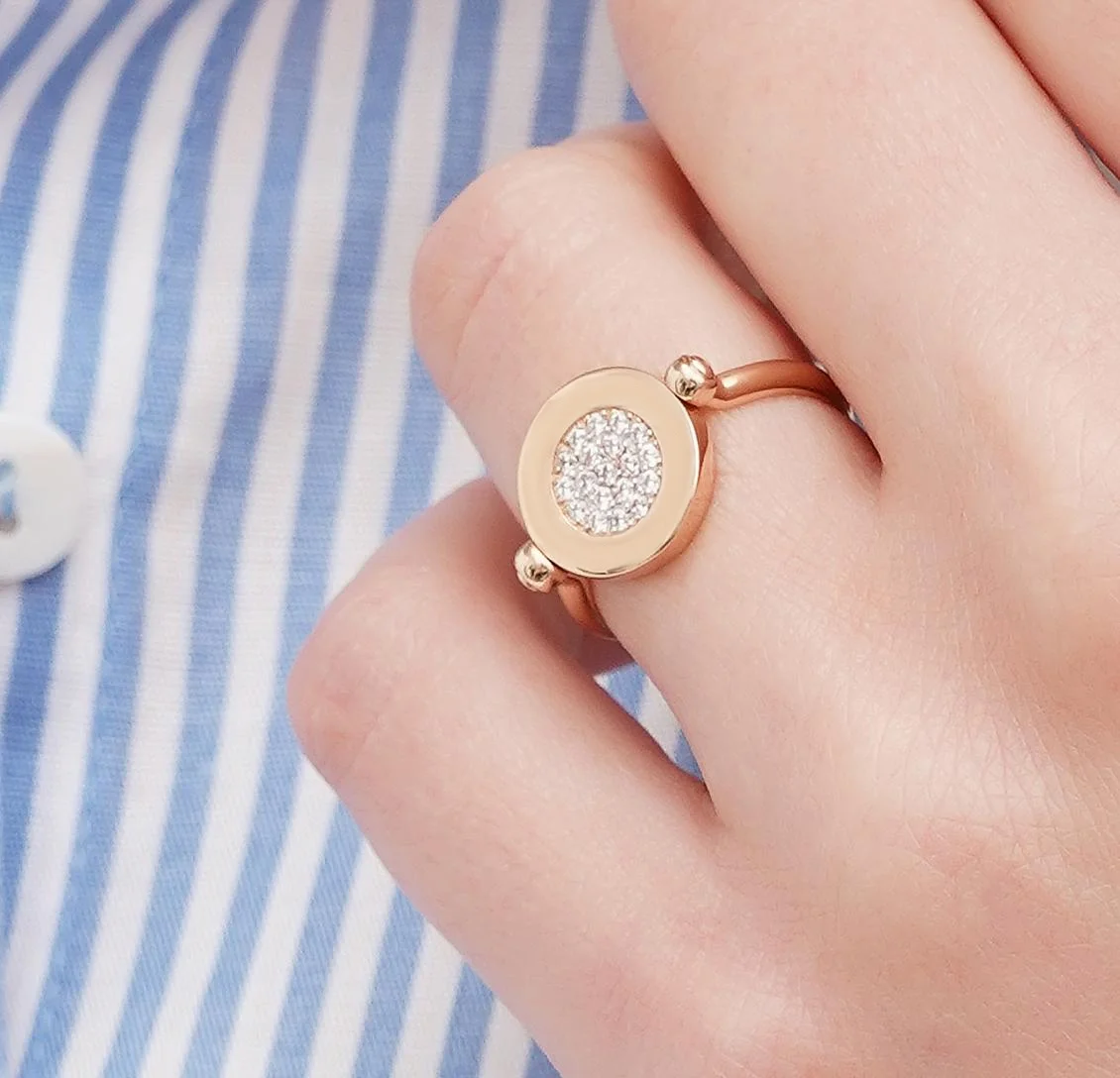 Двухстороннее кольцо из красного золота с фианитами - 1722597