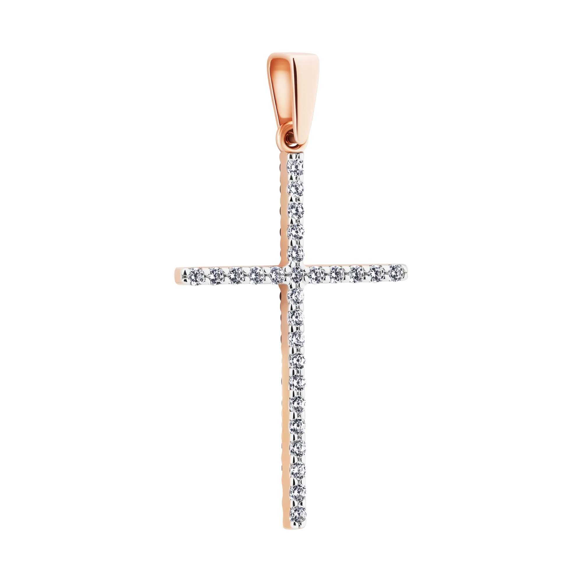 Двухсторонний крест из красного золота с черными и белыми фианитами - 466174