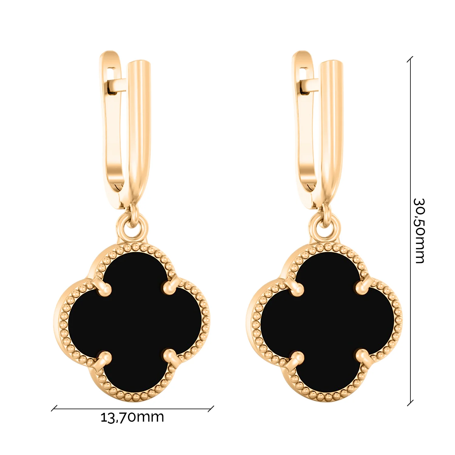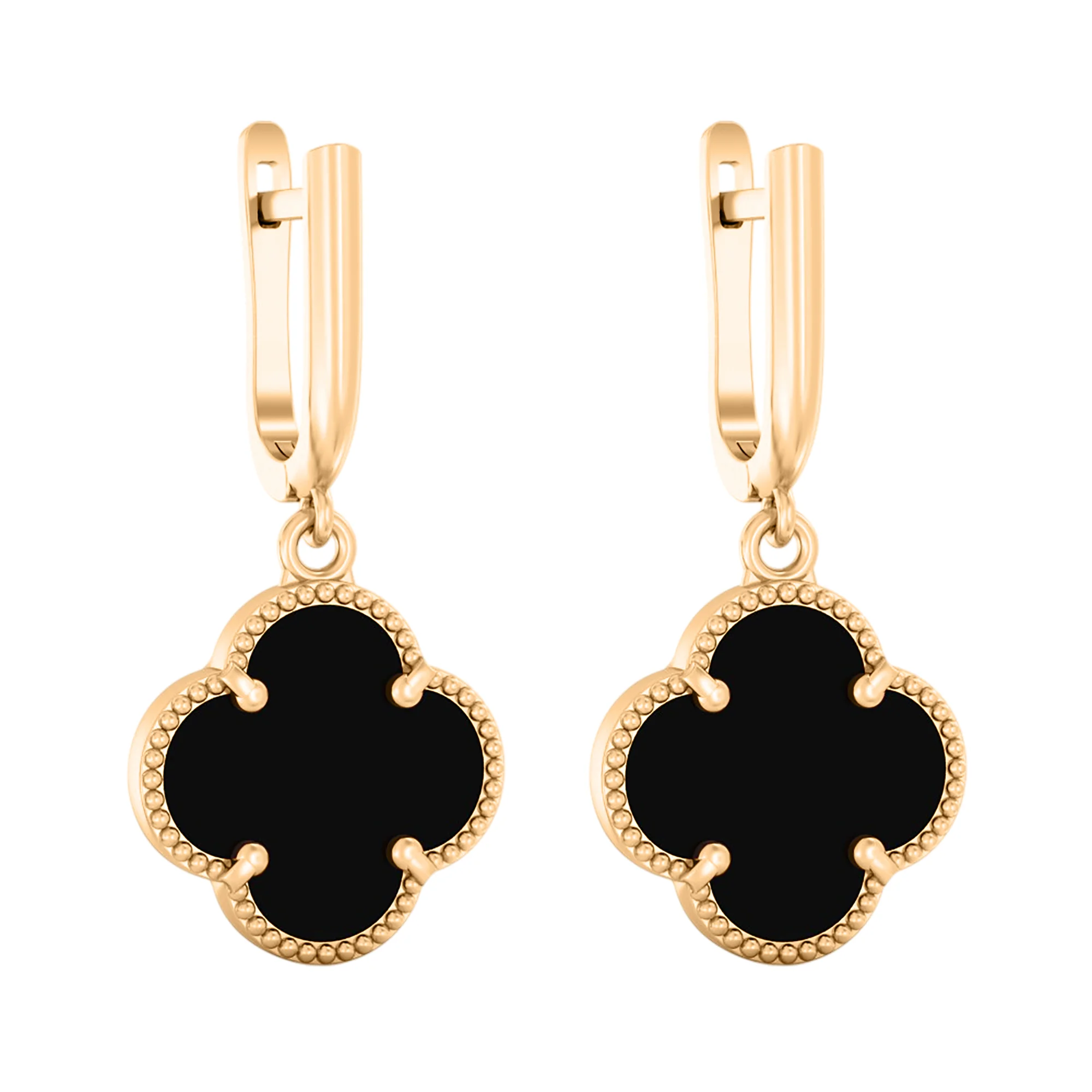 Эксклюзивные серьги из красного золота "Клевер" с подвесами и ониксом - 2014630