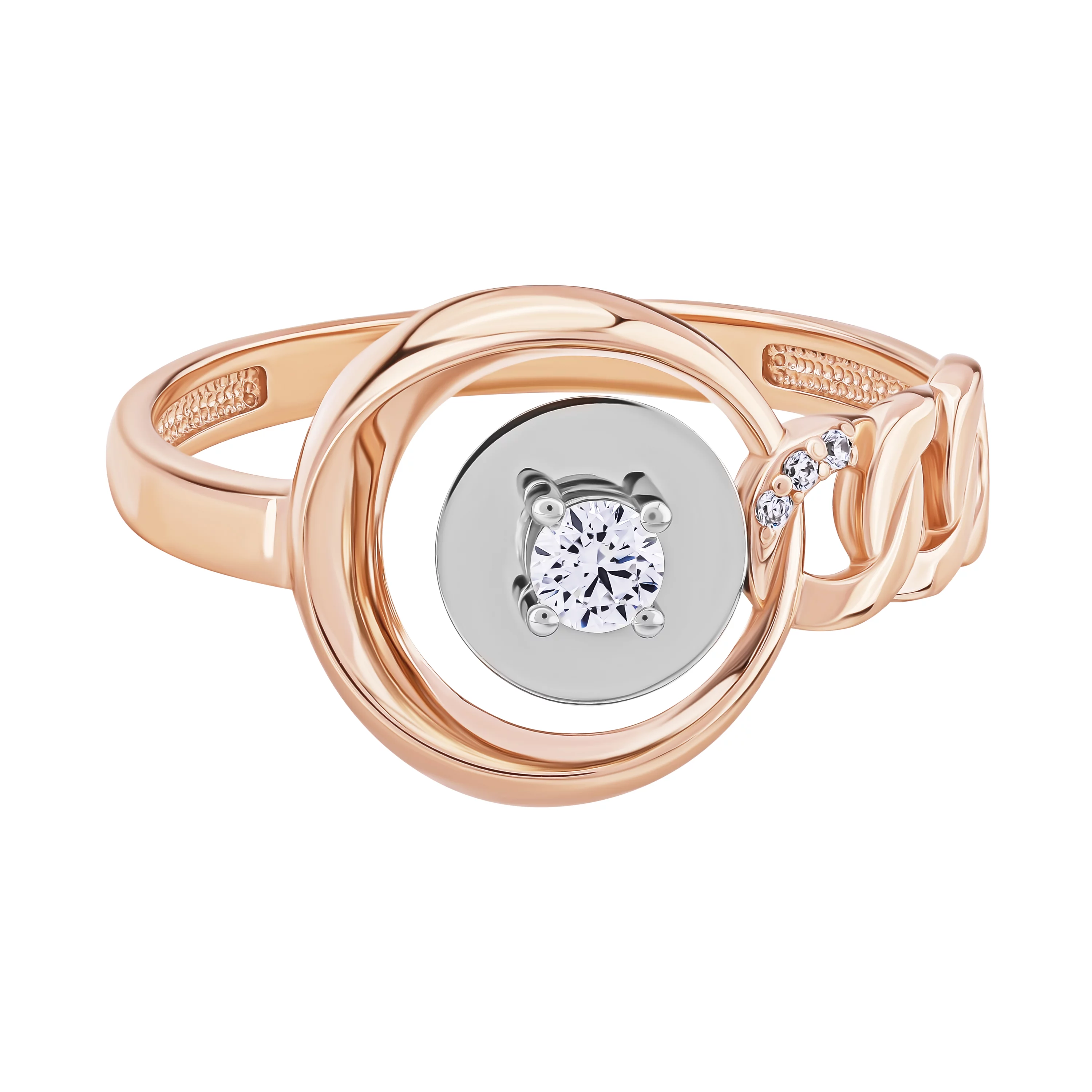 Обручальное кольцо из комбинированого золота с фианитом американка - 521211