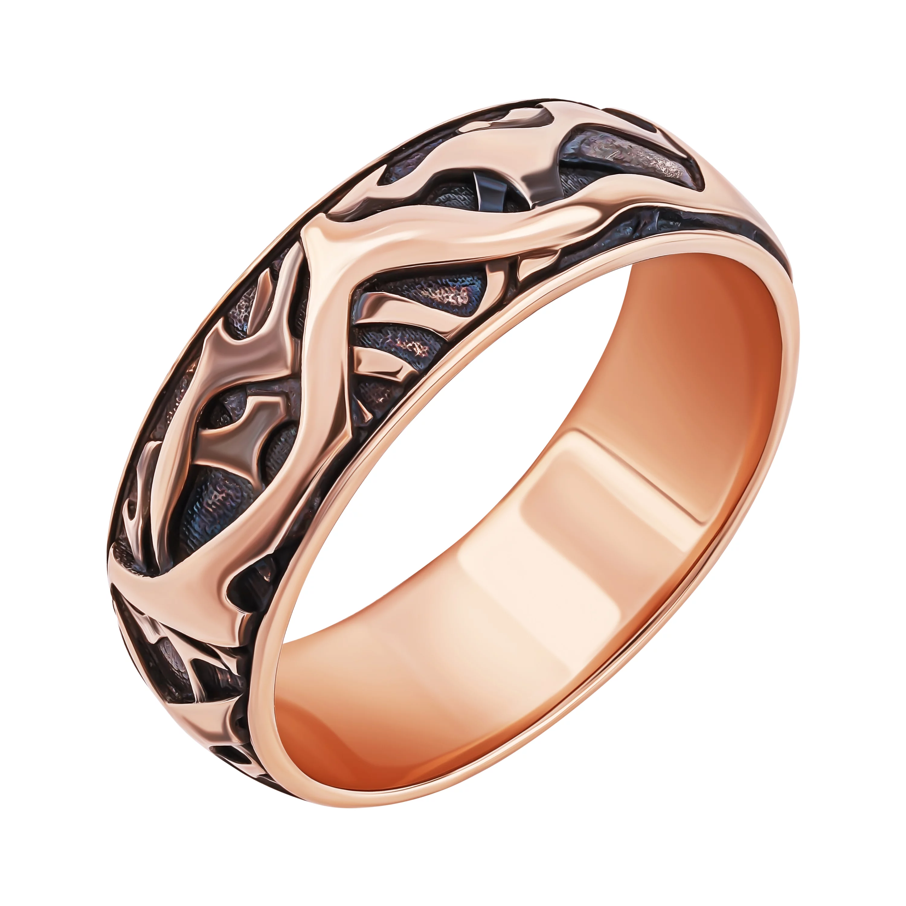 Экстравагантное обручальное кольцо из красного золота с чернением - 1916024