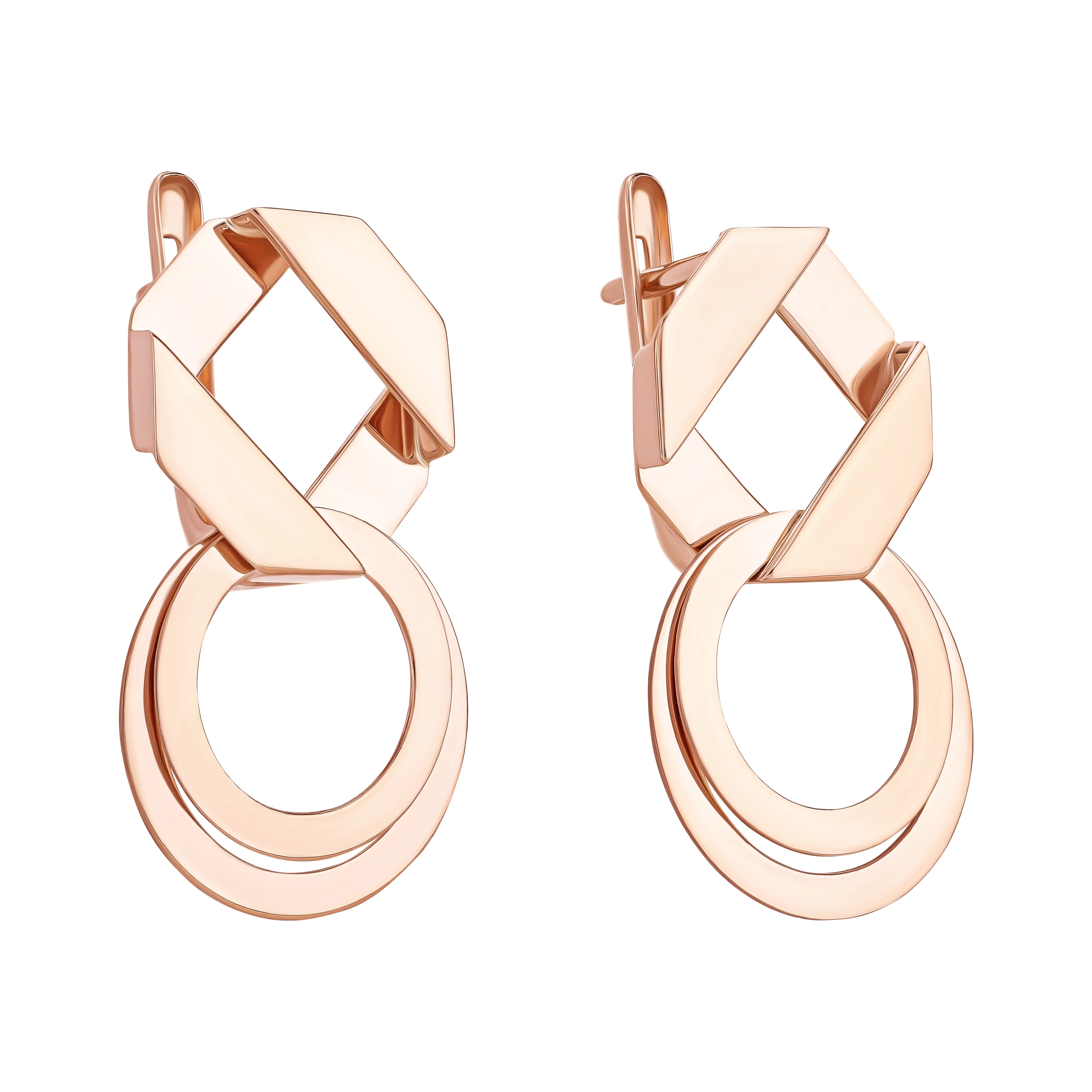 Элегантные сережи в геометрическом стиле с подвесами из красного золота - 1951622