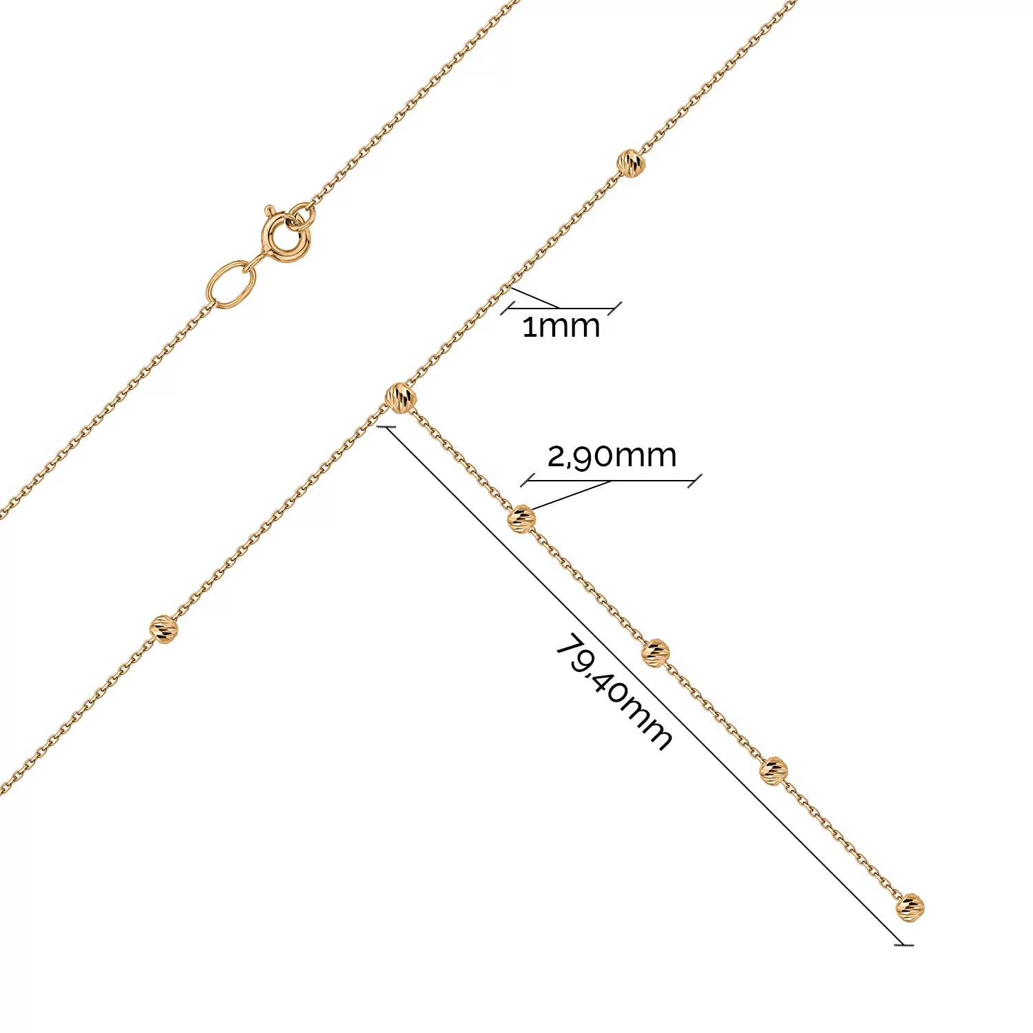 Колье-галстук "Шары" в минималистичном стиле из комбинированного золота с якорным плетением - 1941318