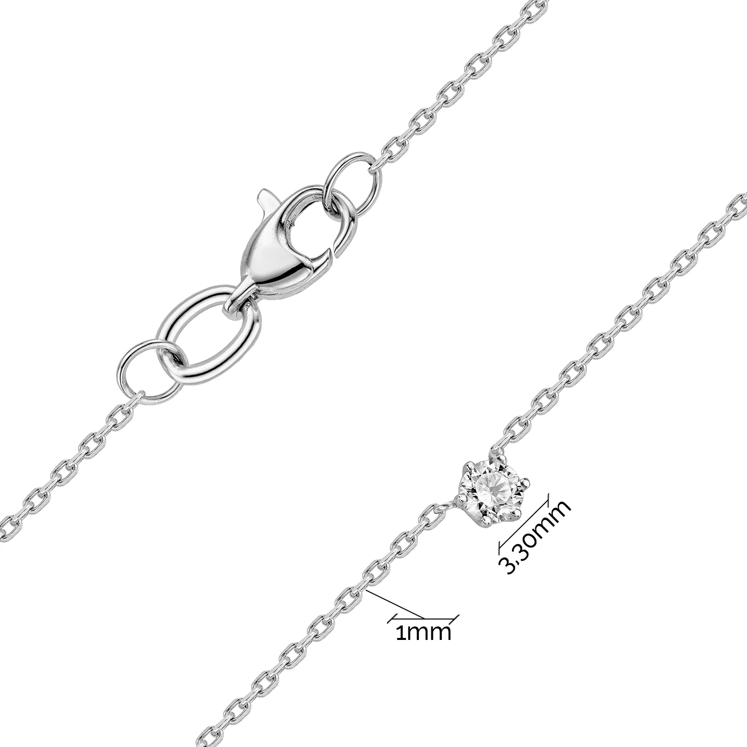 Классическое колье с бриллиантом в белом золоте с якорным плетением - 1879108
