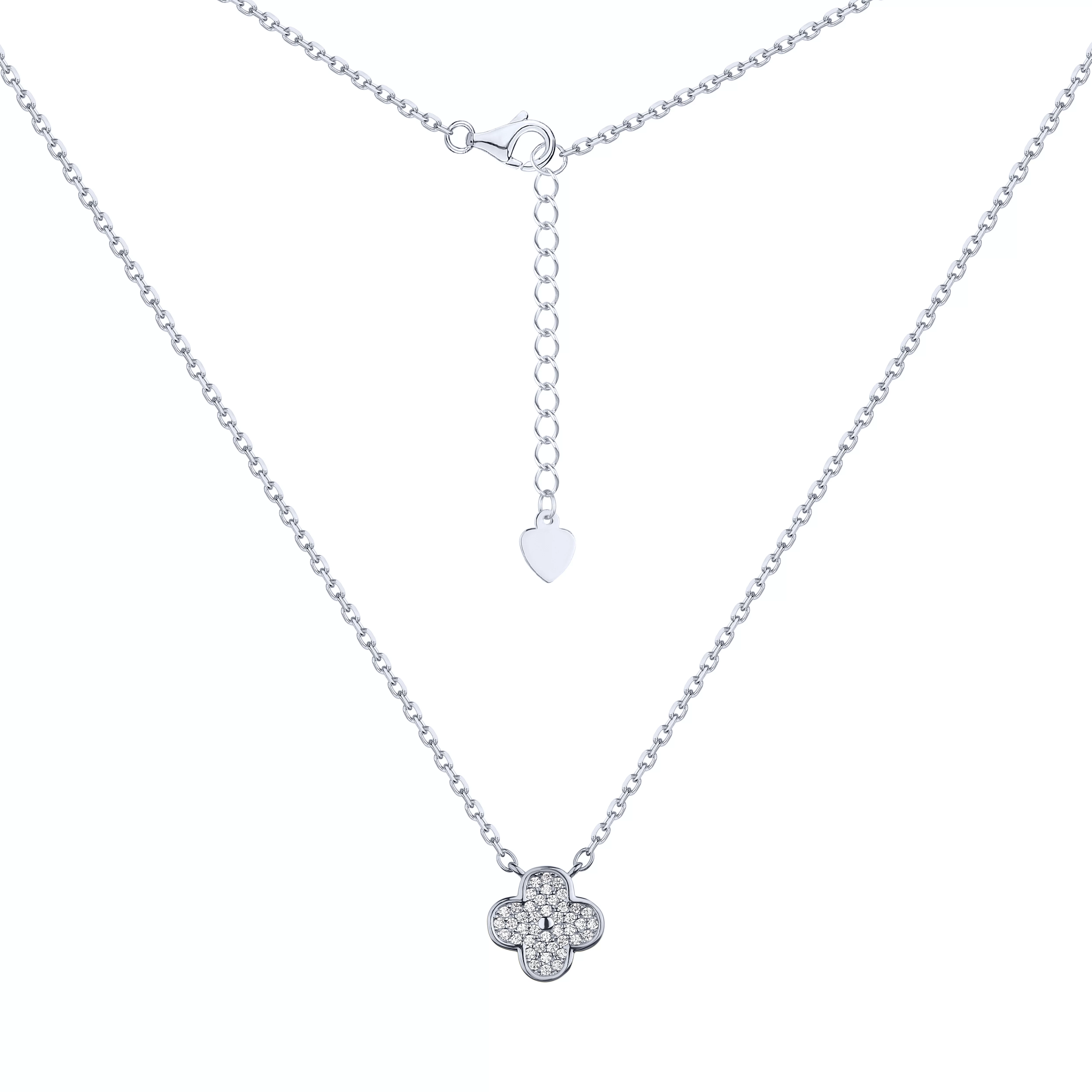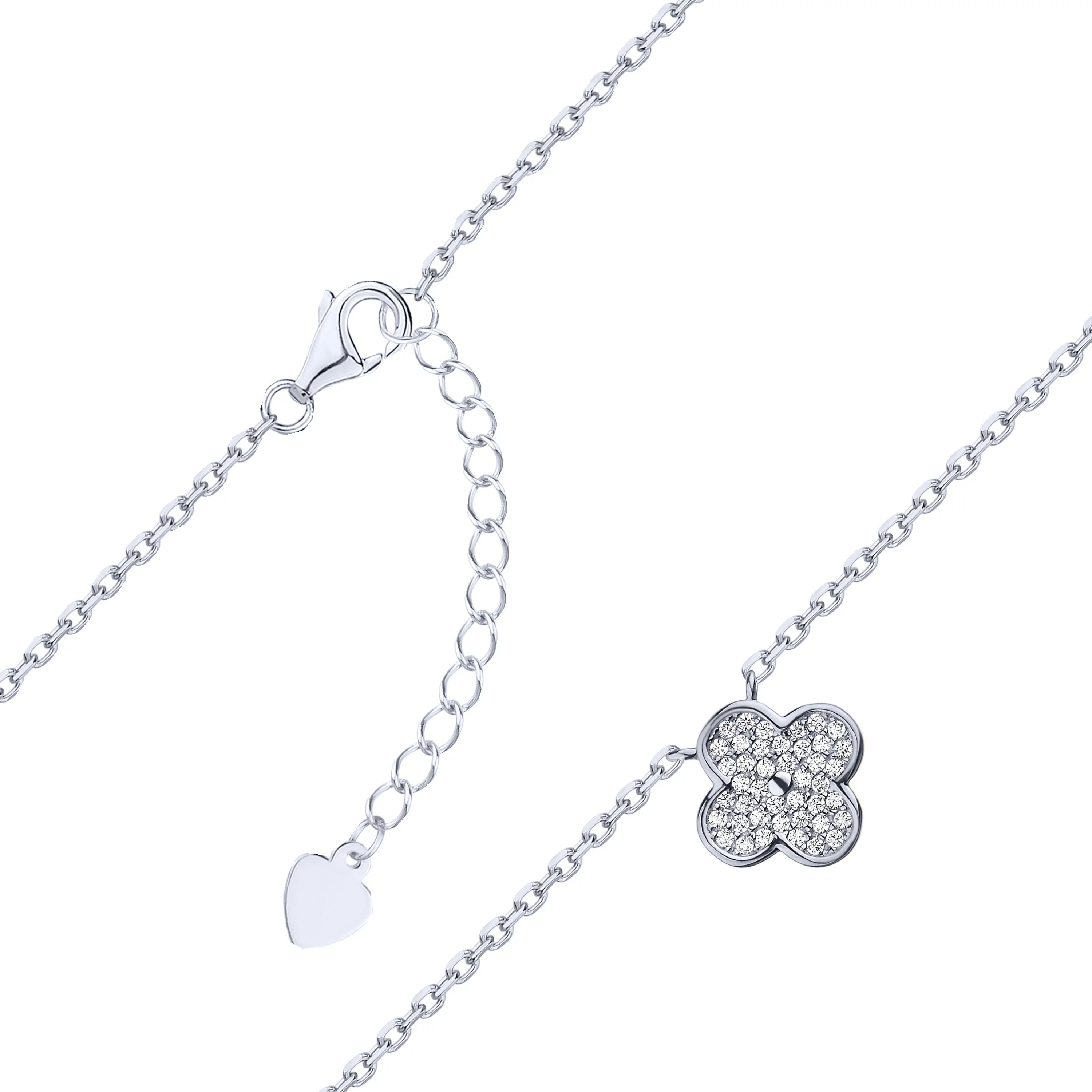 Серебряное колье с подвесом "Клевер" с якорным плетением с фианитами и альпинитом - 1962908