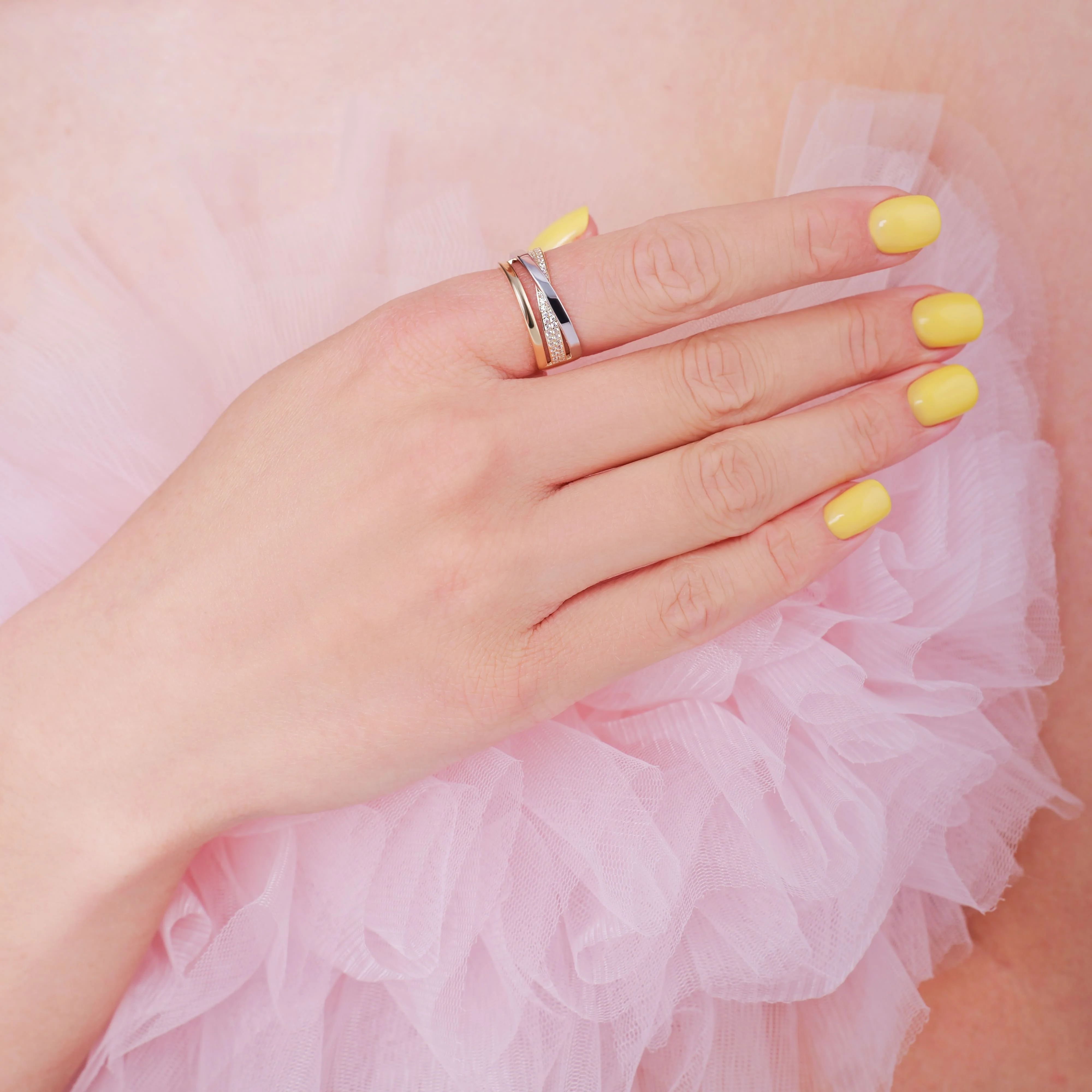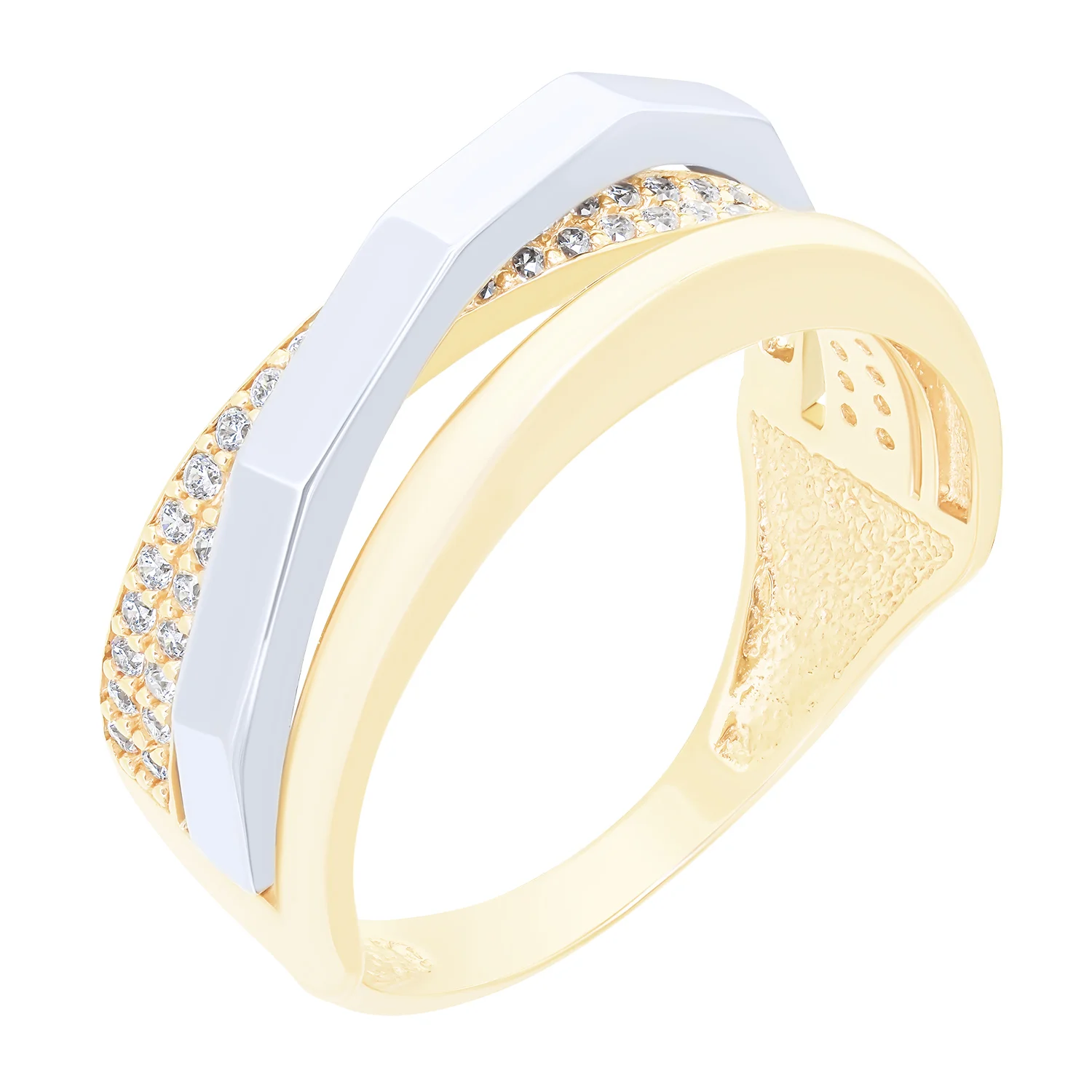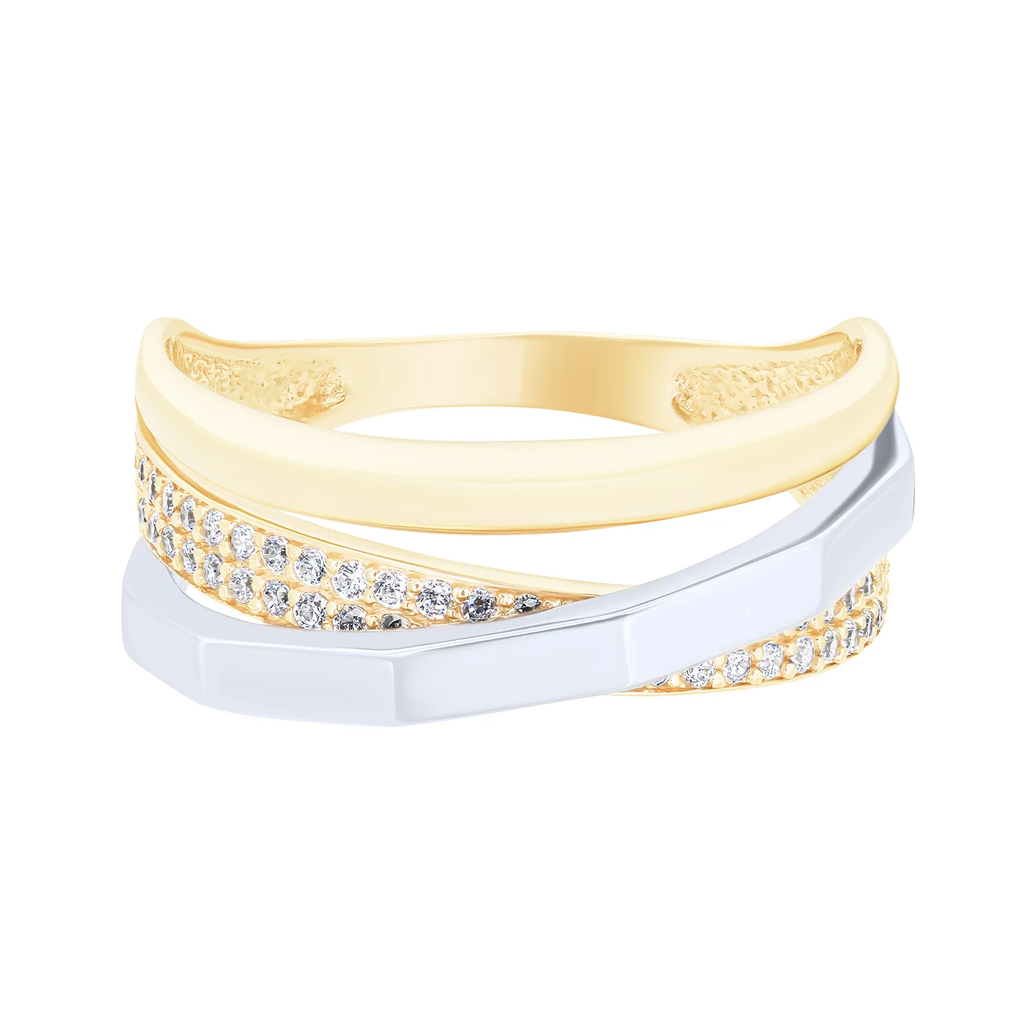 Элегантное кольцо "Переплетение" в комбинированном золоте с фианитами - 1985835