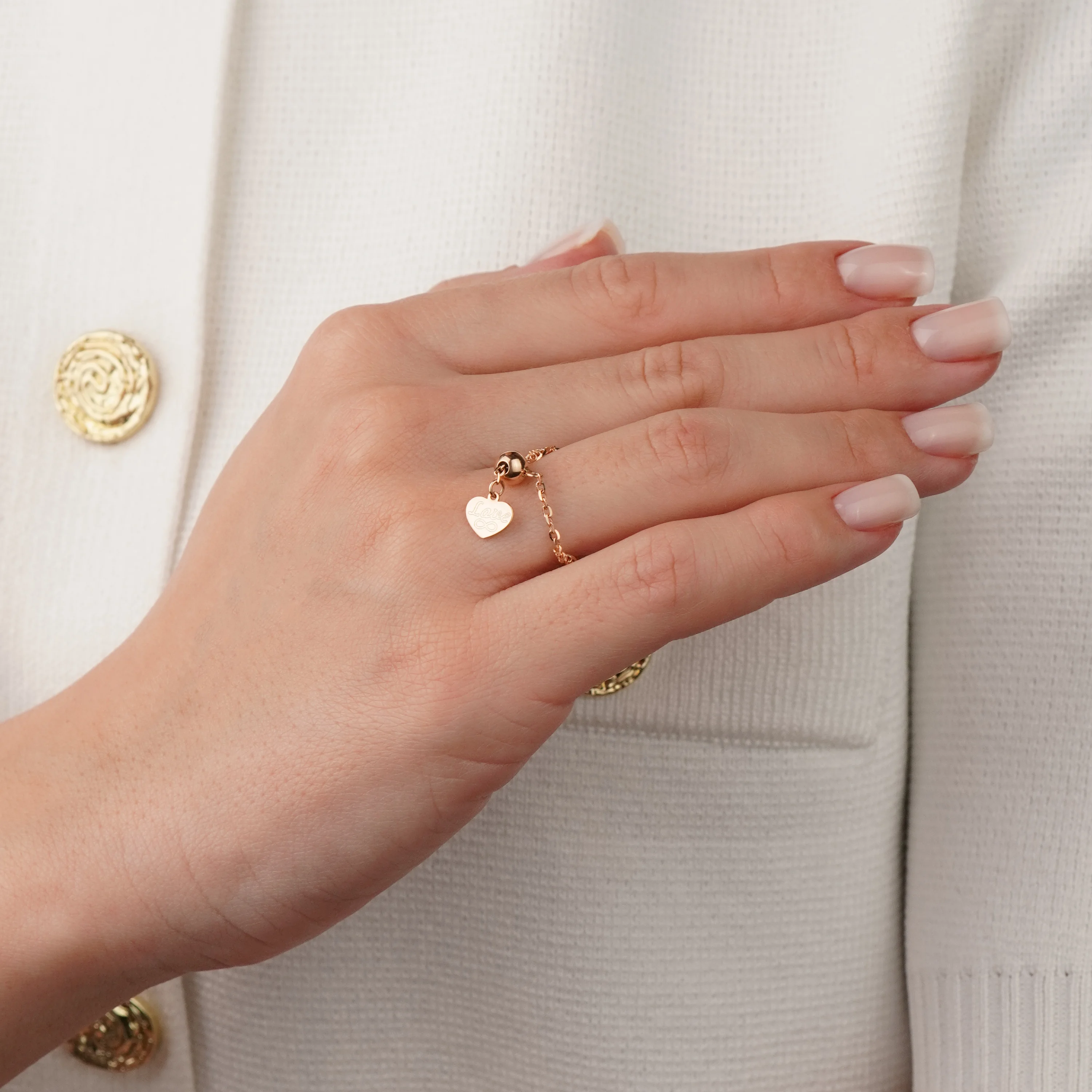 Кольцо-цепочка с подвесом "Сердце" в красном золоте - 1969263