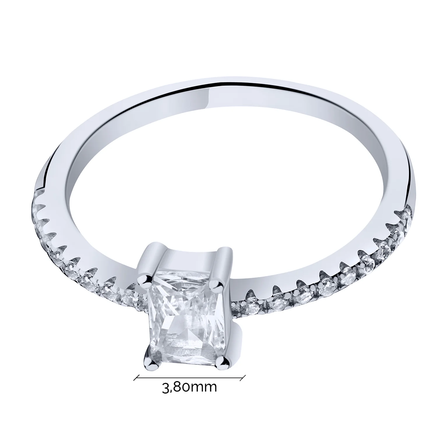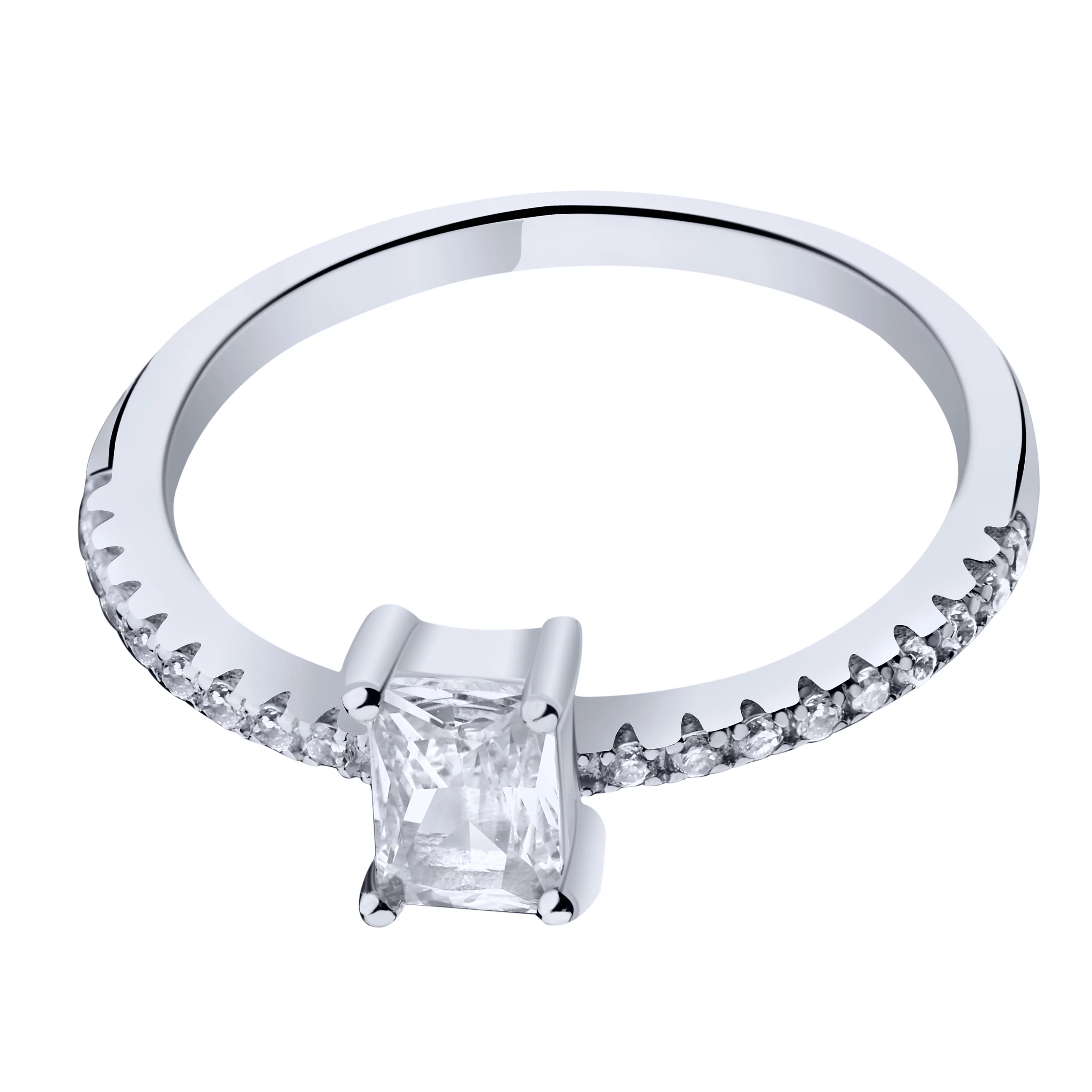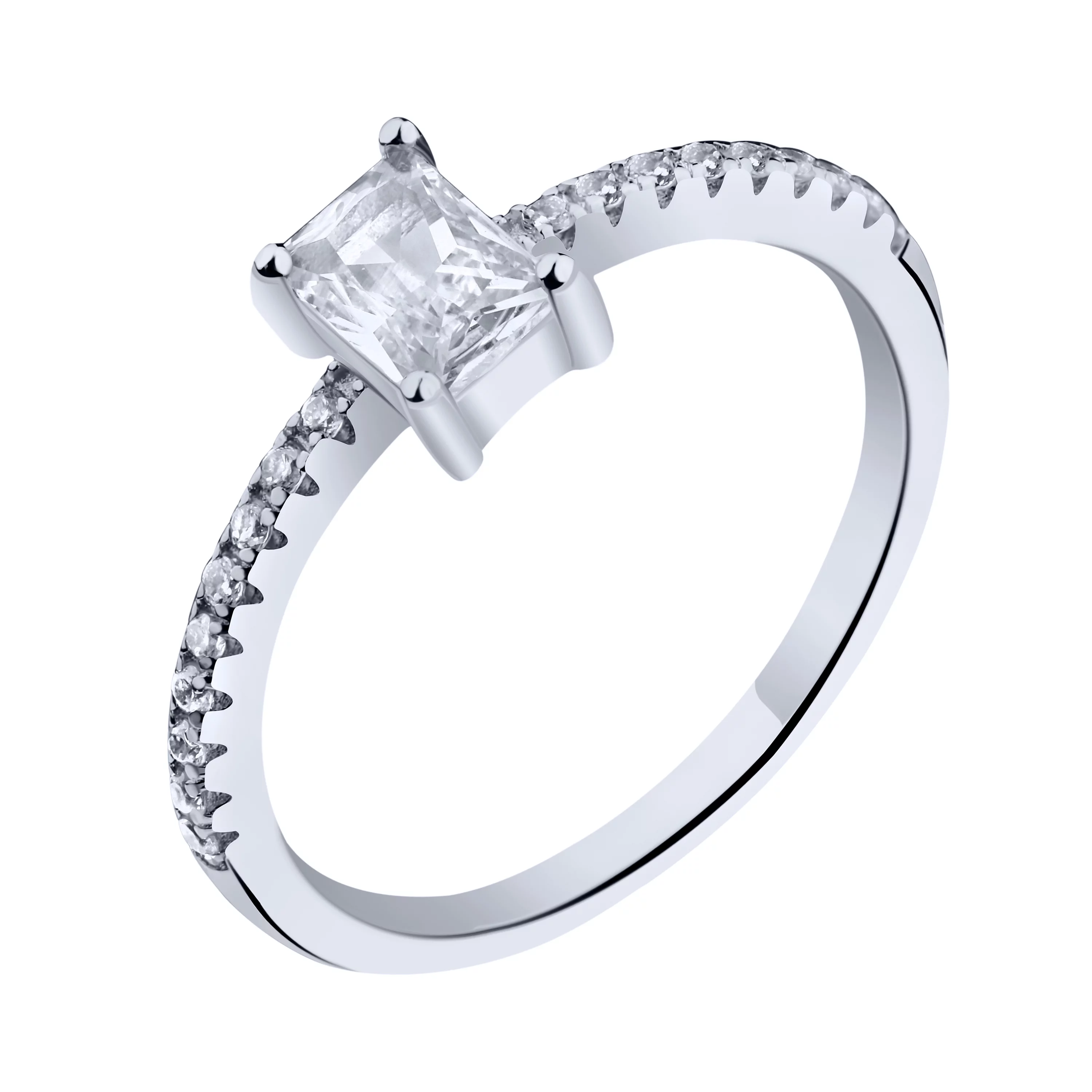 Элегантное раздвижное серебряное кольцо в минималистичном стиле с фианитом - 1957214