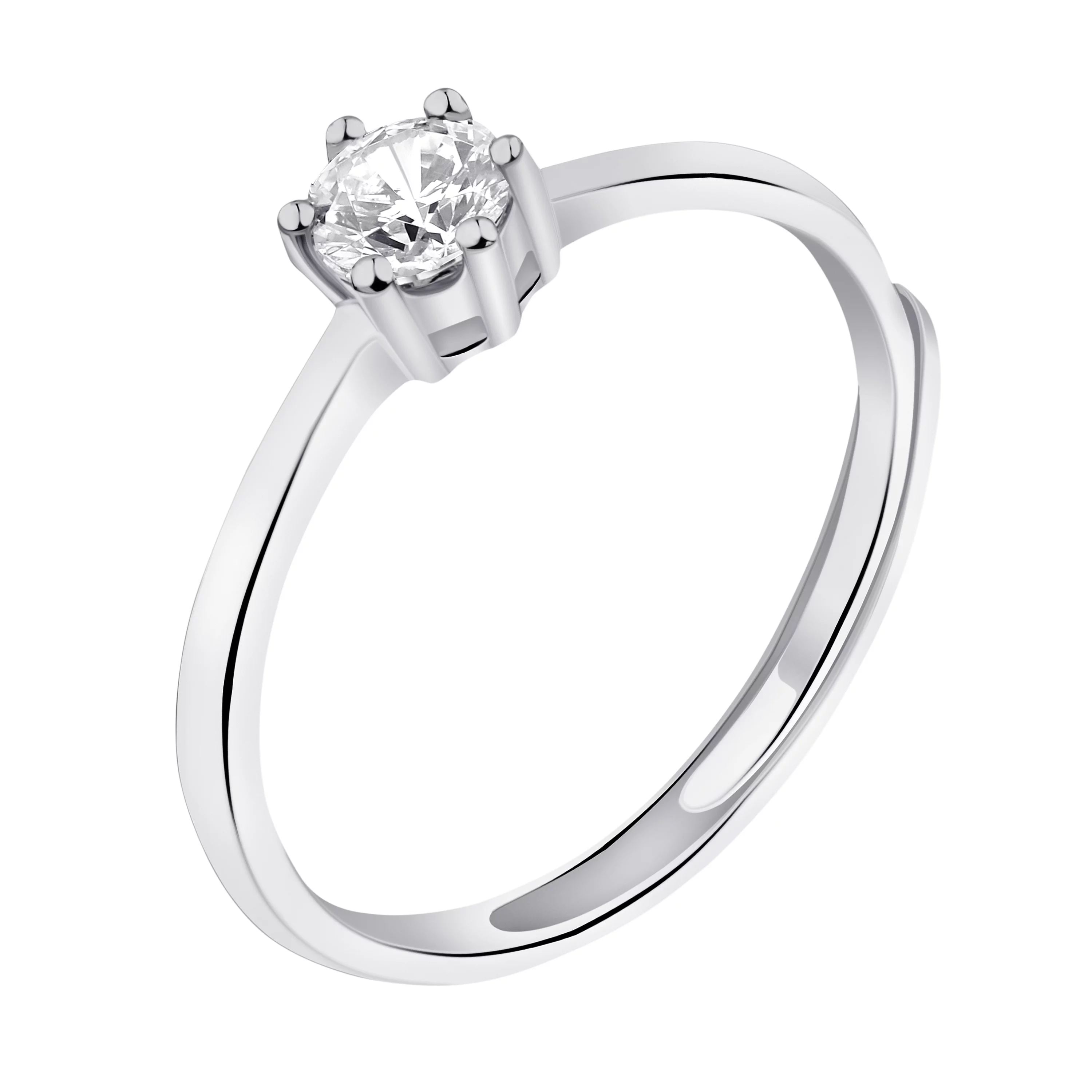 Элегантное раздвижное серебряное кольцо в минималистичном стиле с фианитом - 1957214
