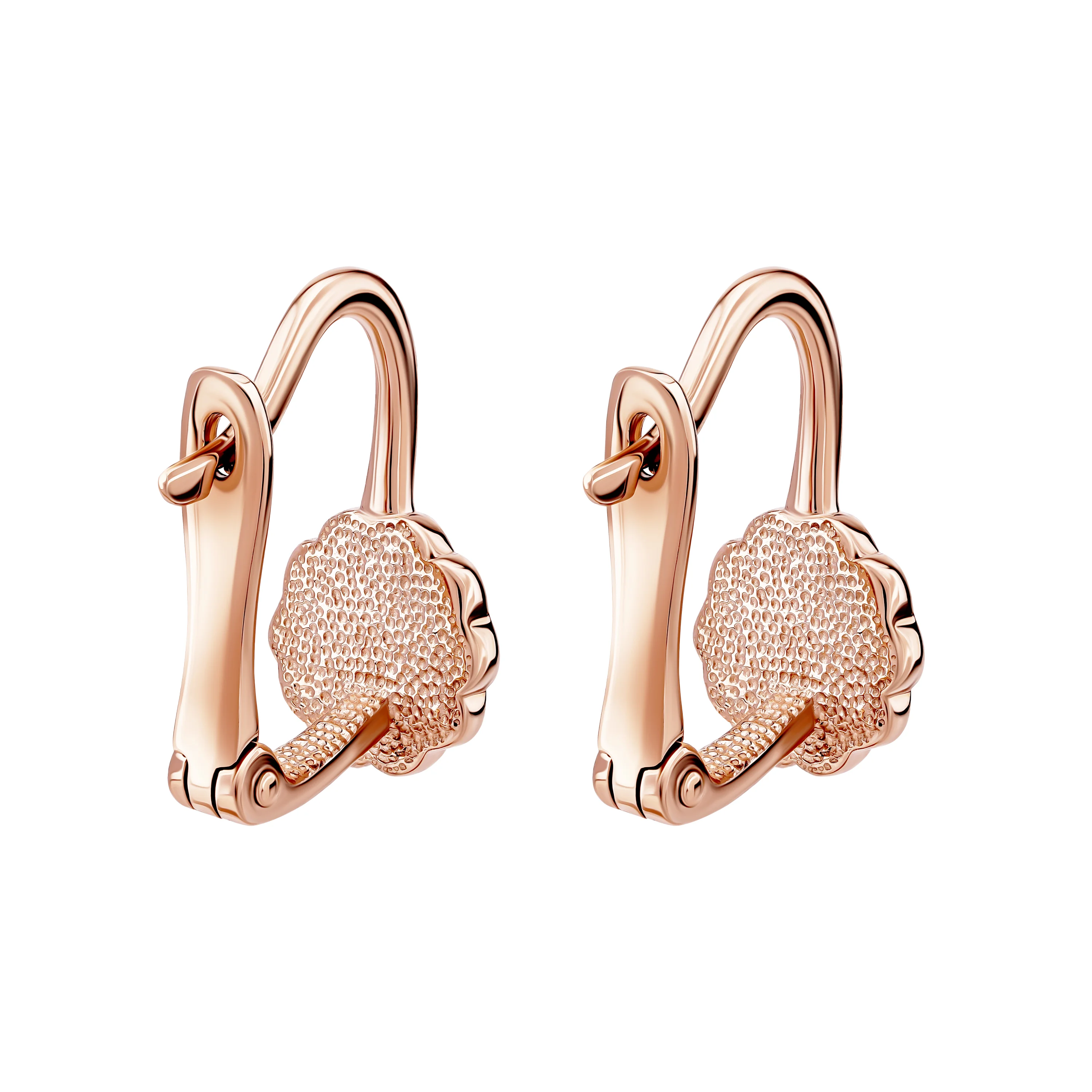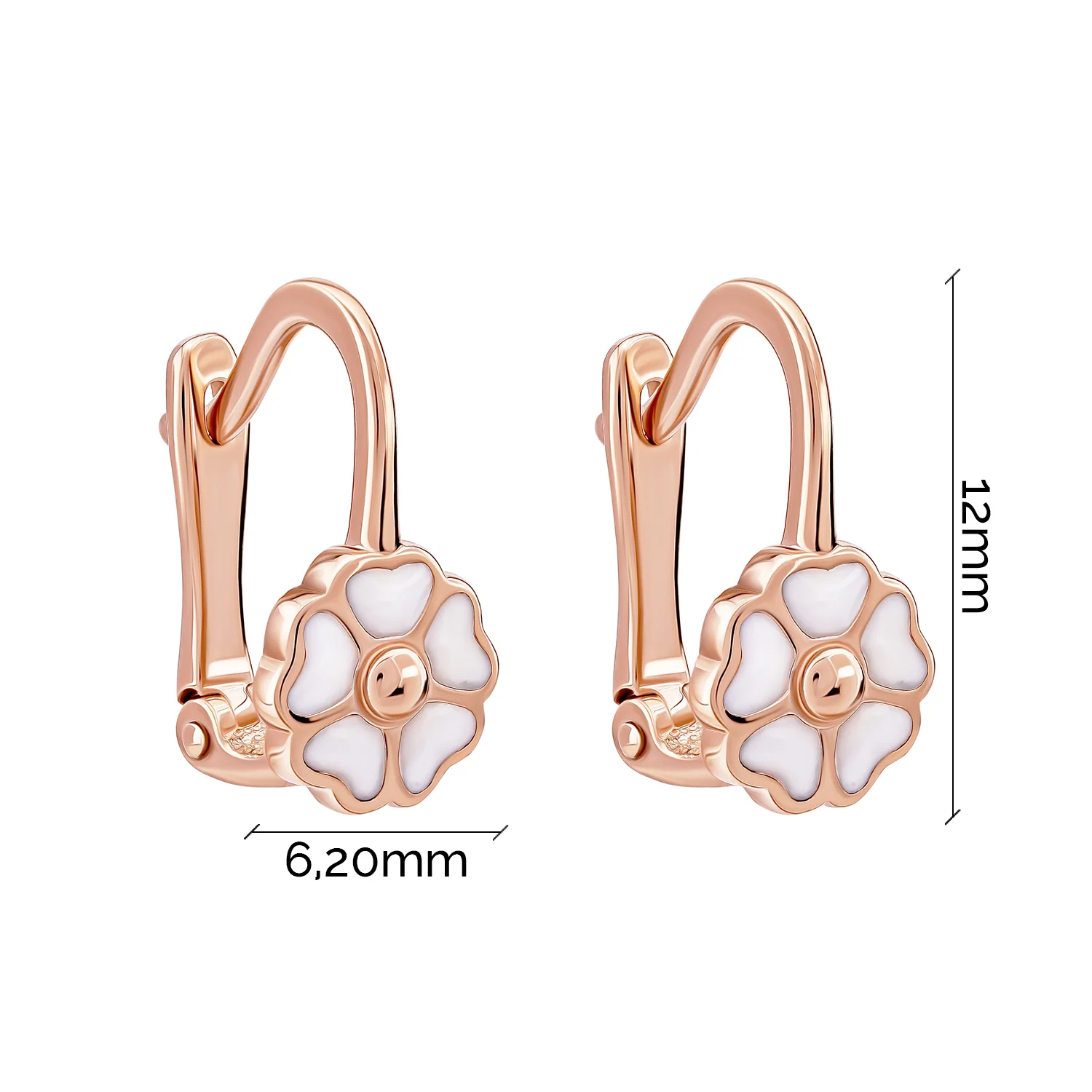 Элегантные детские сережки "Цветы" в красном золоте с эмалью - 1973619