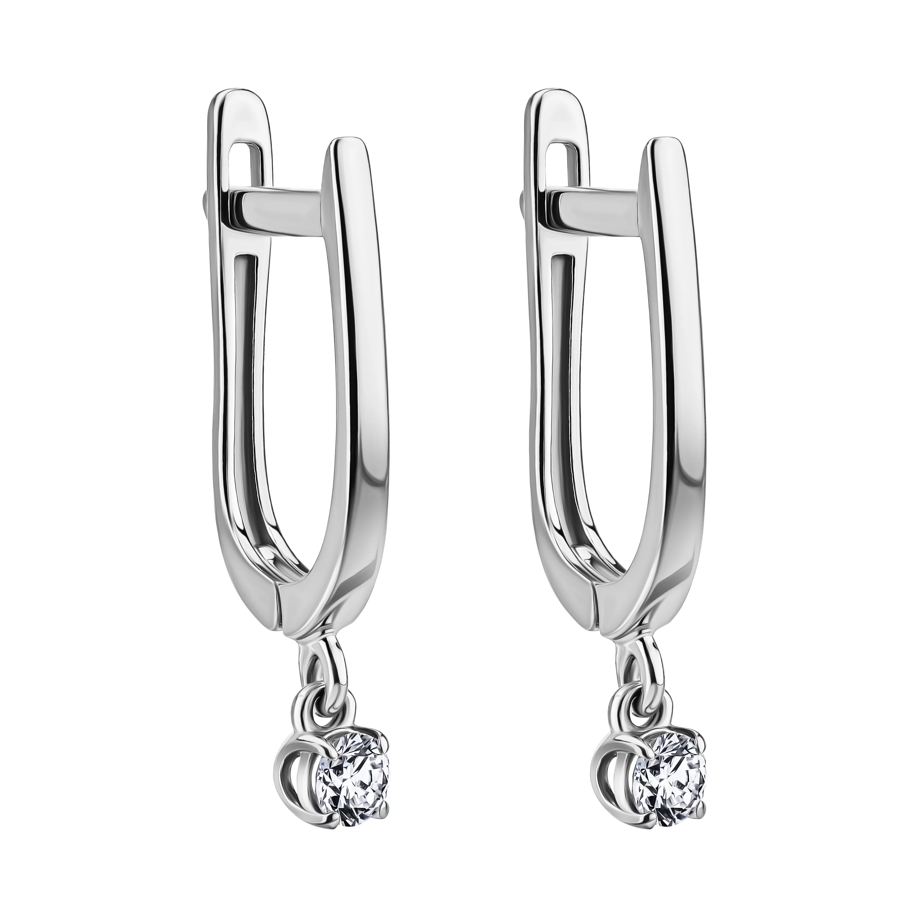 Сережки из белого золота в минималистичном стиле с бриллиантами - 1870801