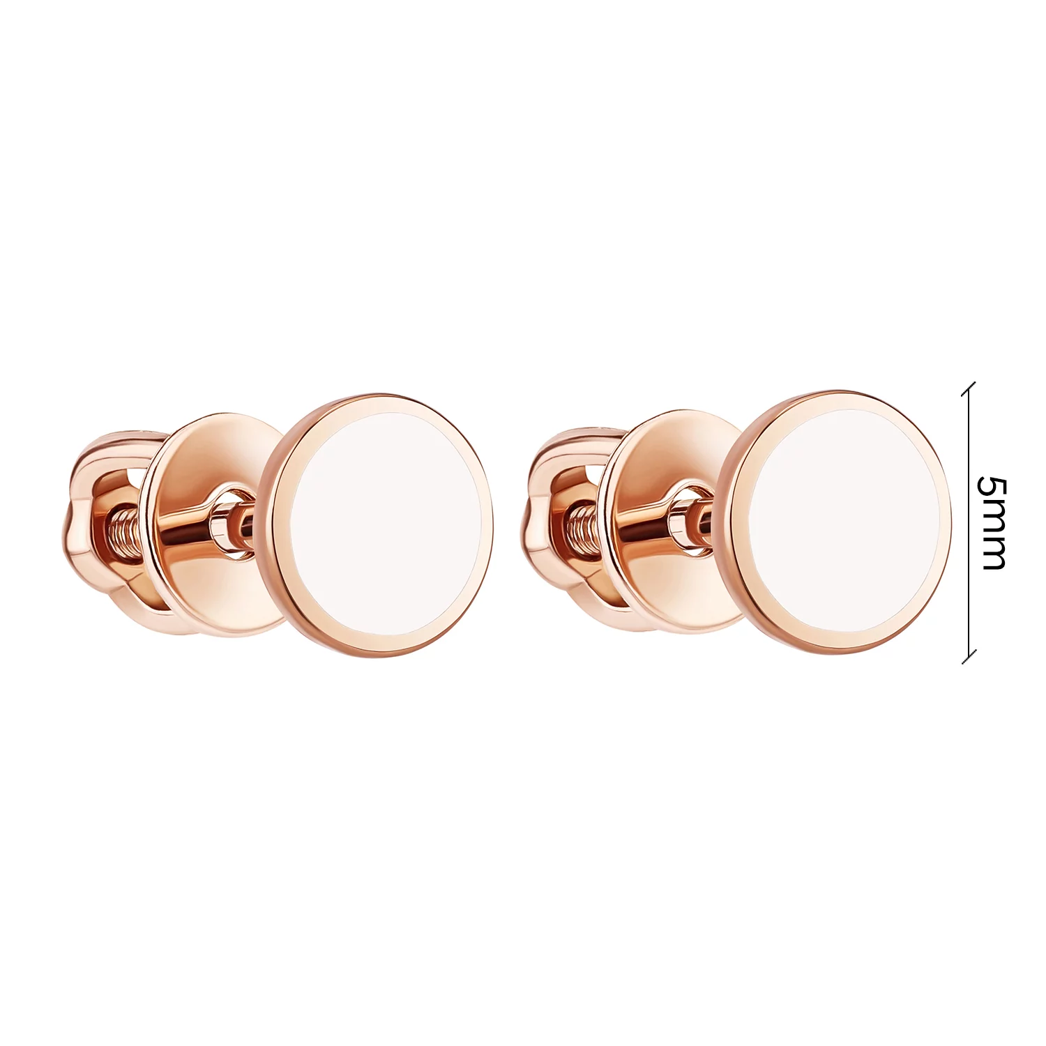 Сережки-гвоздики в минималистичном стиле из красного золота с эмалью - 1924909
