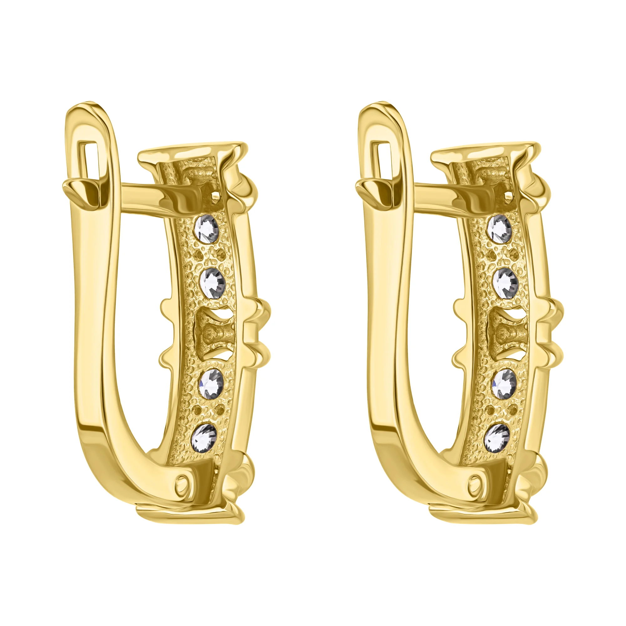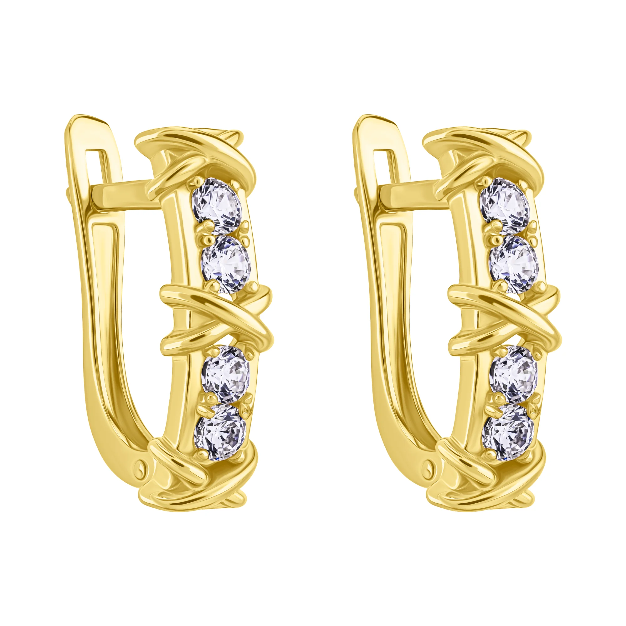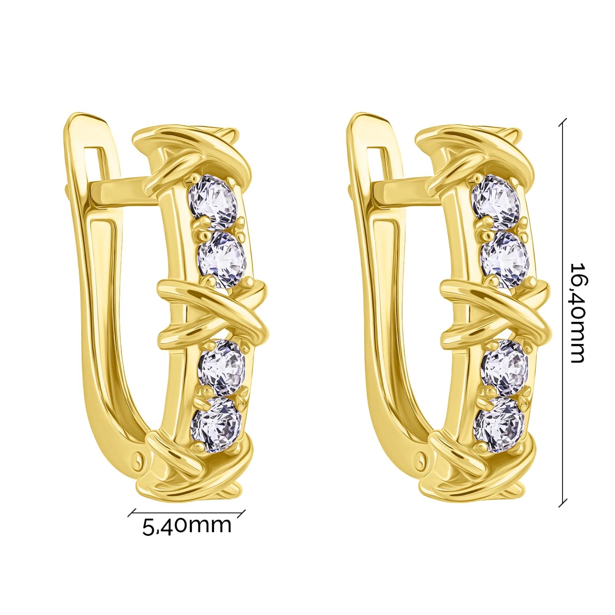 Серьги из красного золота с переплетением и дорожкой из фианитов - 1852340