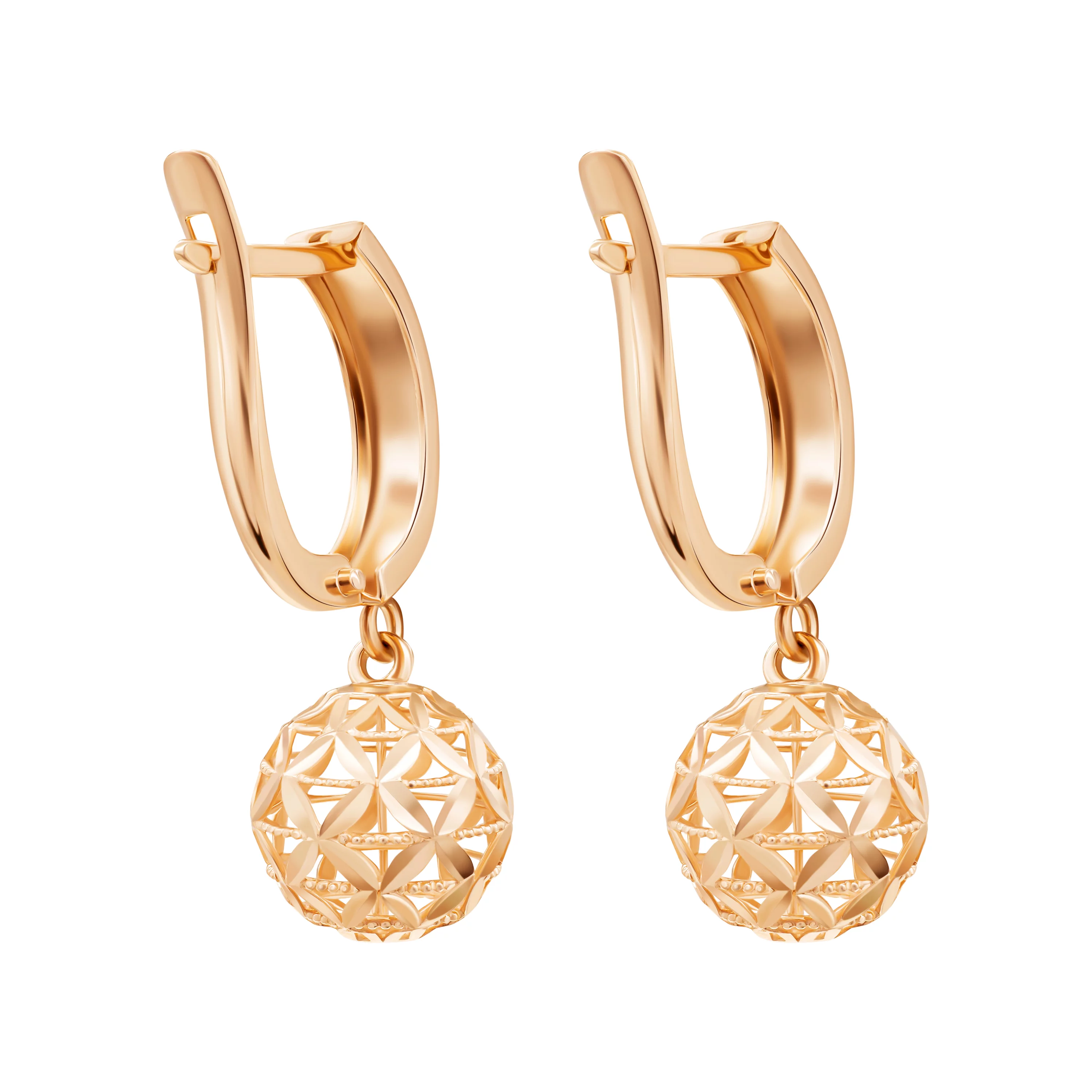 Сережки из красного золота в геометрическом стиле с подвесами - 1745010