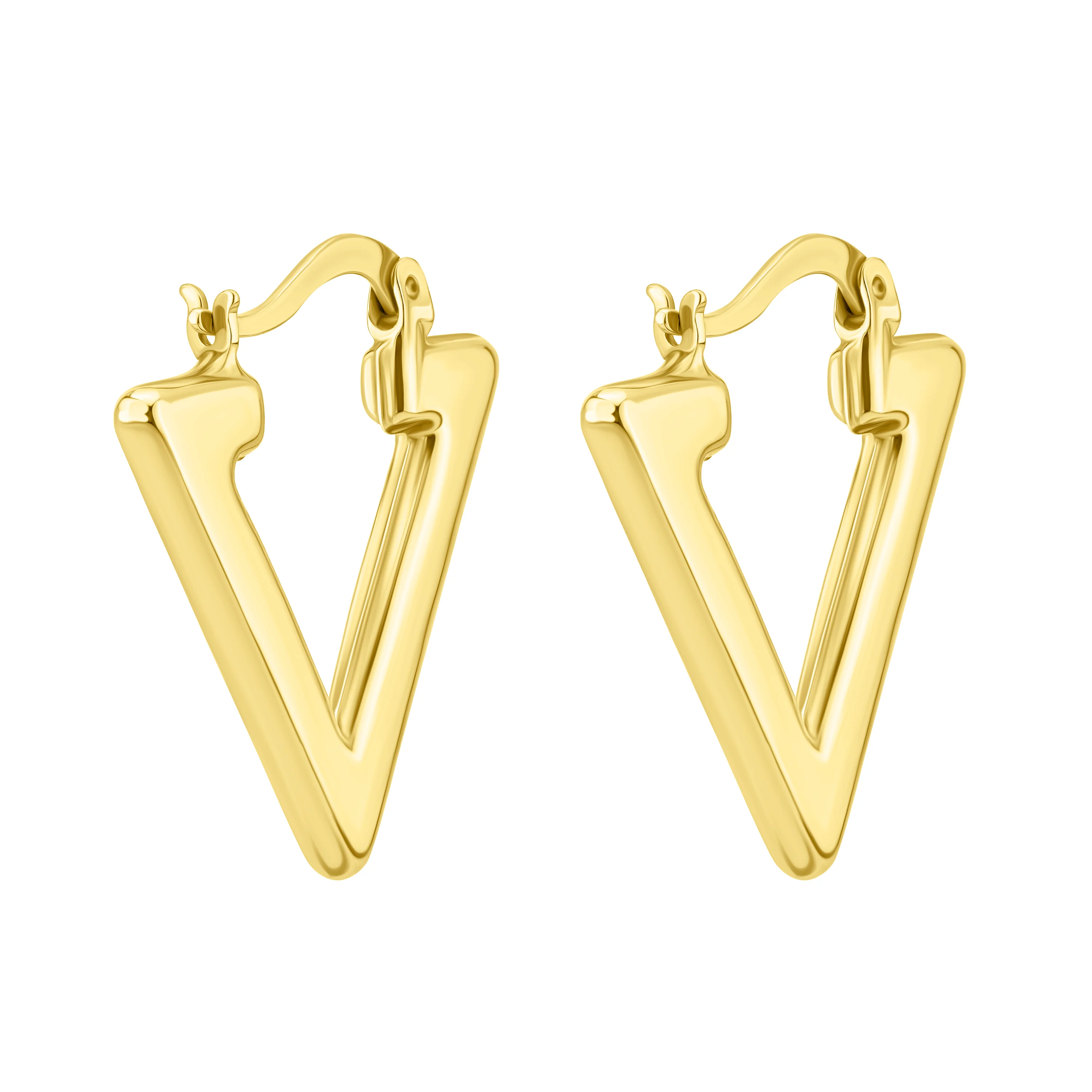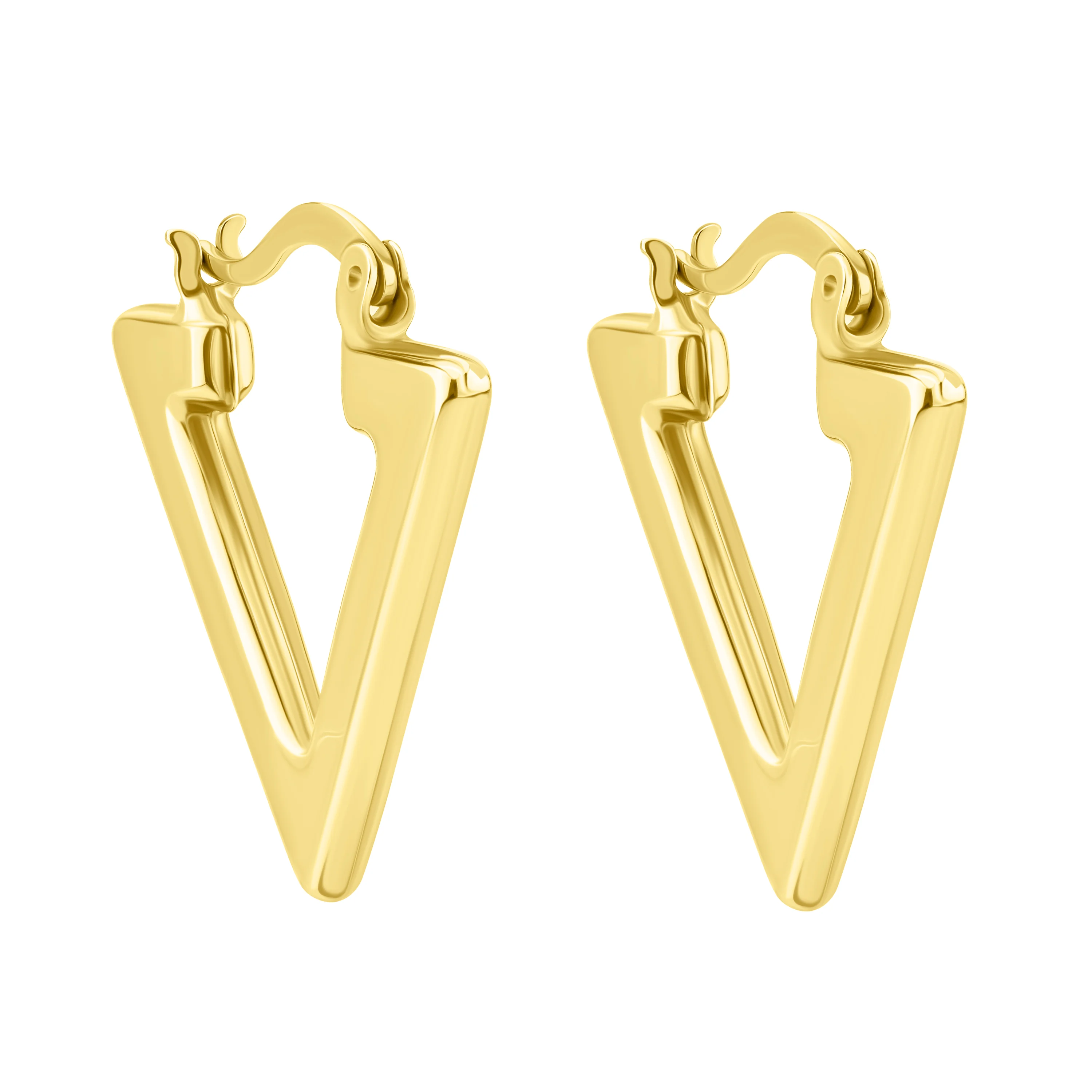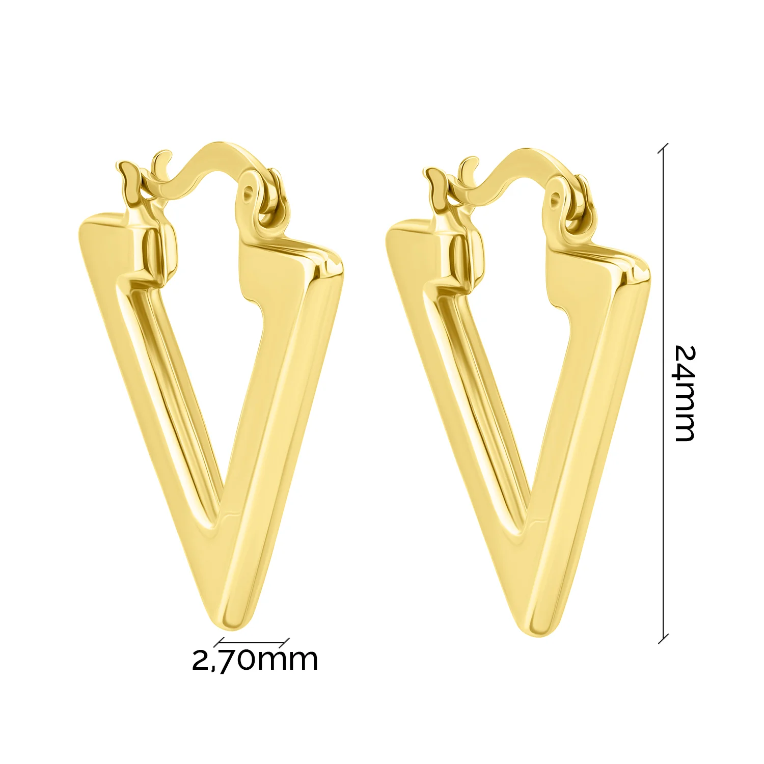 Стильные сережки-гвоздики "Треугольник" из комбинированного золота с алмазной гранью - 1918778