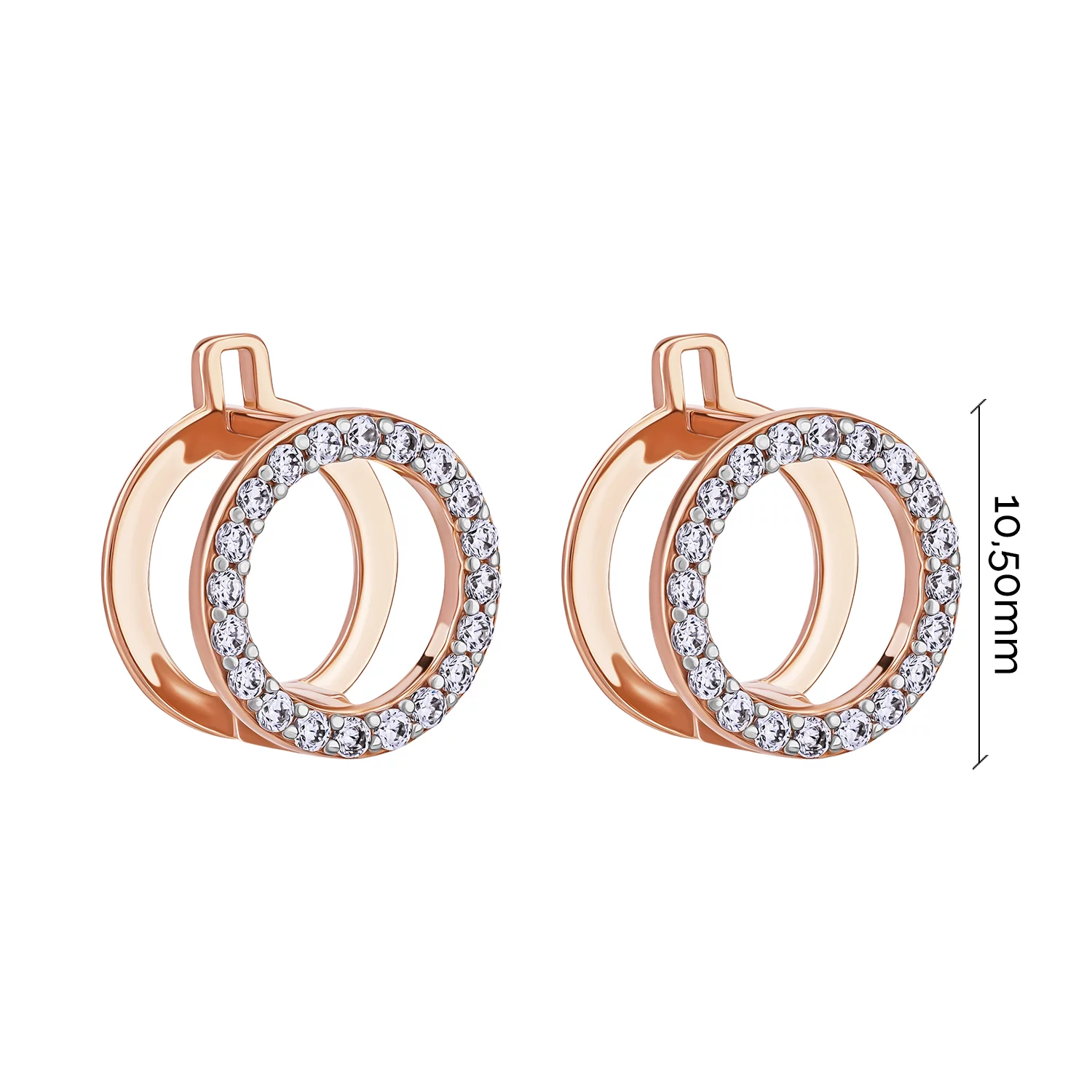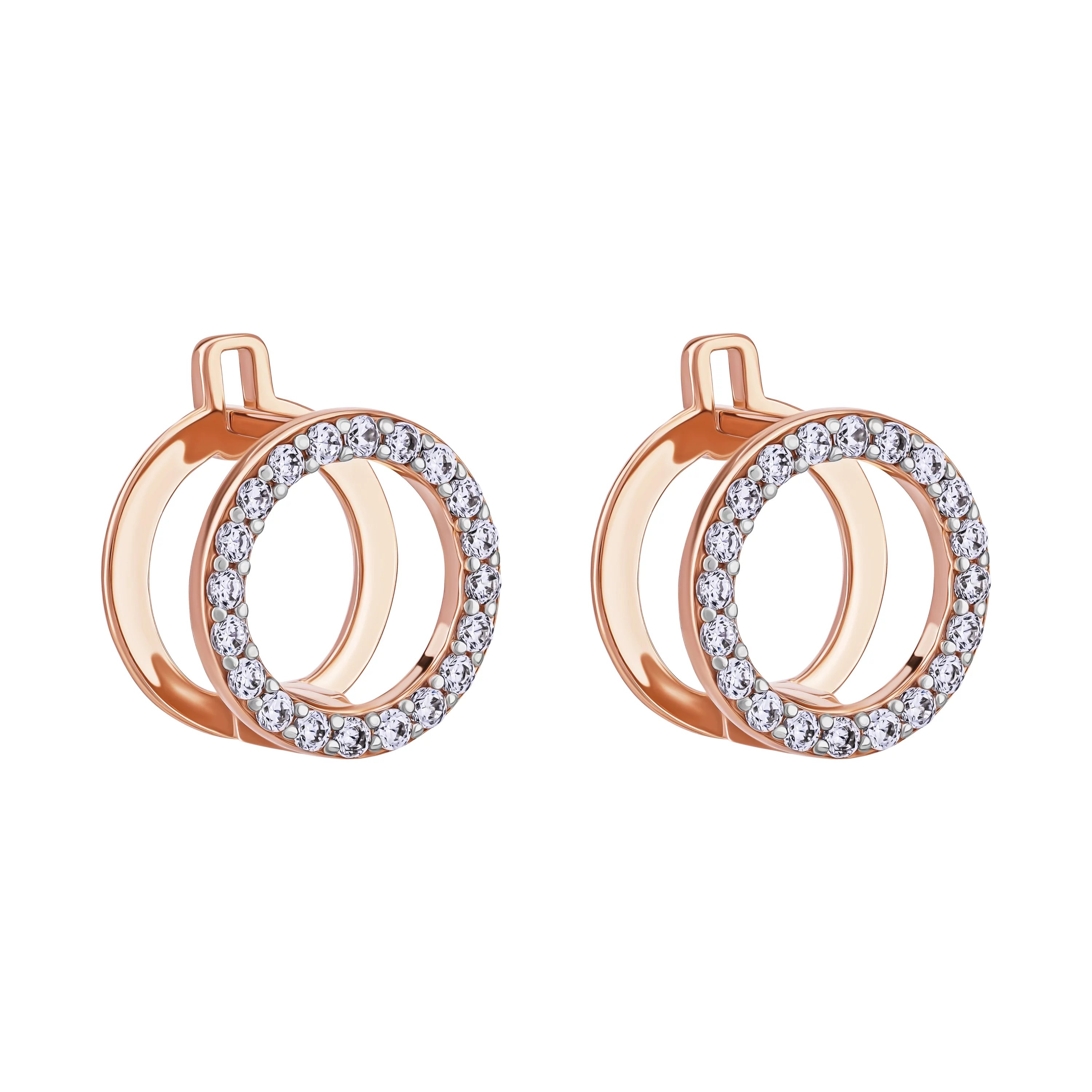 Стильные сережки "Квадраты" из красного золота с дорожкой из фианитов - 1876985