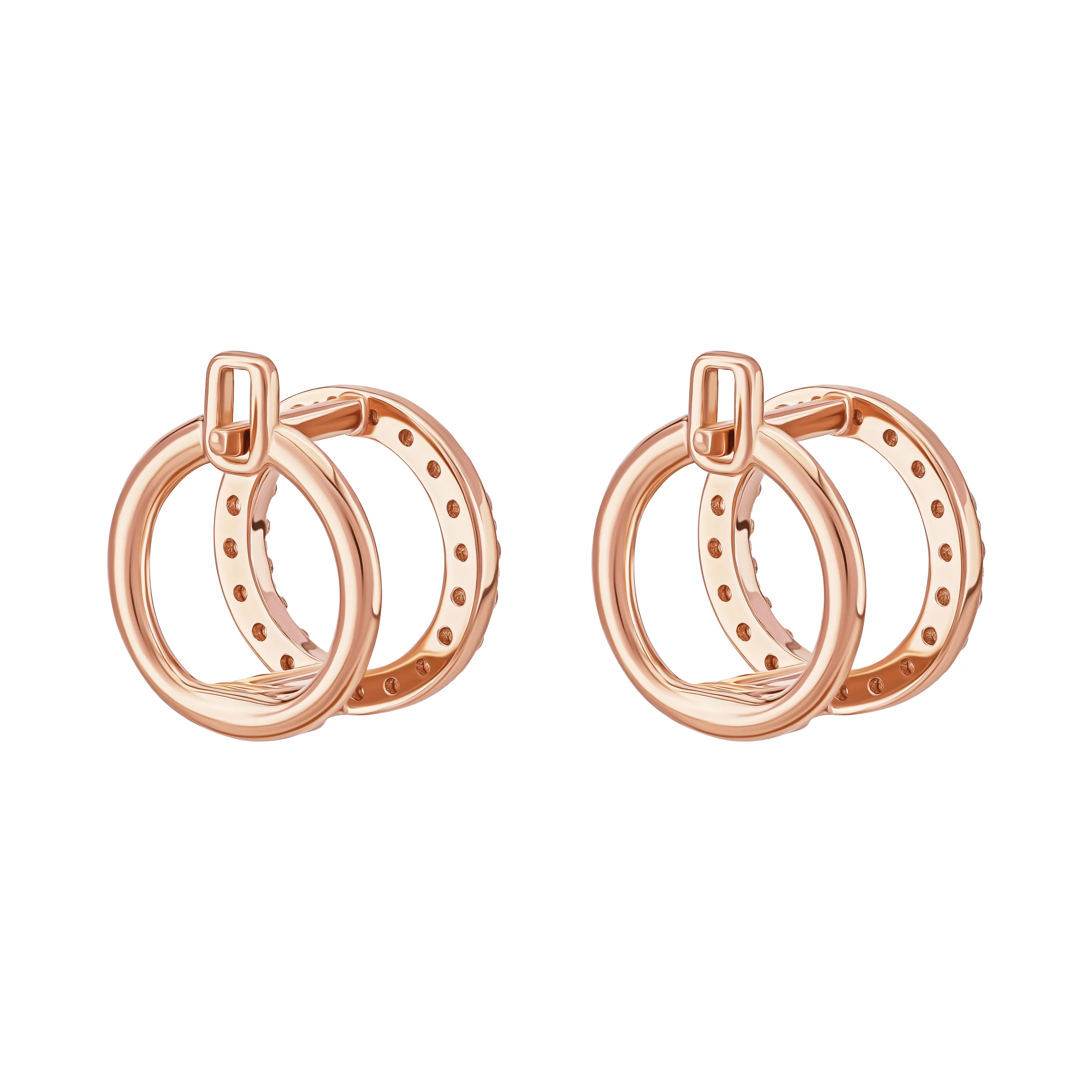 Стильные сережки с подвесами в красном золоте с эмалью и фианитом - 1928138