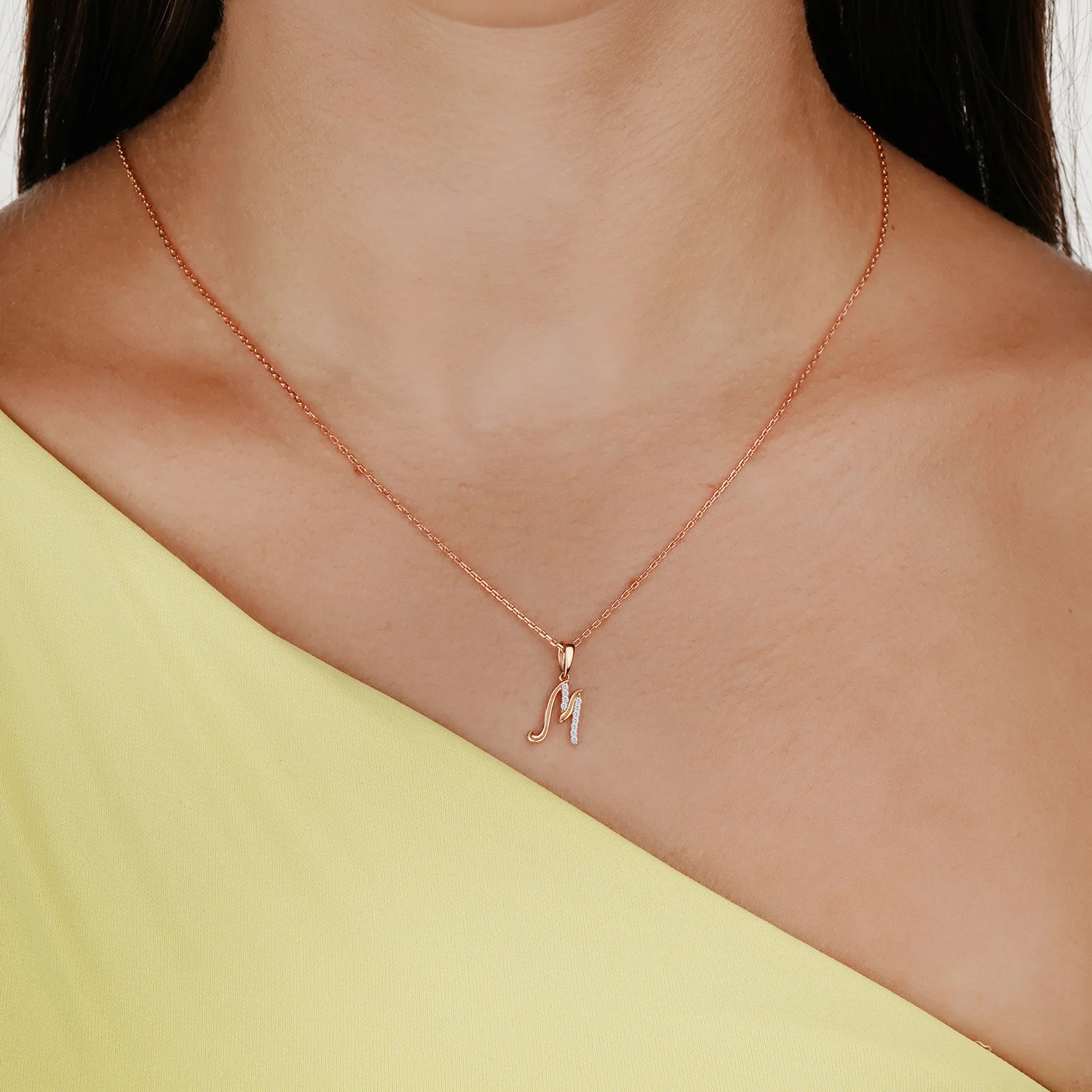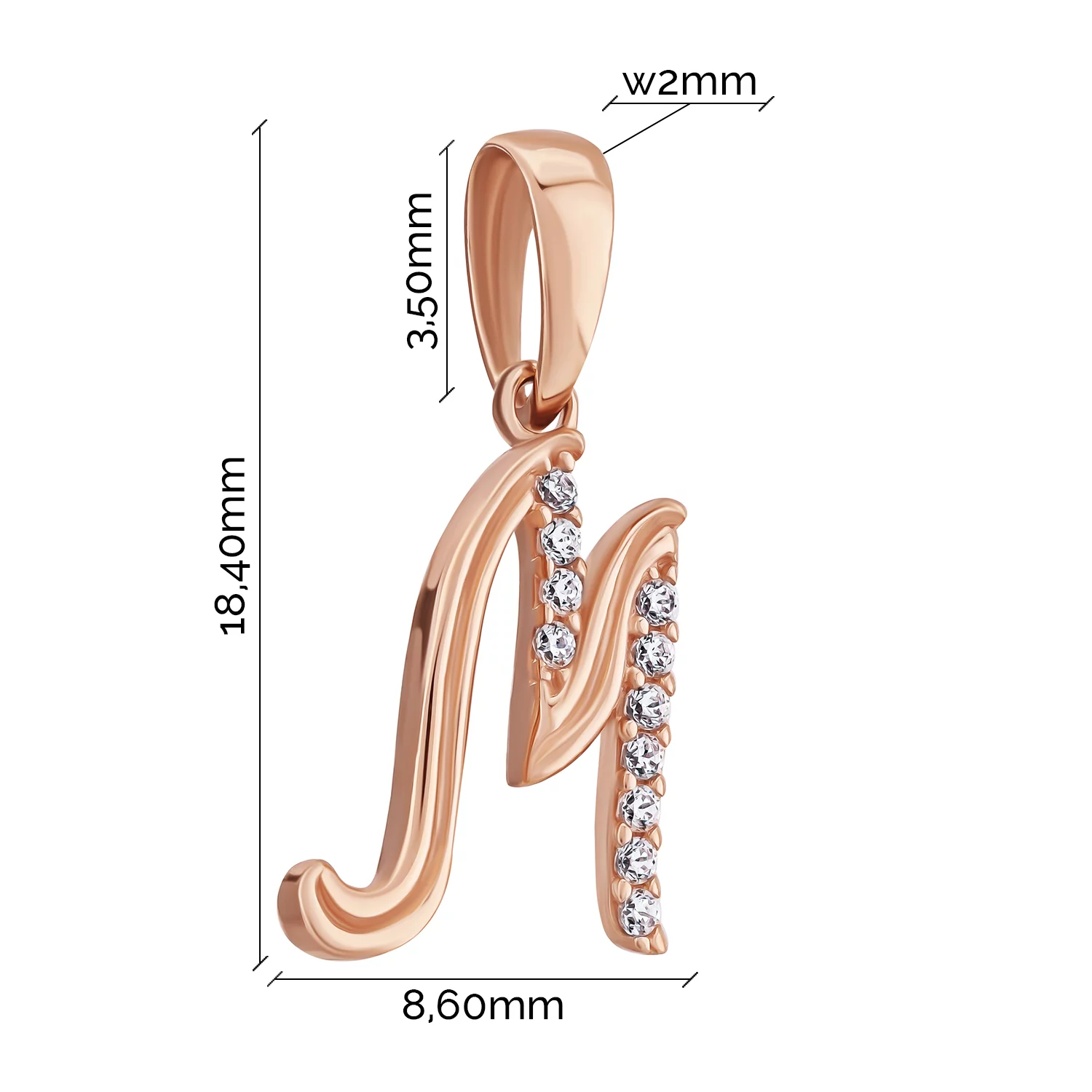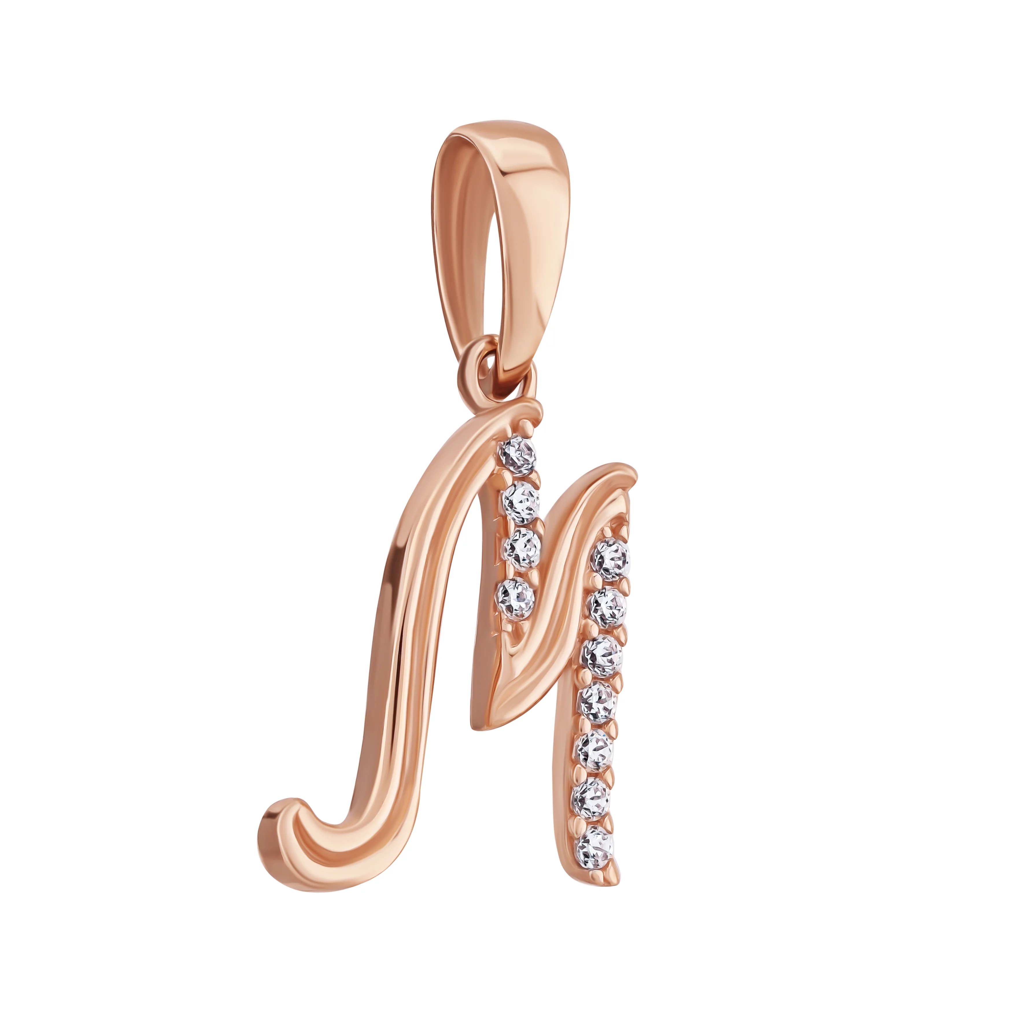 Стильный подвес "Буква М" из красного золота с дорожкой из фианитов - 1916259