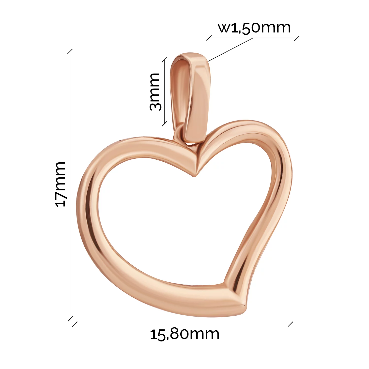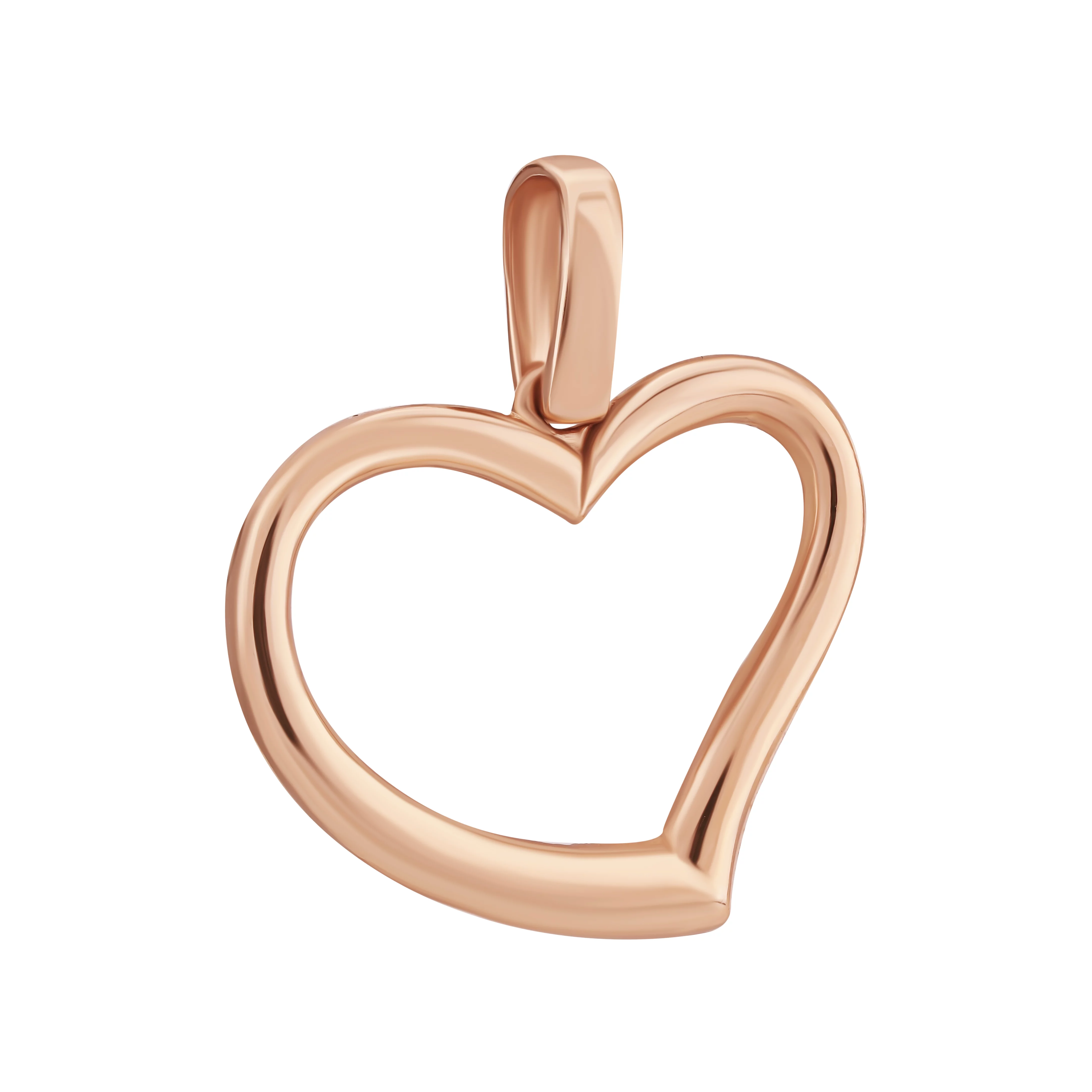 Подвес из красного золота "Сердце" с родированием и алмазной гранью - 1526817