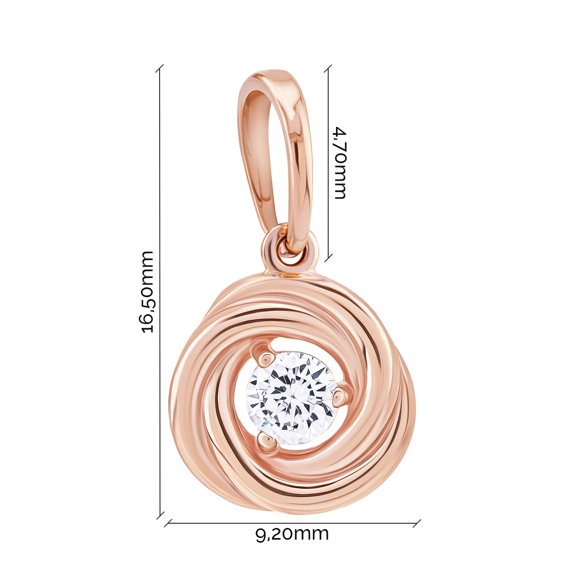 Фигурный подвес из красного золота с фианитом "Волна" - 2086539