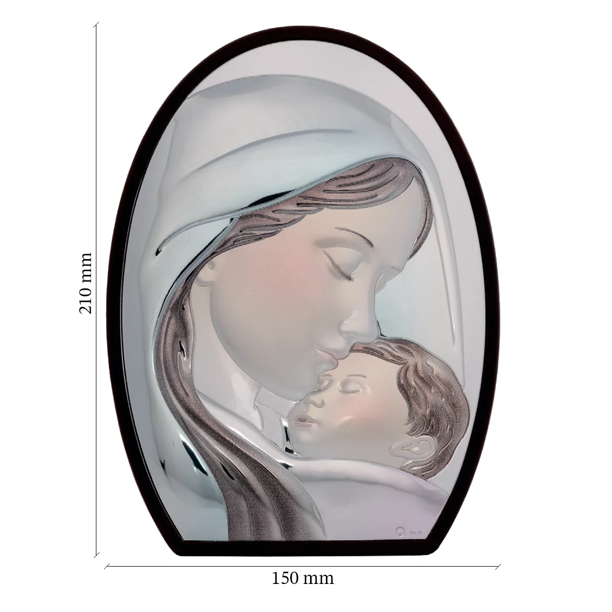 Икона «Богородица с младенцем» символизирует неразрывную связь матери и ребенка. Лик отражает христианские учения о роли Девы Марии в рождении Иисуса Христа. Оберег создан из серебра 925 пробы. Икона привлекает внимание благородным блеском и изяществом. Богородица изображена со смиренным выражением лица, прижимающей к себе младенца. Икона демонстрирует безусловную любовь, которую мать дарит ребенку. Украшение отличается отсутствием вставок. Ювелирное изделие подойдет как дополнение к основному подарку, так и как отдельный презент по случаю крестин или рождения малыша.
