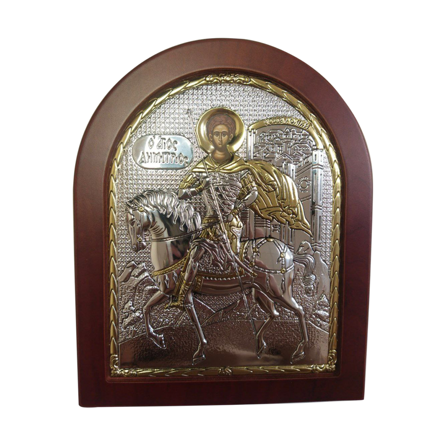Икона из серебра с позолотой и эмалью "Святой Дмитрий" в деревянной рамке - 1789060