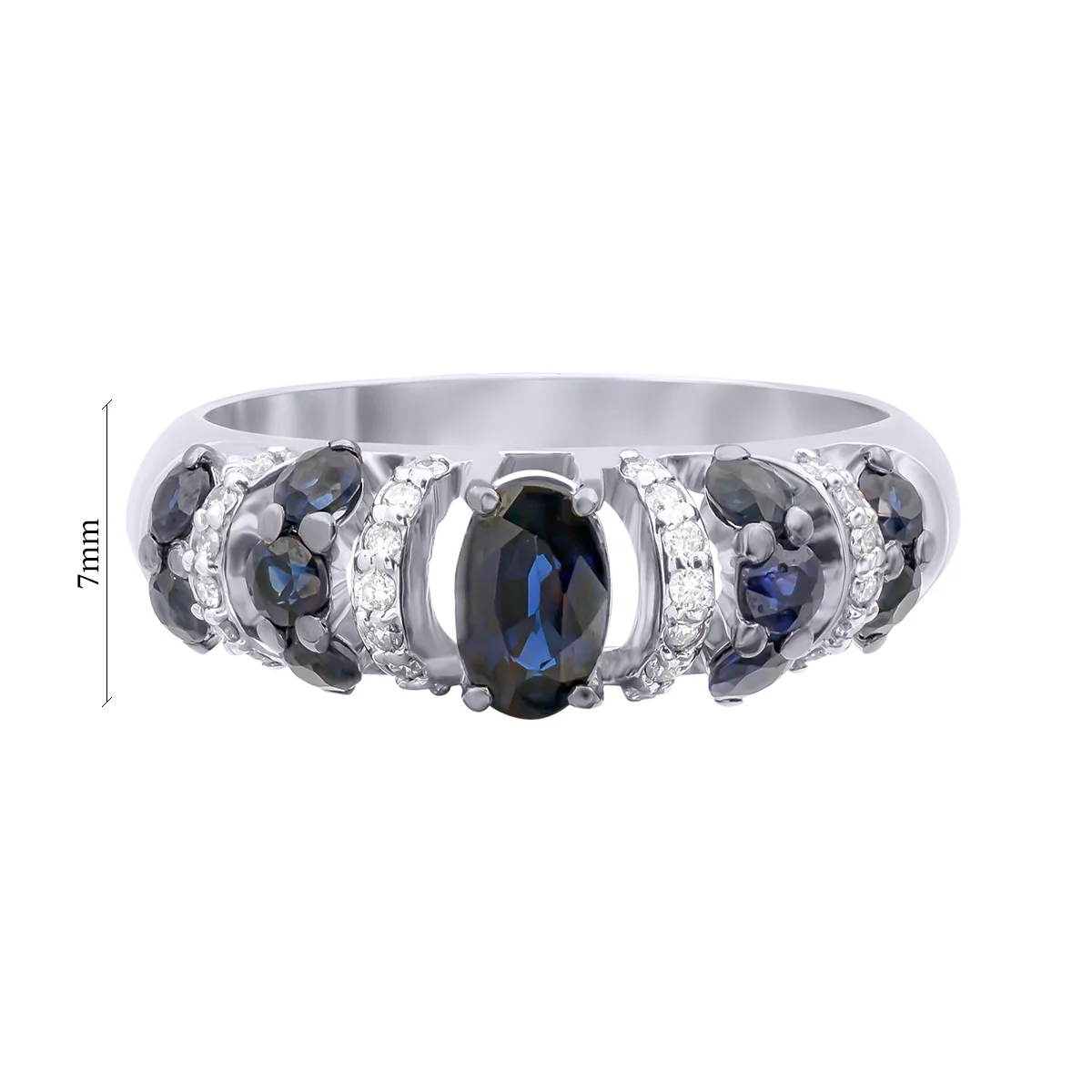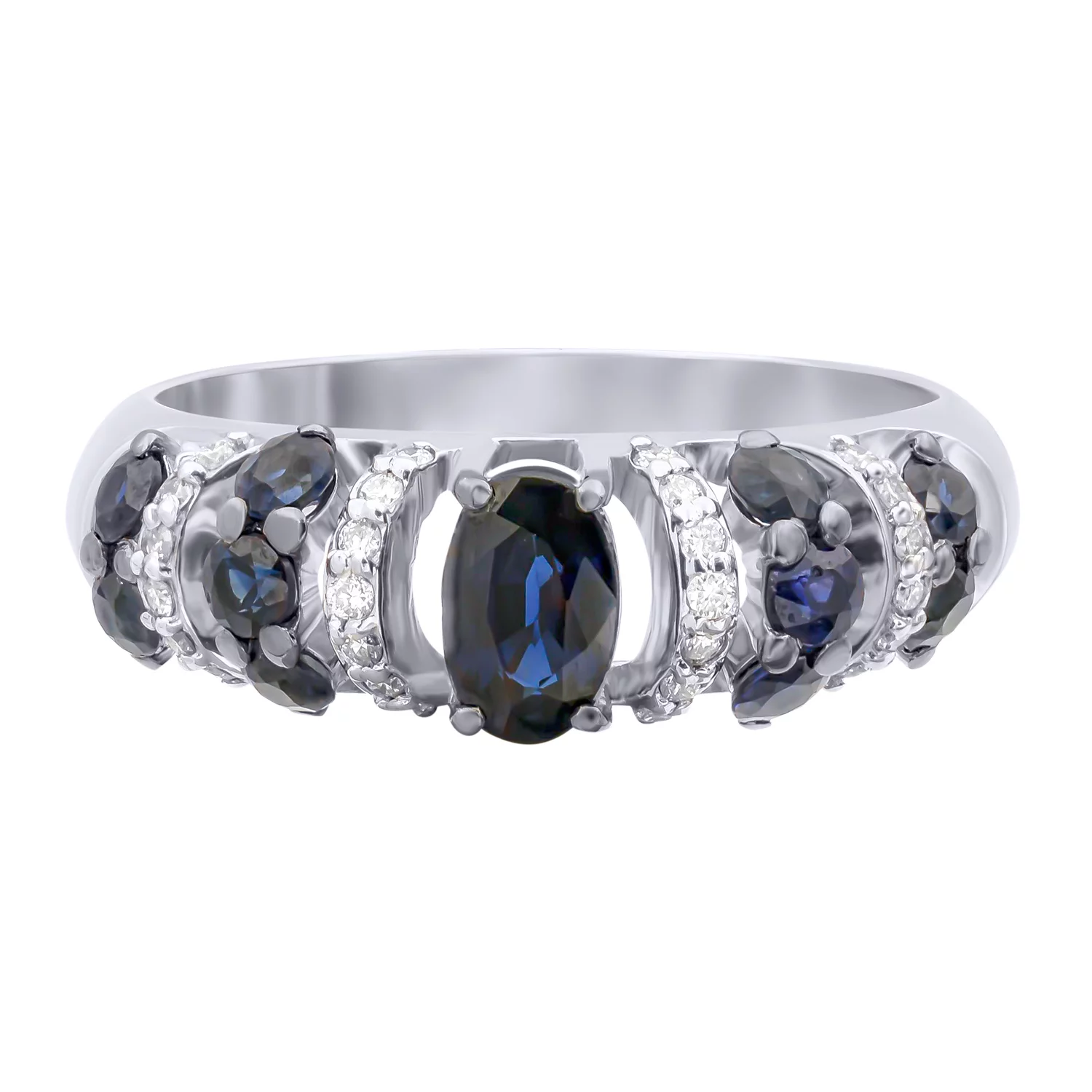 Кольцо для помолвки из белого золота с бриллиантами и сапфиром - 1919296