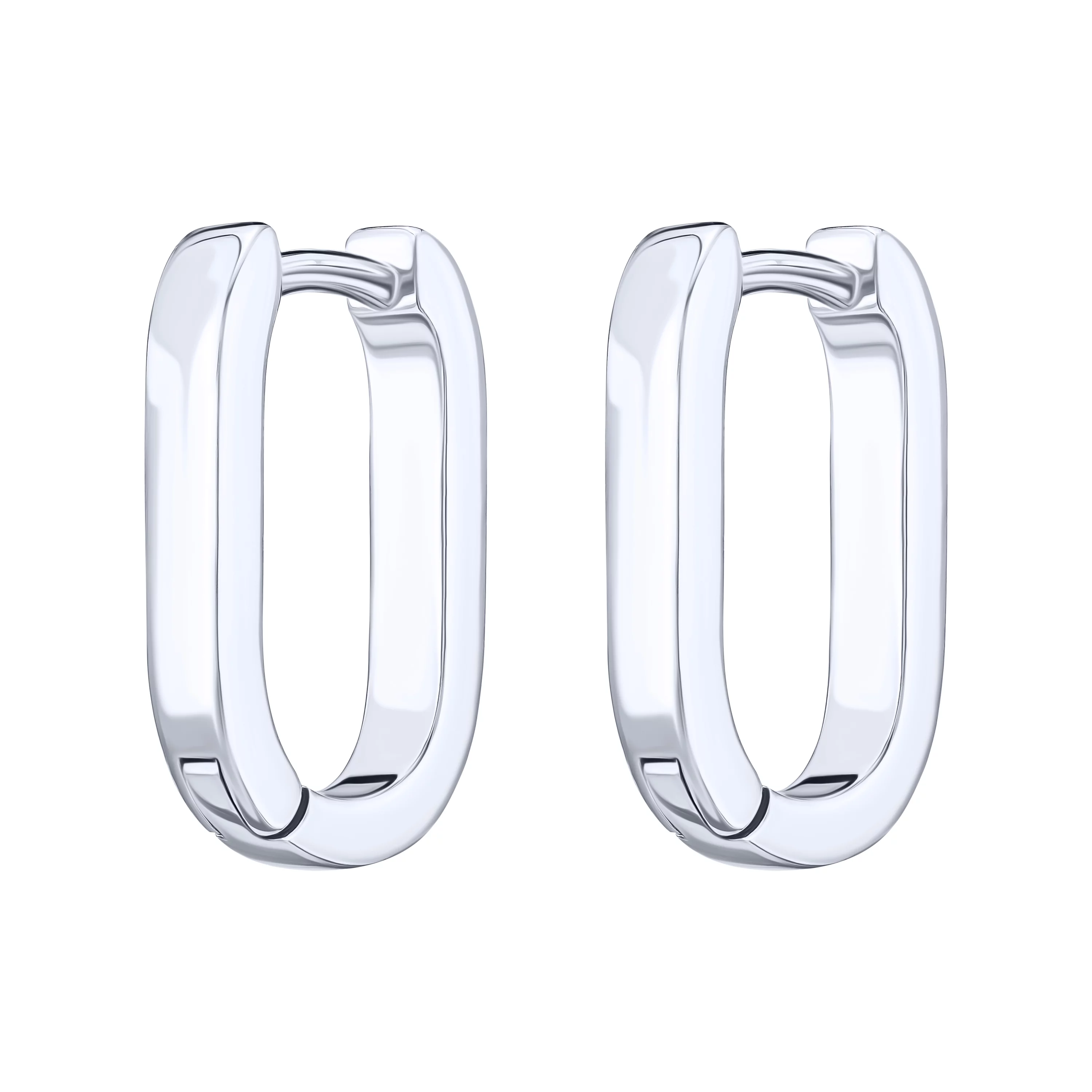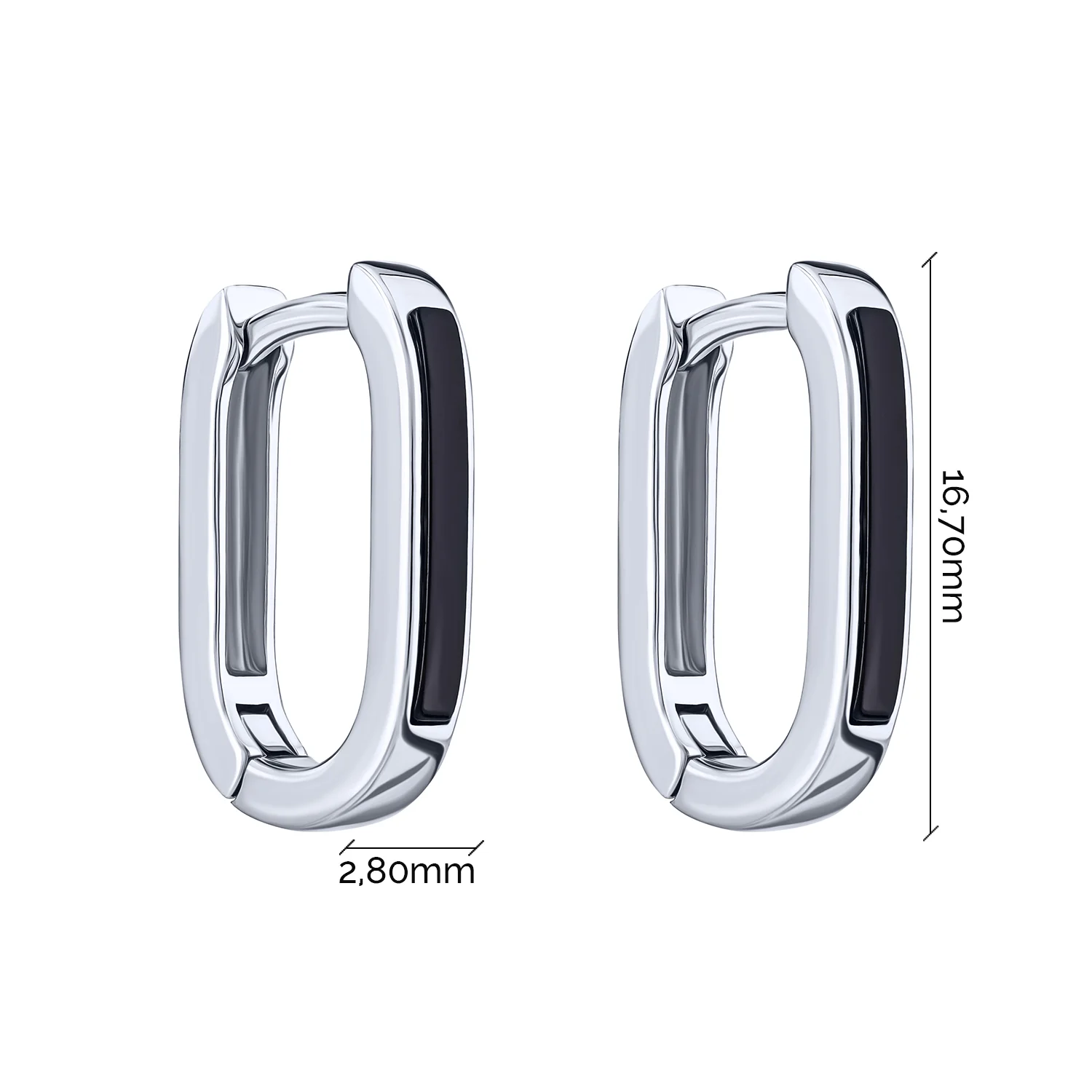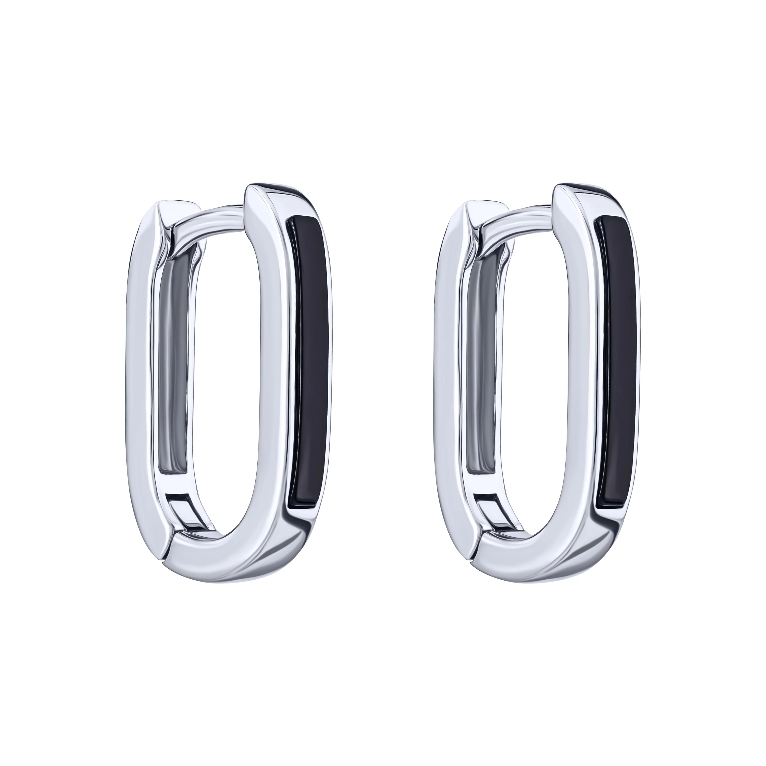 Классические серебряные сережки-кольца с эмалью - 1960999