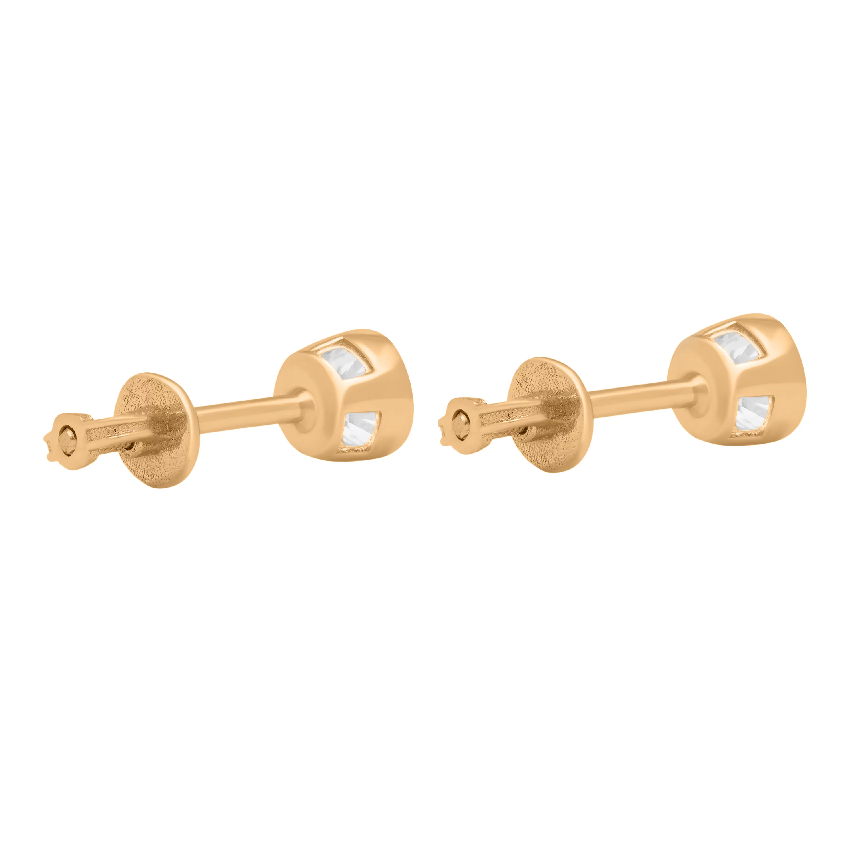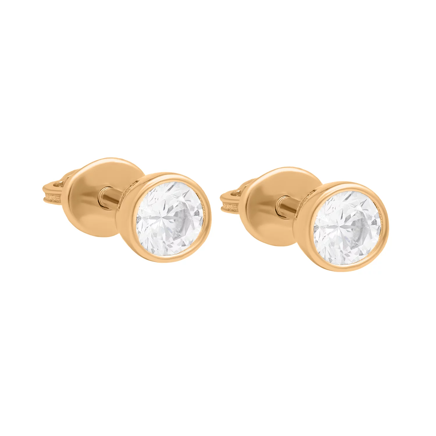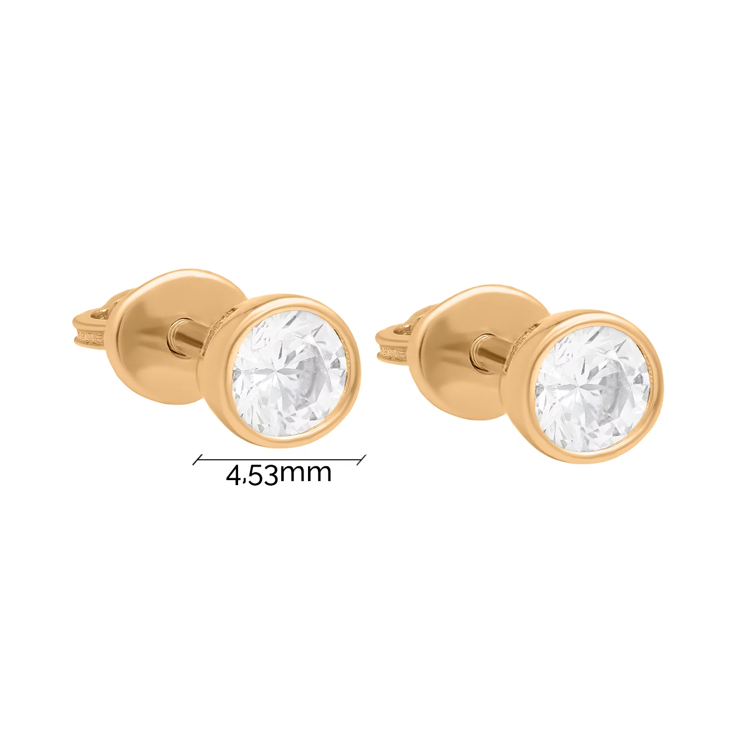 Сережки-гвоздики с жемчужиной и фианитами из красного золота - 1617638