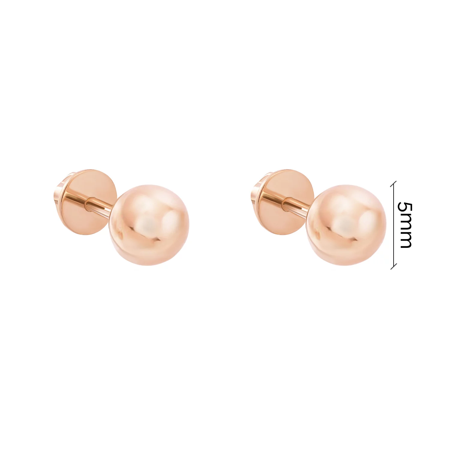 Классические сережки-гвоздики "Шары" из красного золота - 1923394