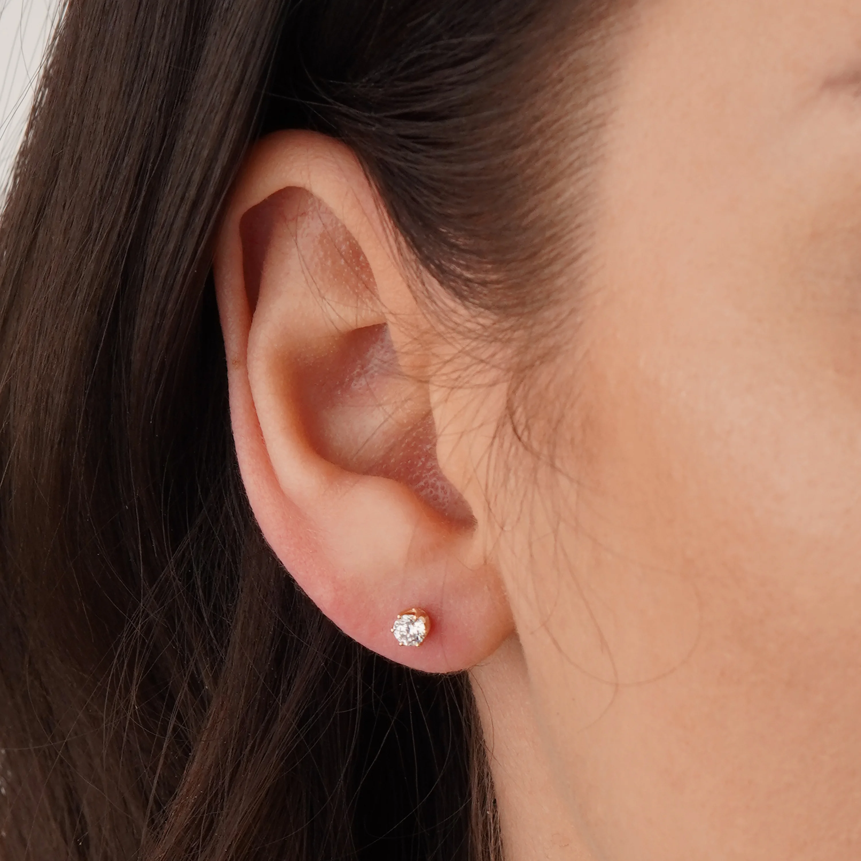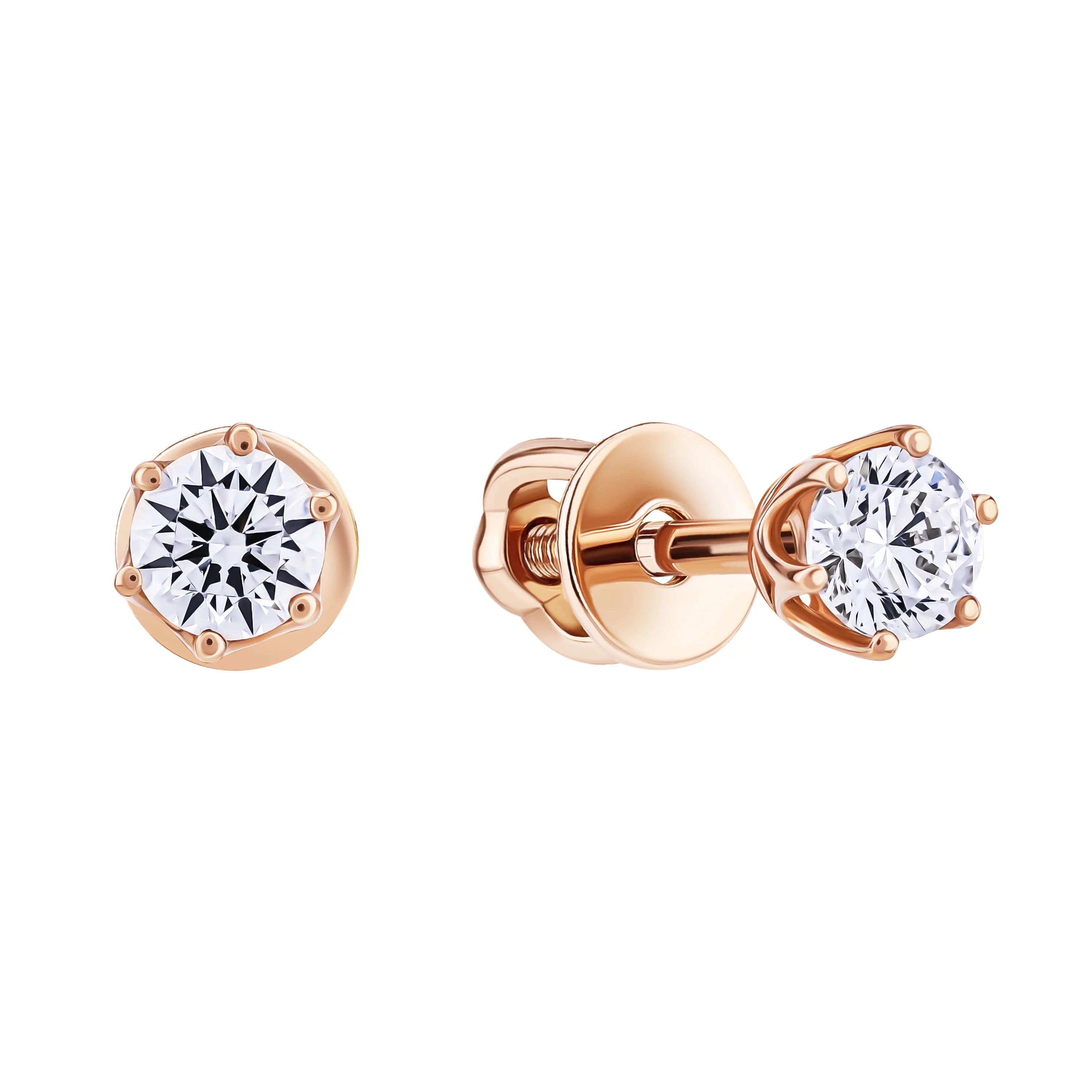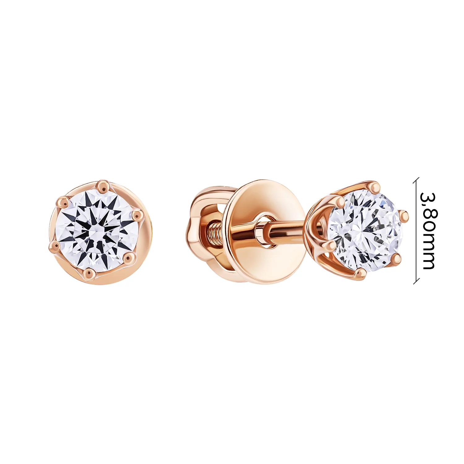 Сережки-гвоздики с жемчужиной и фианитами из красного золота - 1617638
