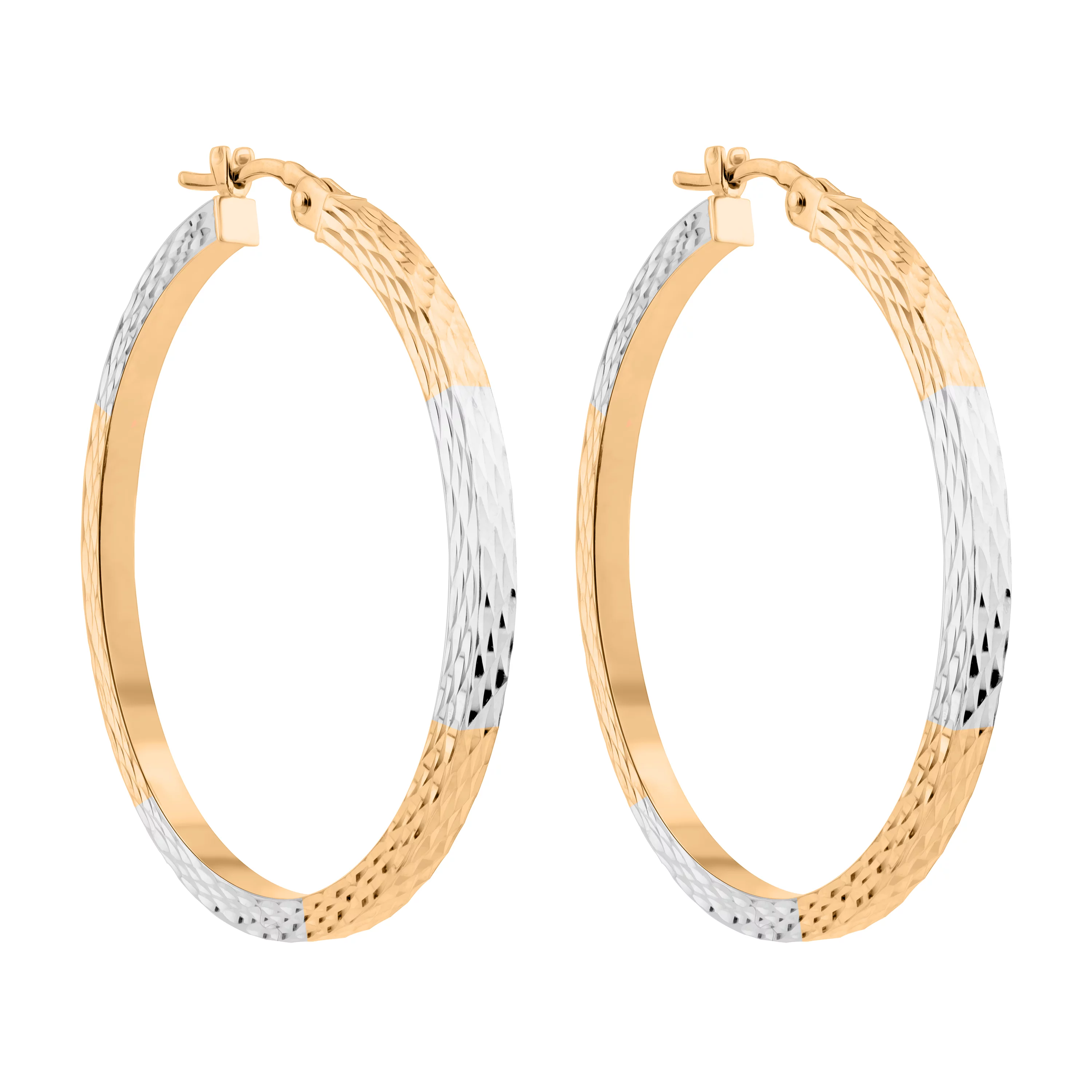 Элегантные сережки-кольца из желтого золота с алмазной гранью - 1918857