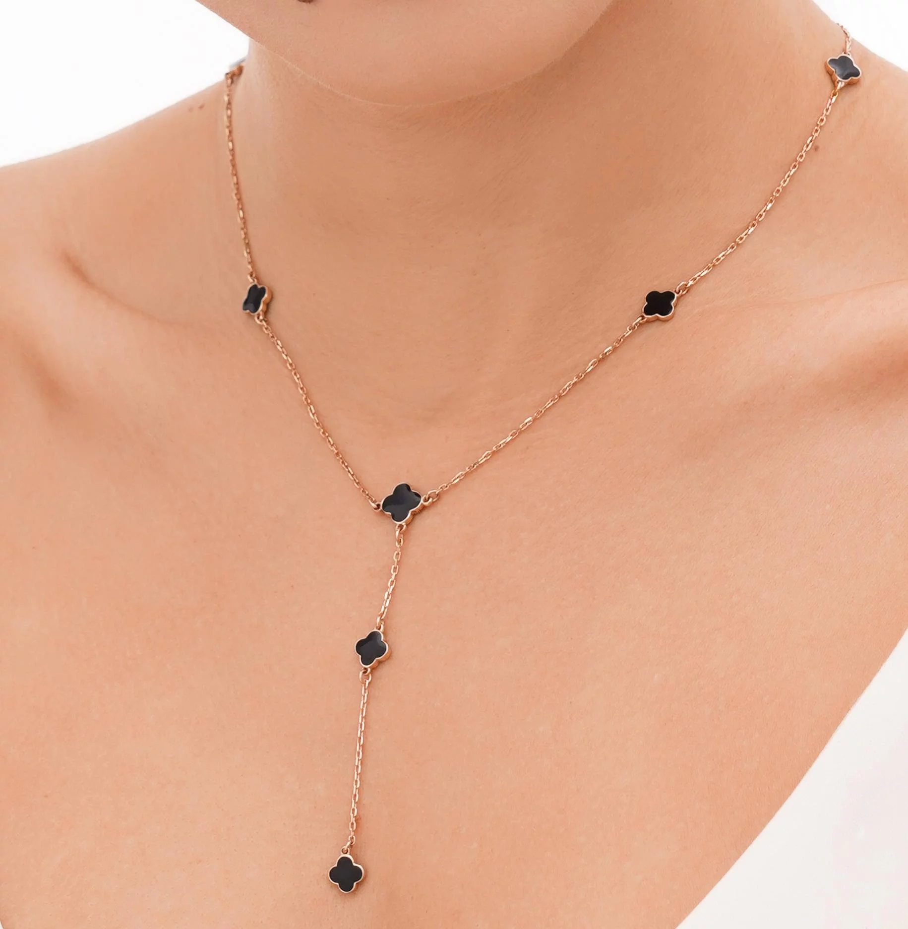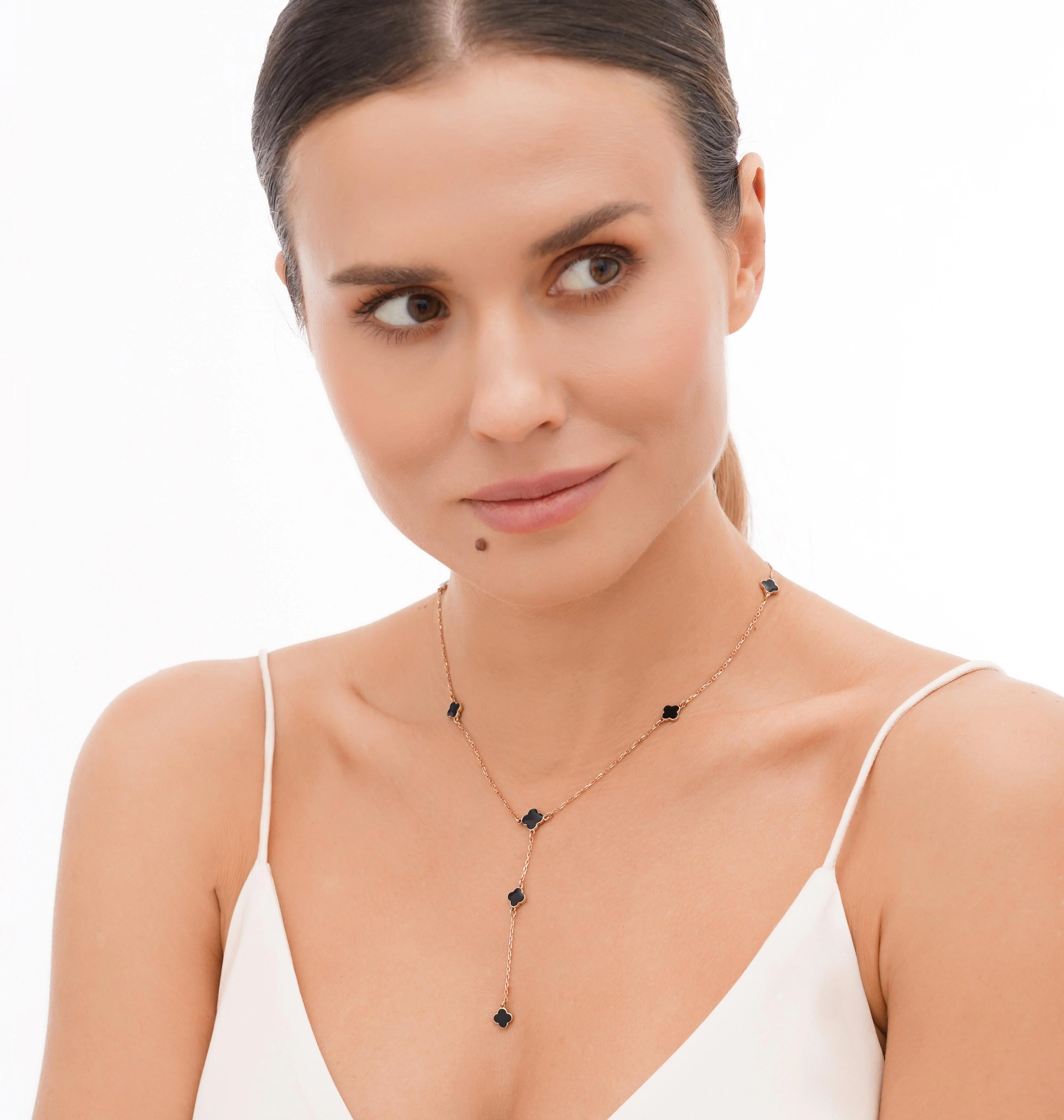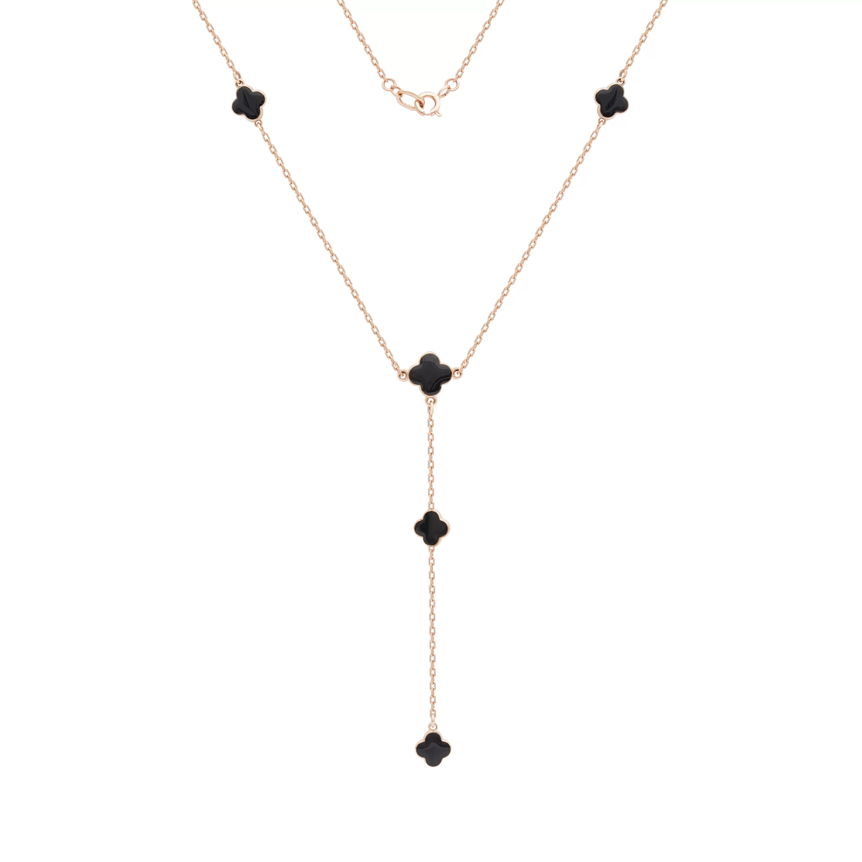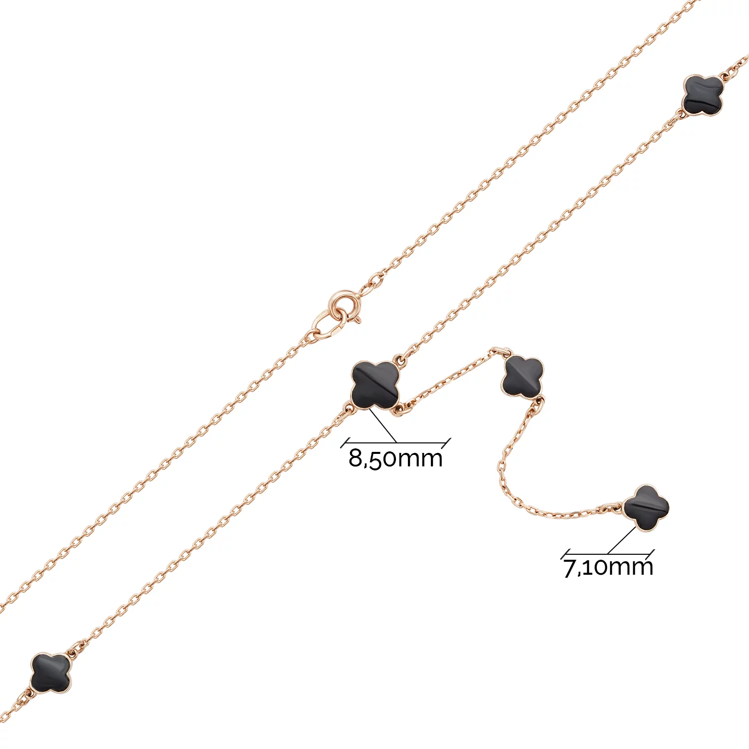 Колье из красного золота с подвесами из оникса "Клевер" в якорном плетении - 1744970