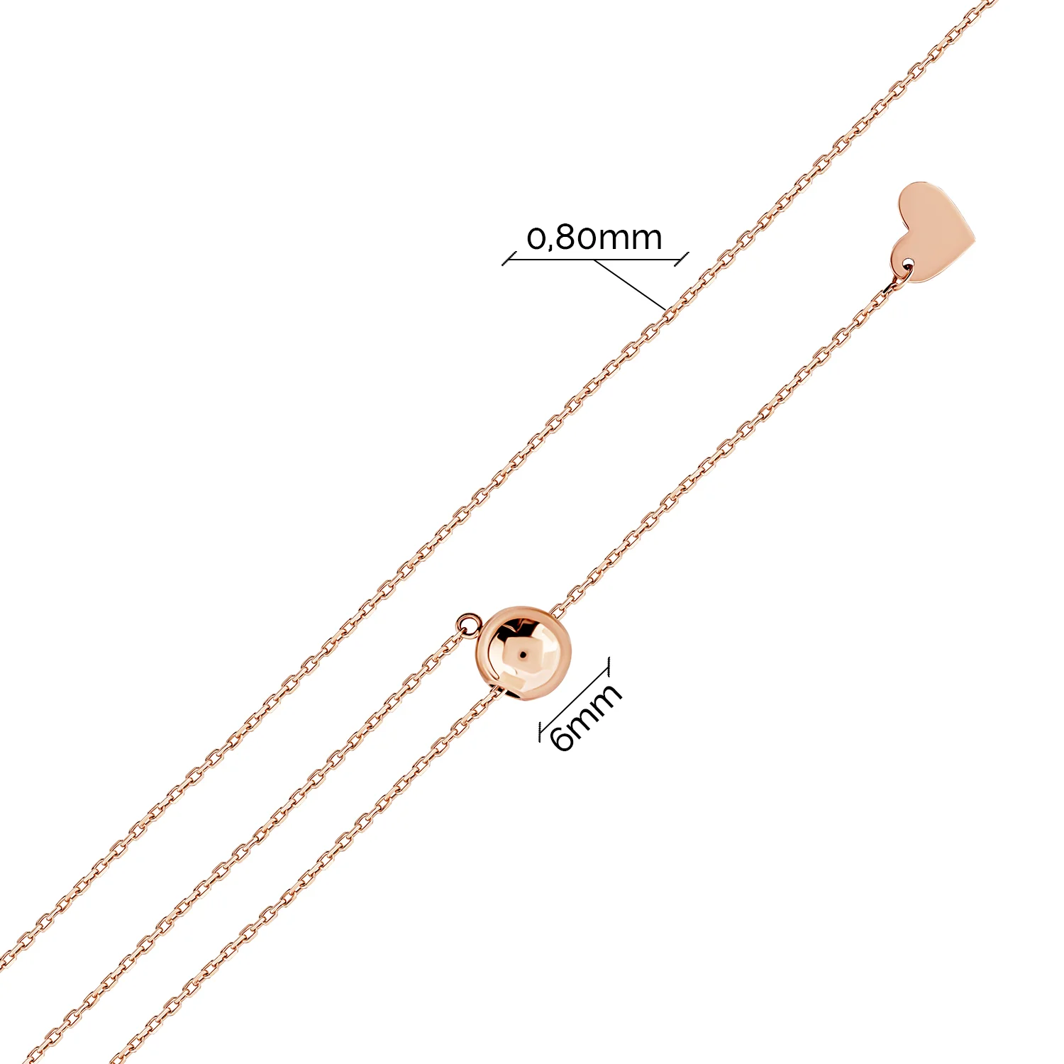 Колье-галстук из красного золота "Шарик" плетение якорь - 1986729