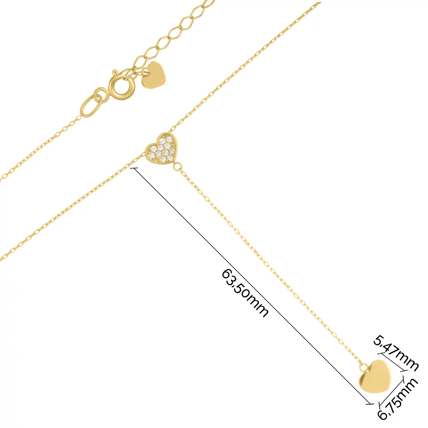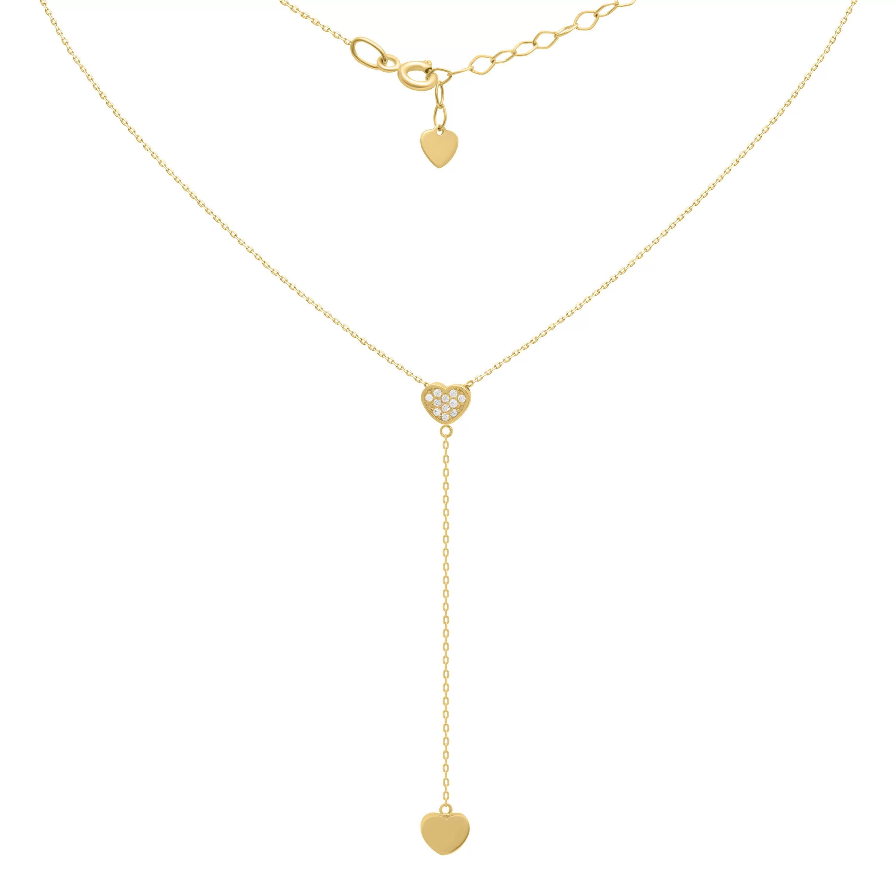 Двойное колье из лимонного золота с подвесами "Два сердца" с фианитами плетение якорь - 1824372