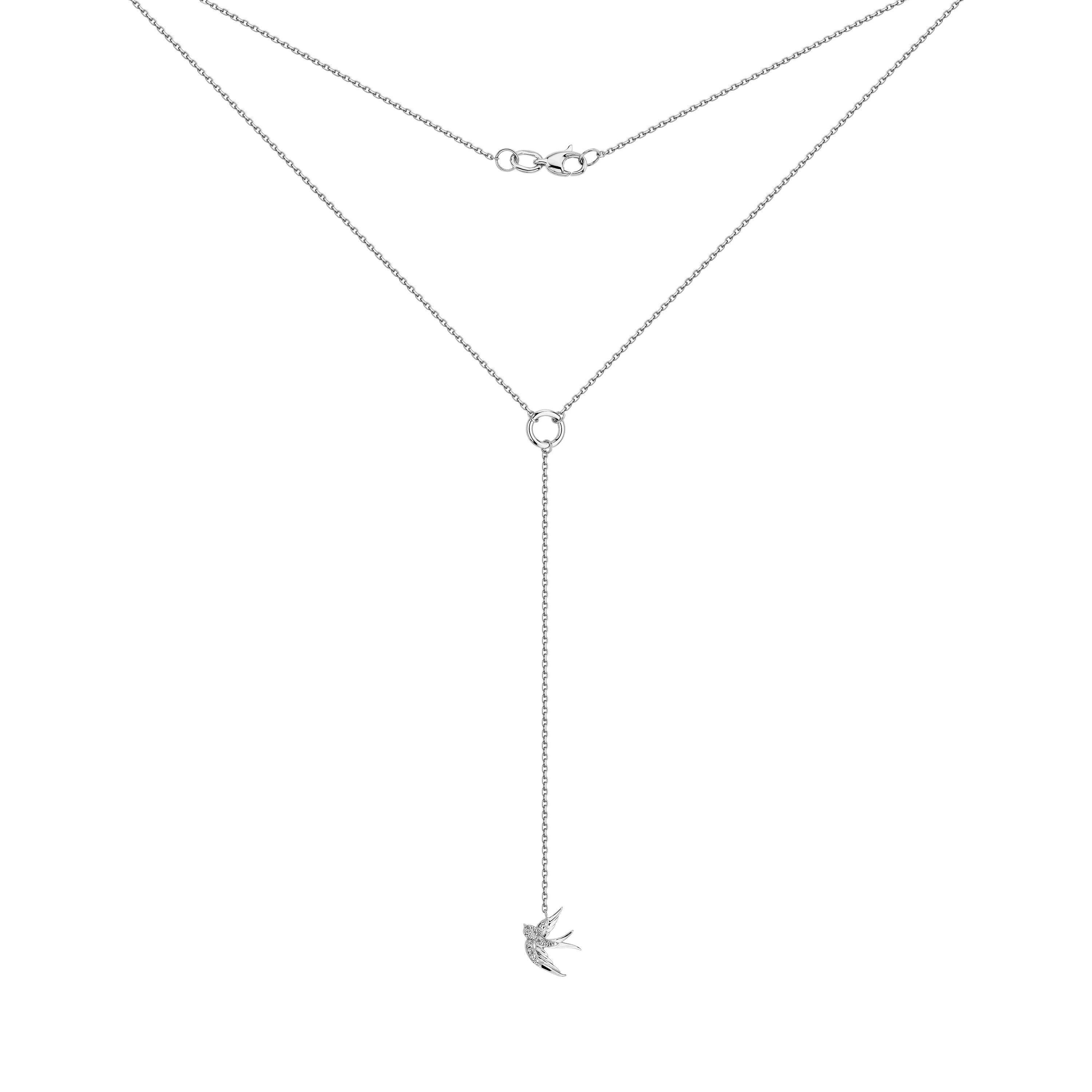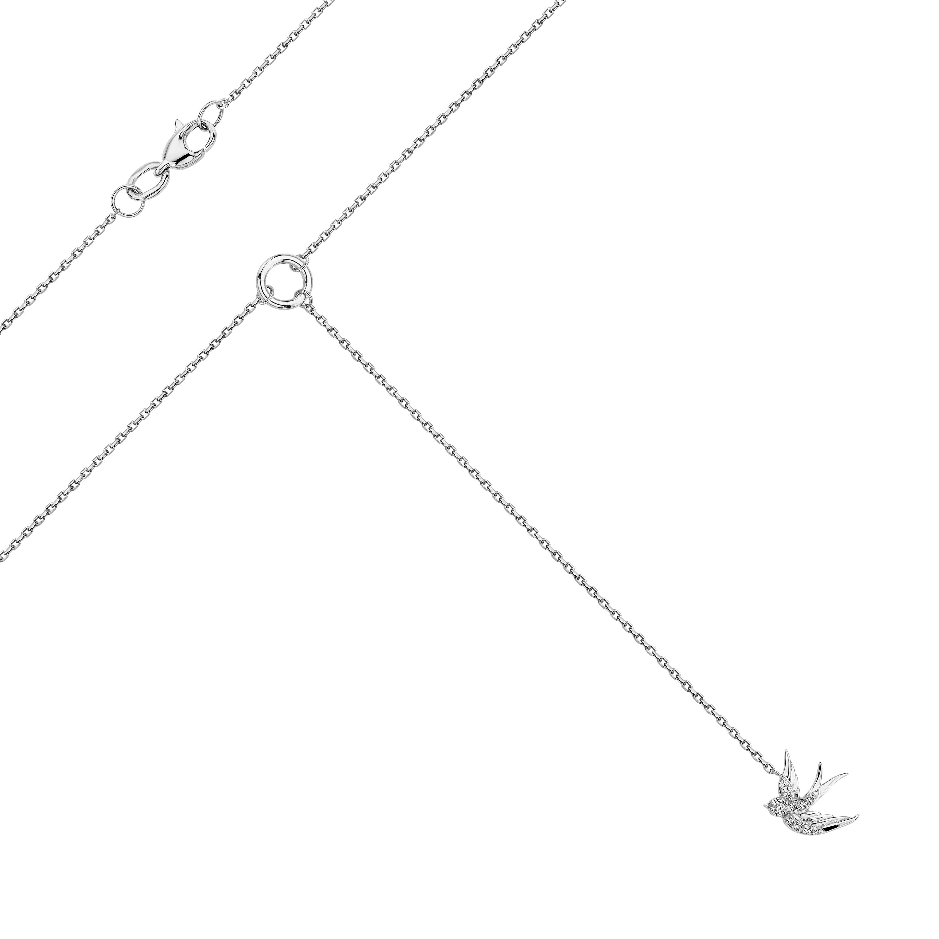Цепочка с подвеской из белого золота "Сердечки" с "танцующим" бриллиантом плетение якорное - 1531367