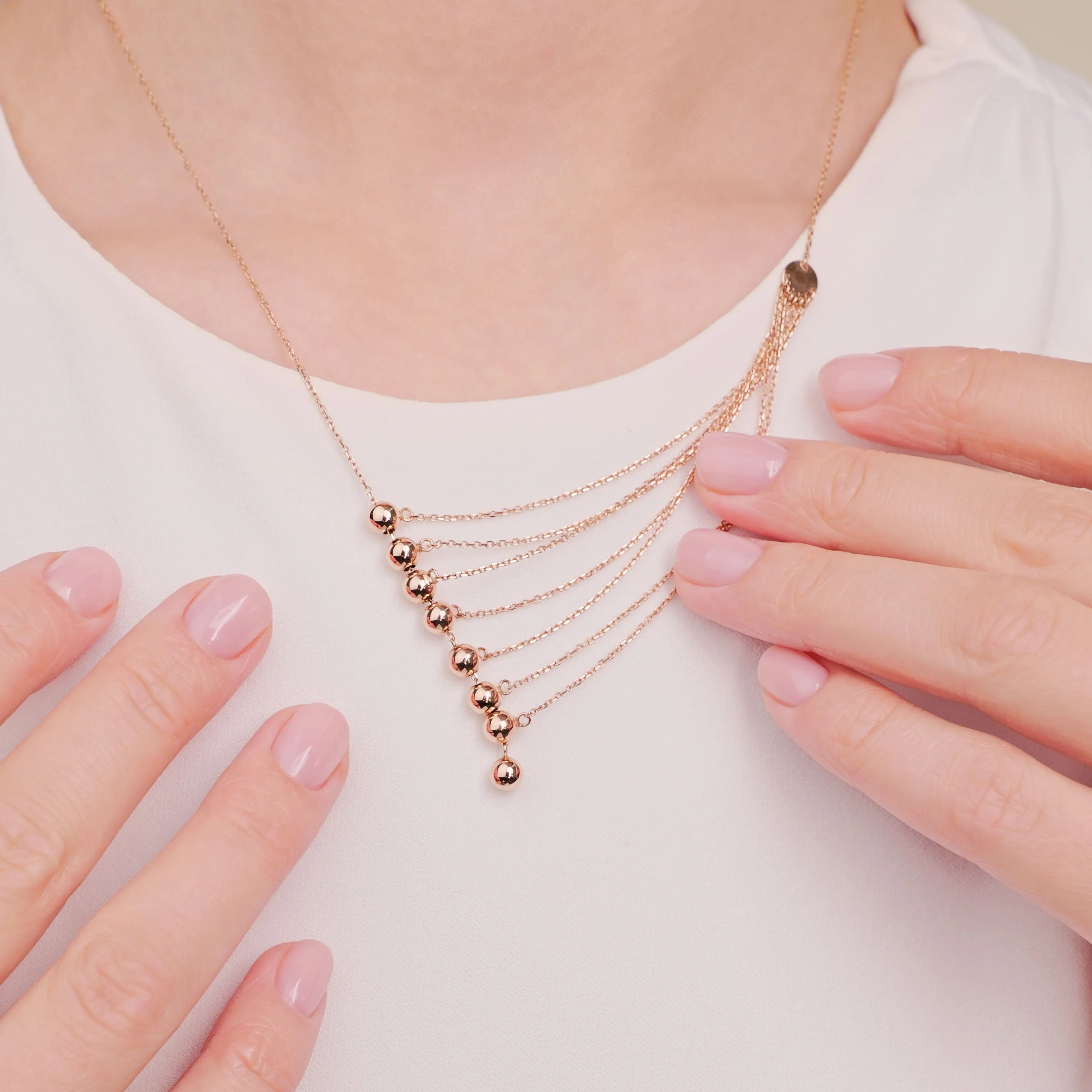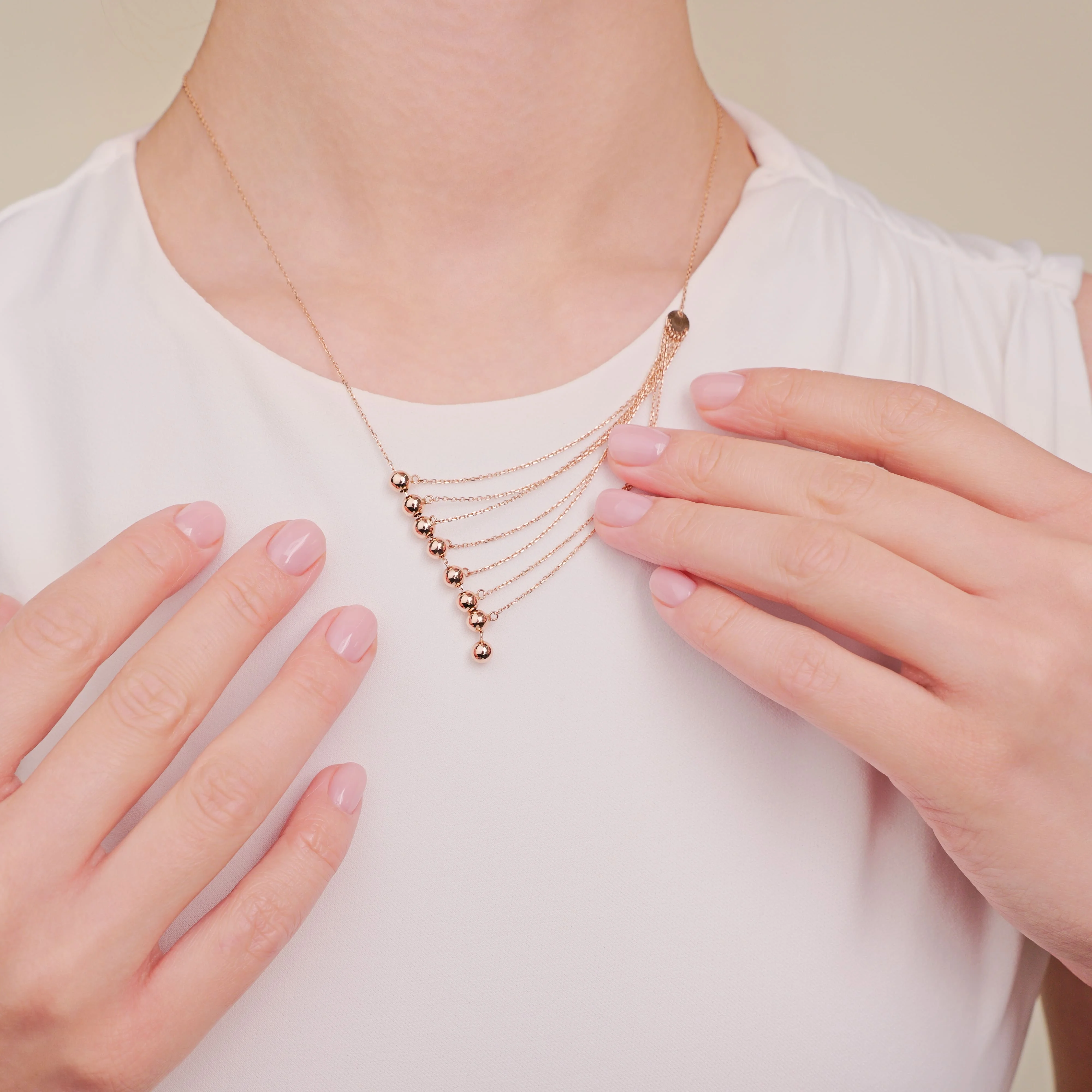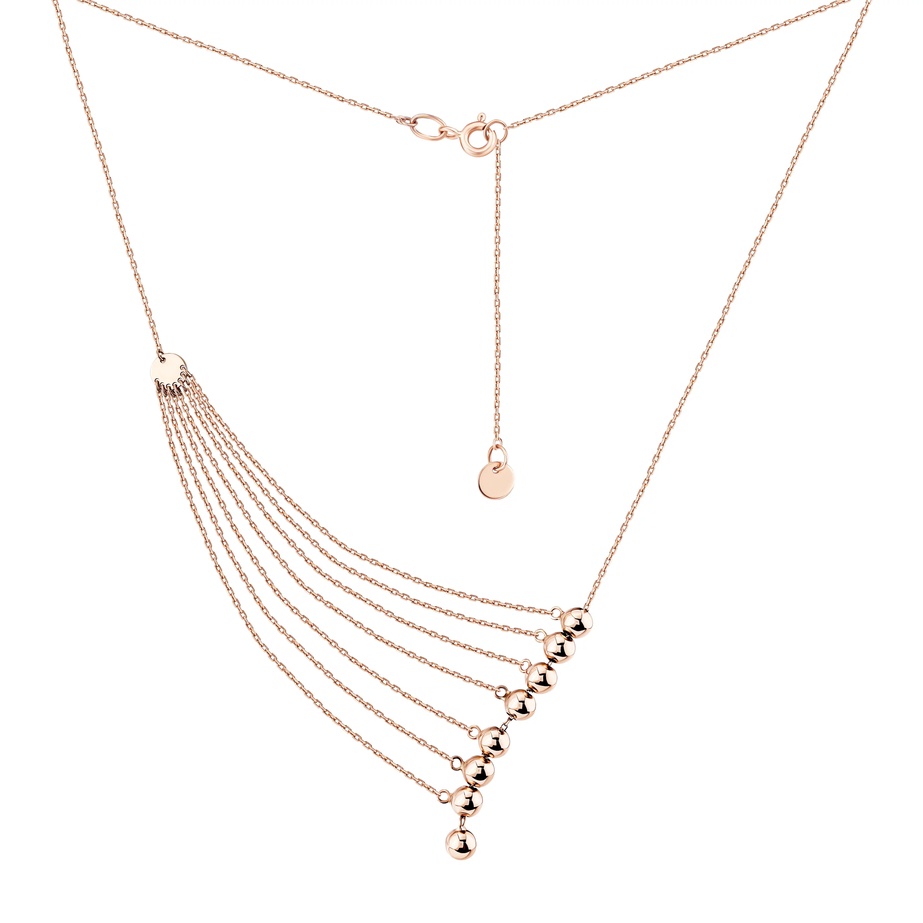 Элегантное колье-галстук из красного золота "Шары" с якорным плетением - 1922295