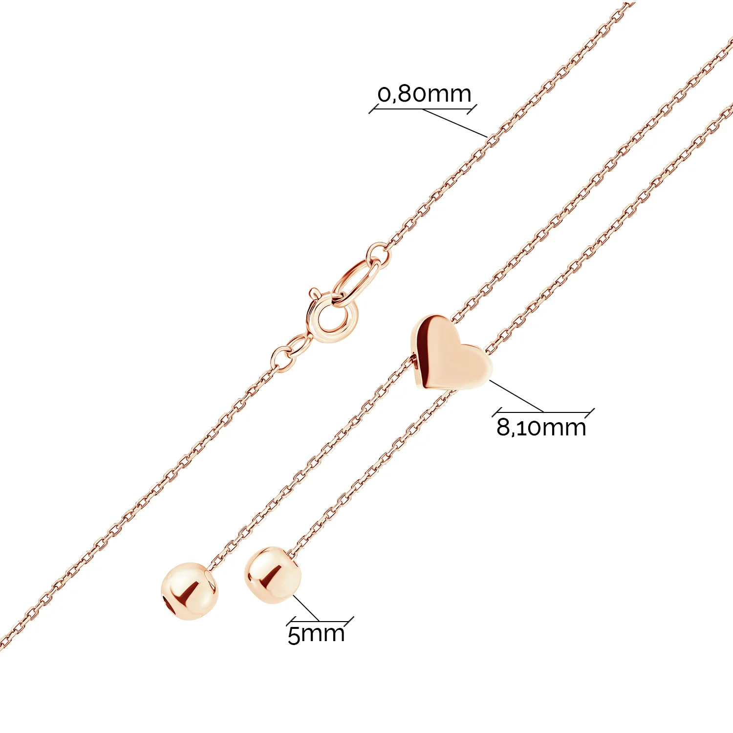 Колье-галстук в красном золоте "Сердце" плетение якорь - 2178168