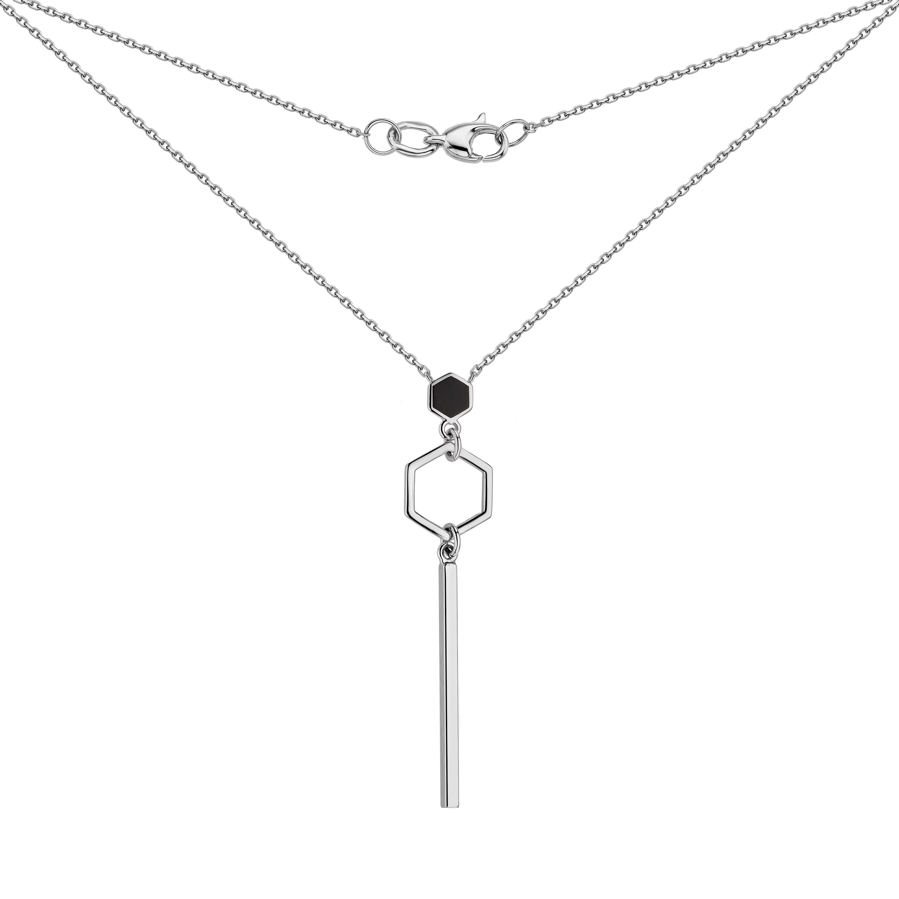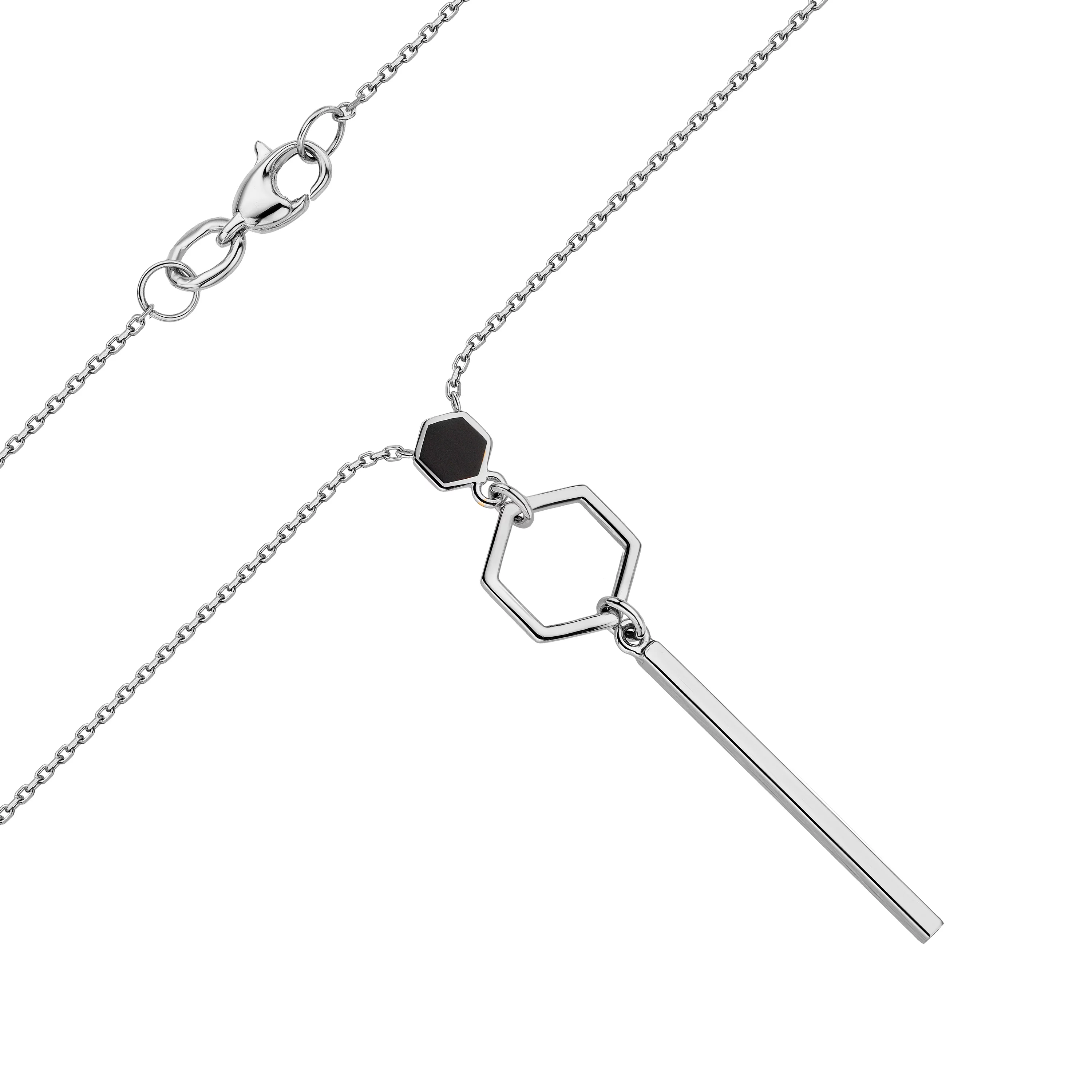 Колье-галстук "Булавка" из белого золота с якорным плетением и алмазной гранью - 1858234