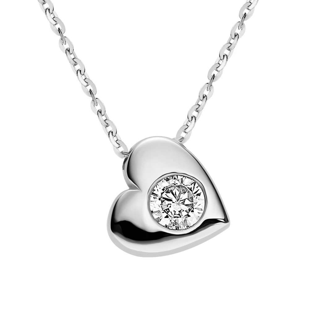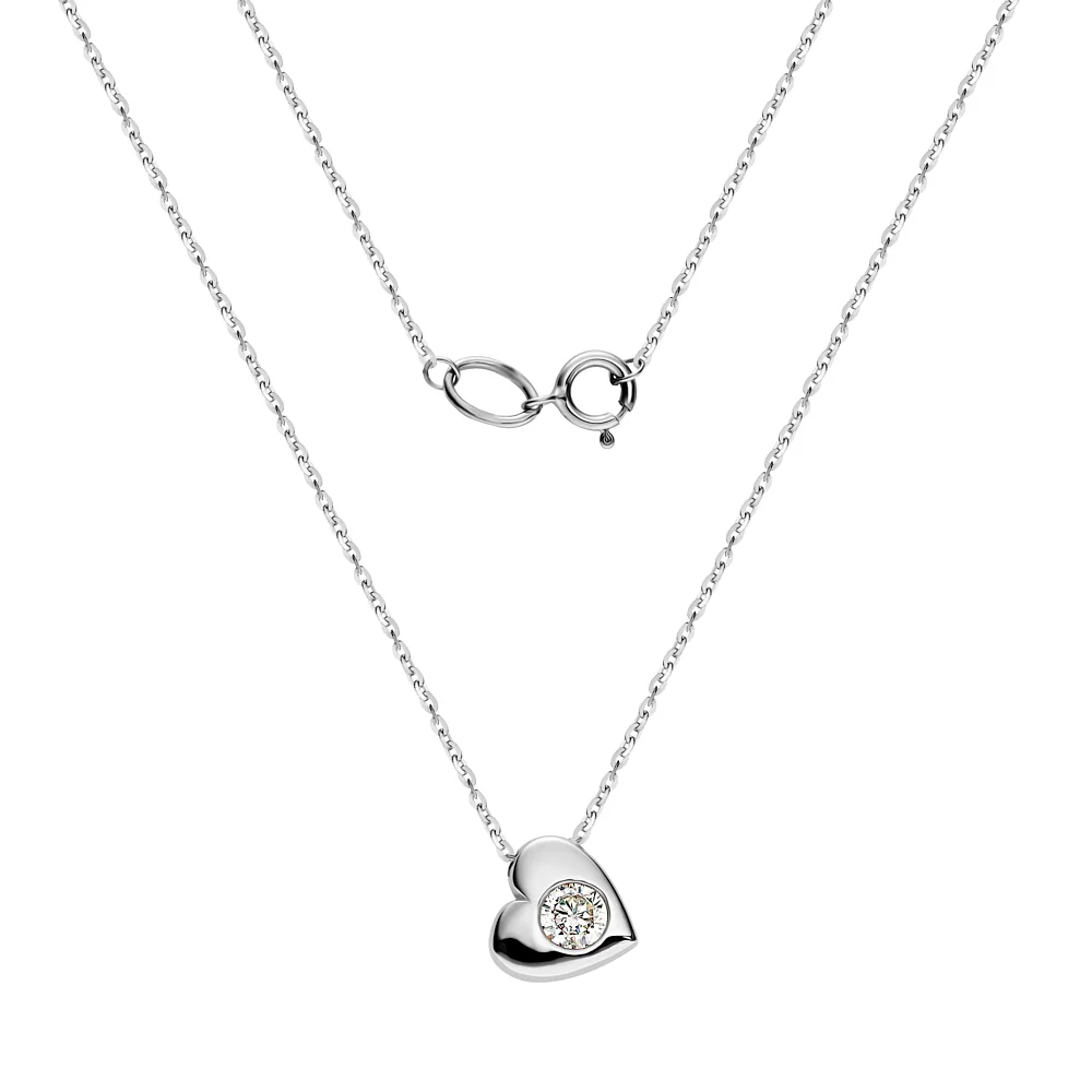 Колье из белого золота с фианитом Сердце Якорное плетение - 1406288