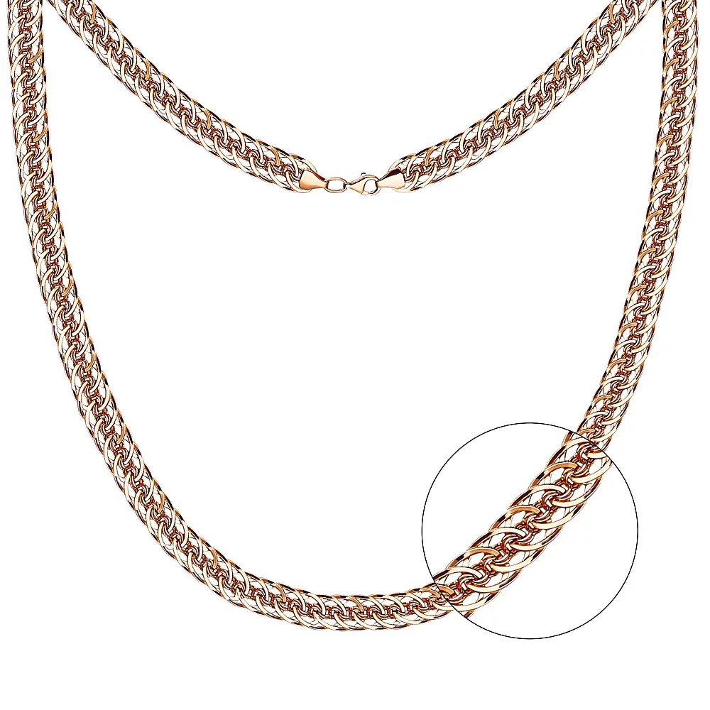 Двойное колье из красного золота с подвесками плетение якорное - 1630746