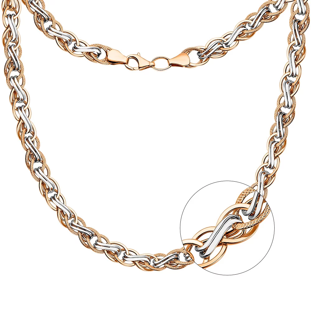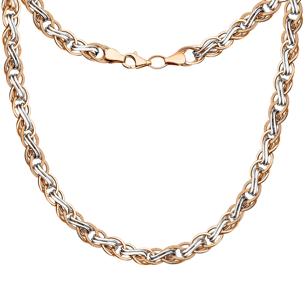 Колье из комбинированного золота фантазийное плетение - 960553