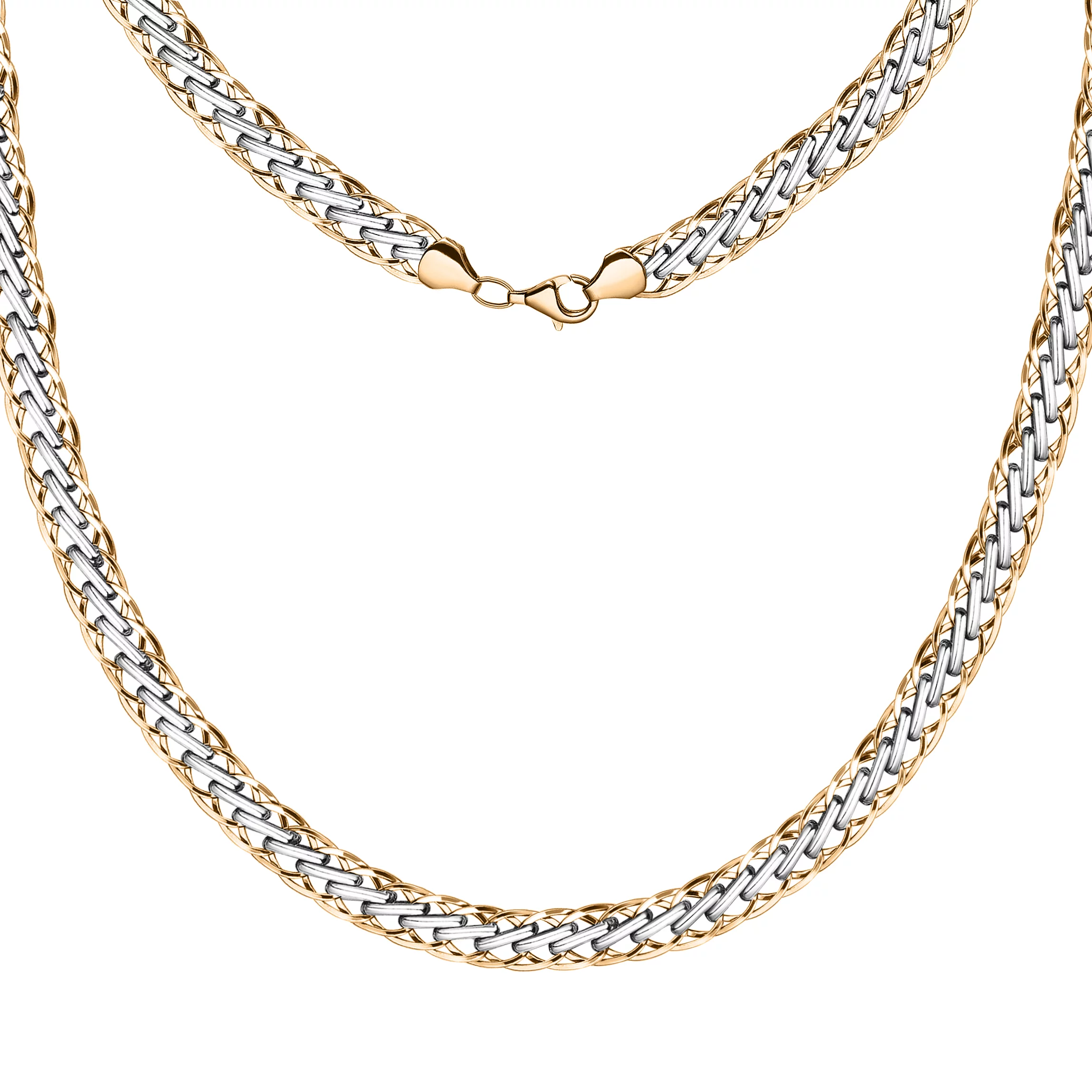 Современное колье из комбинированного золота с плетением фантазия - 1856650