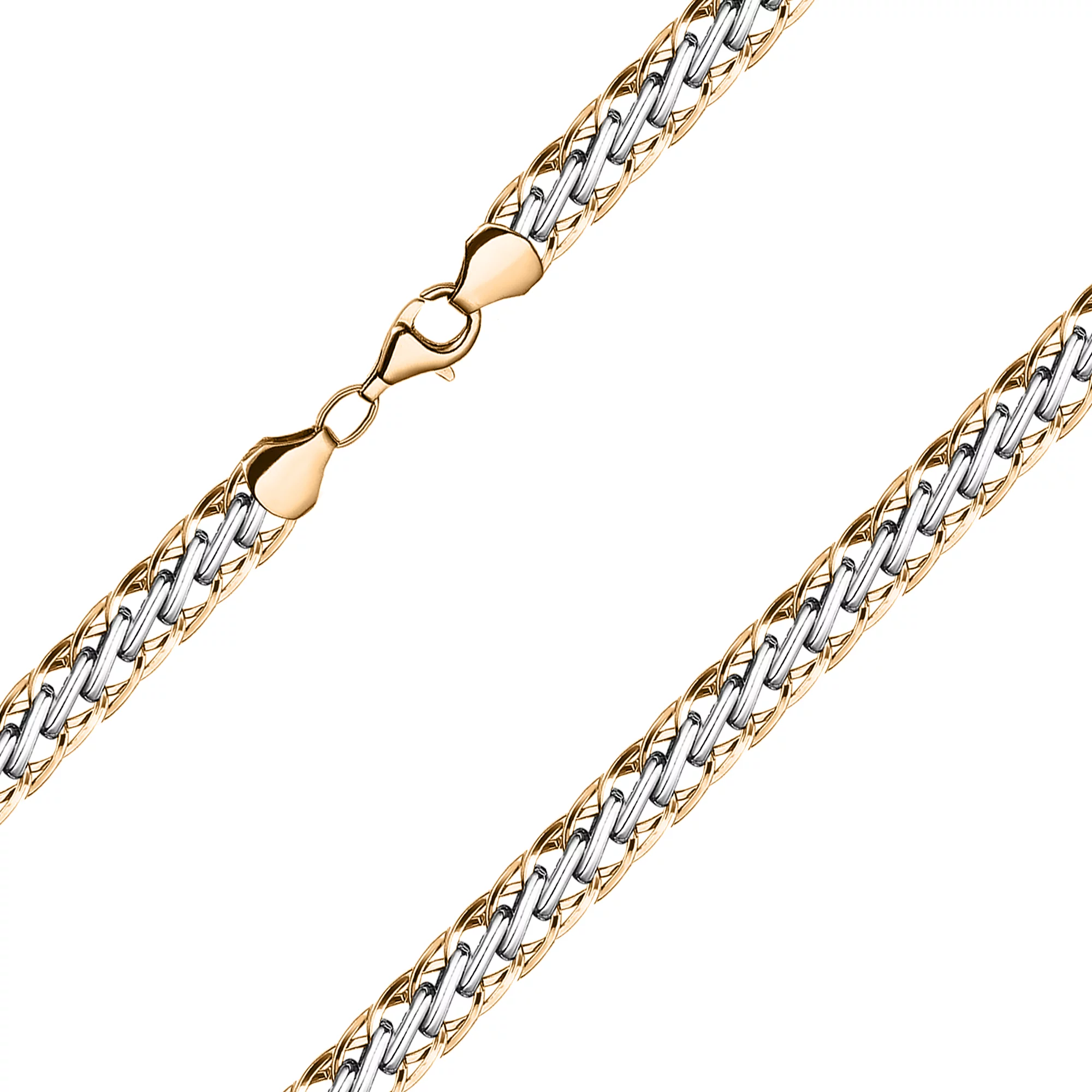 Колье из комбинированного золота с плетением ролекс и алмазной гранью - 960170