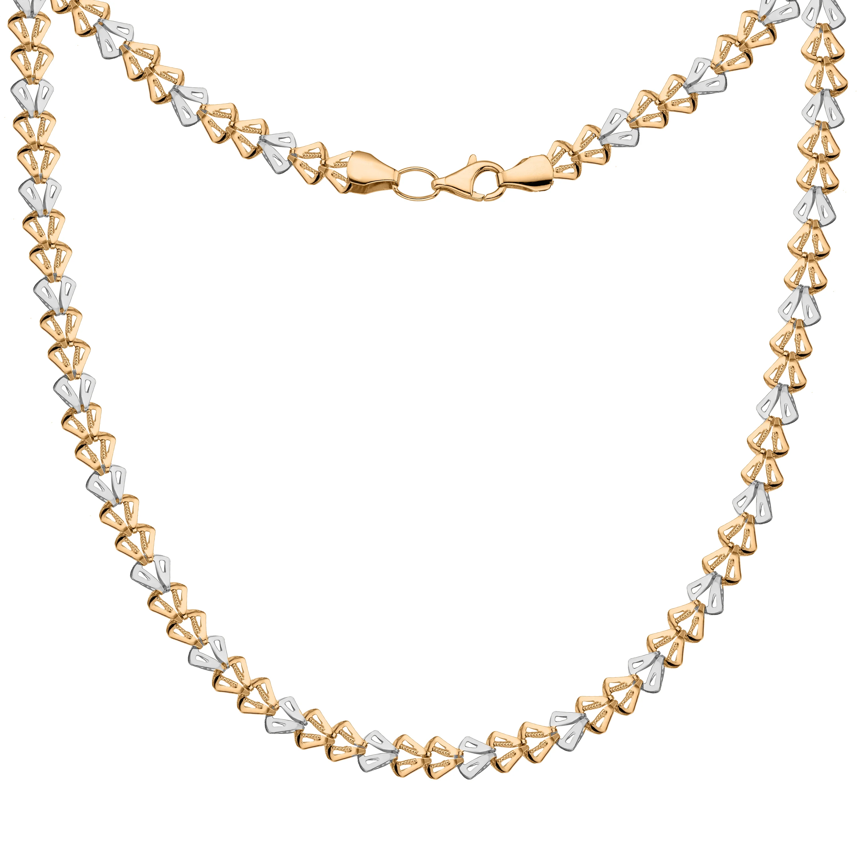 Колье из комбинированного золота с плетением ролекс и алмазной гранью - 960170